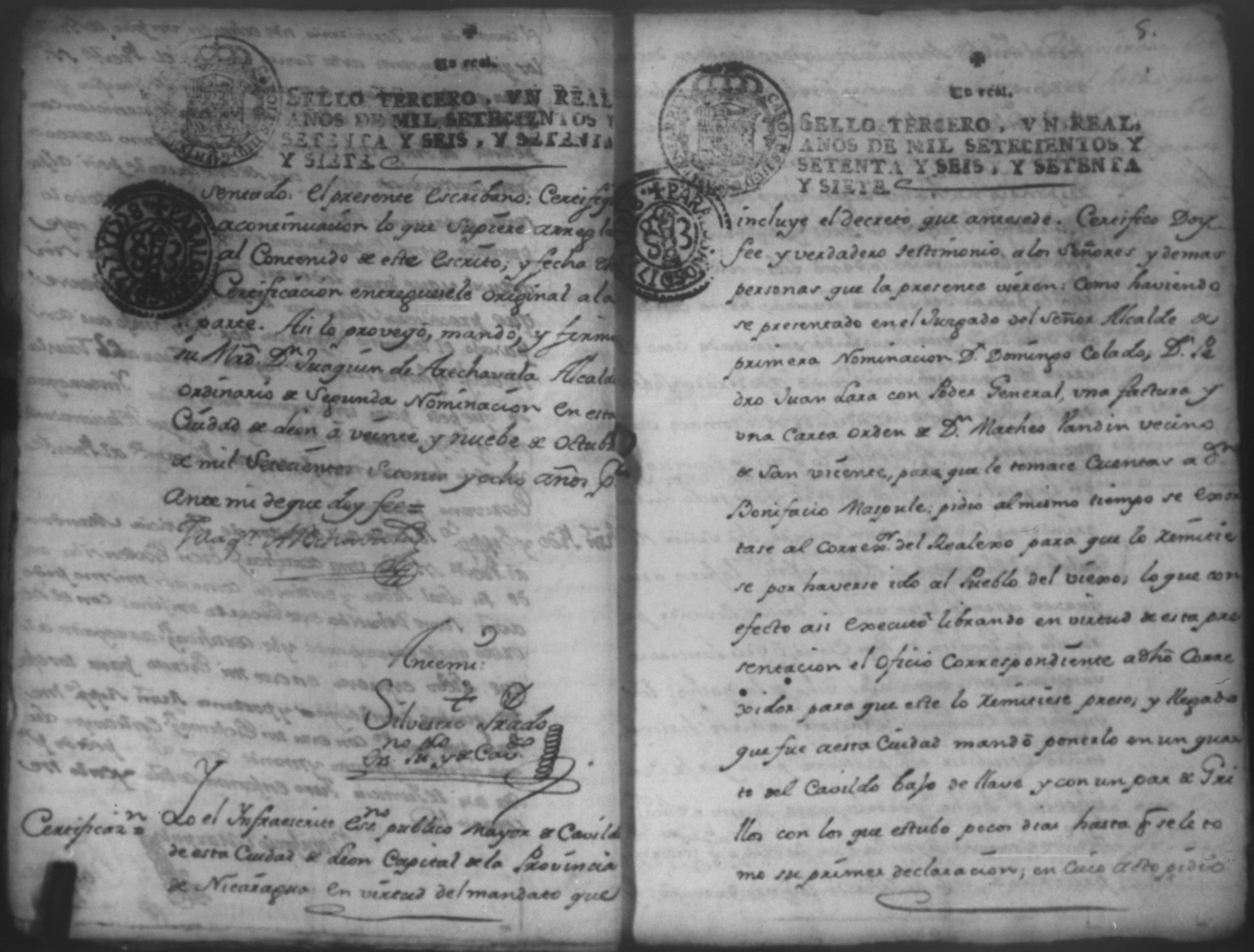 Temática: Audiencia, año de 1778. Ocurso de Don Bonifacio Maspule sobre los agravios que le ha inferido Don Domingo Colado Alcalde Ordinario de la ciudad de Leon por la demanda que le puso Don Pedro Juan de Lara como Apoderado de Don Matheo [Ubandin] para que diese cuenta del caudal que como cajero manejo a dicho [Ubandin]