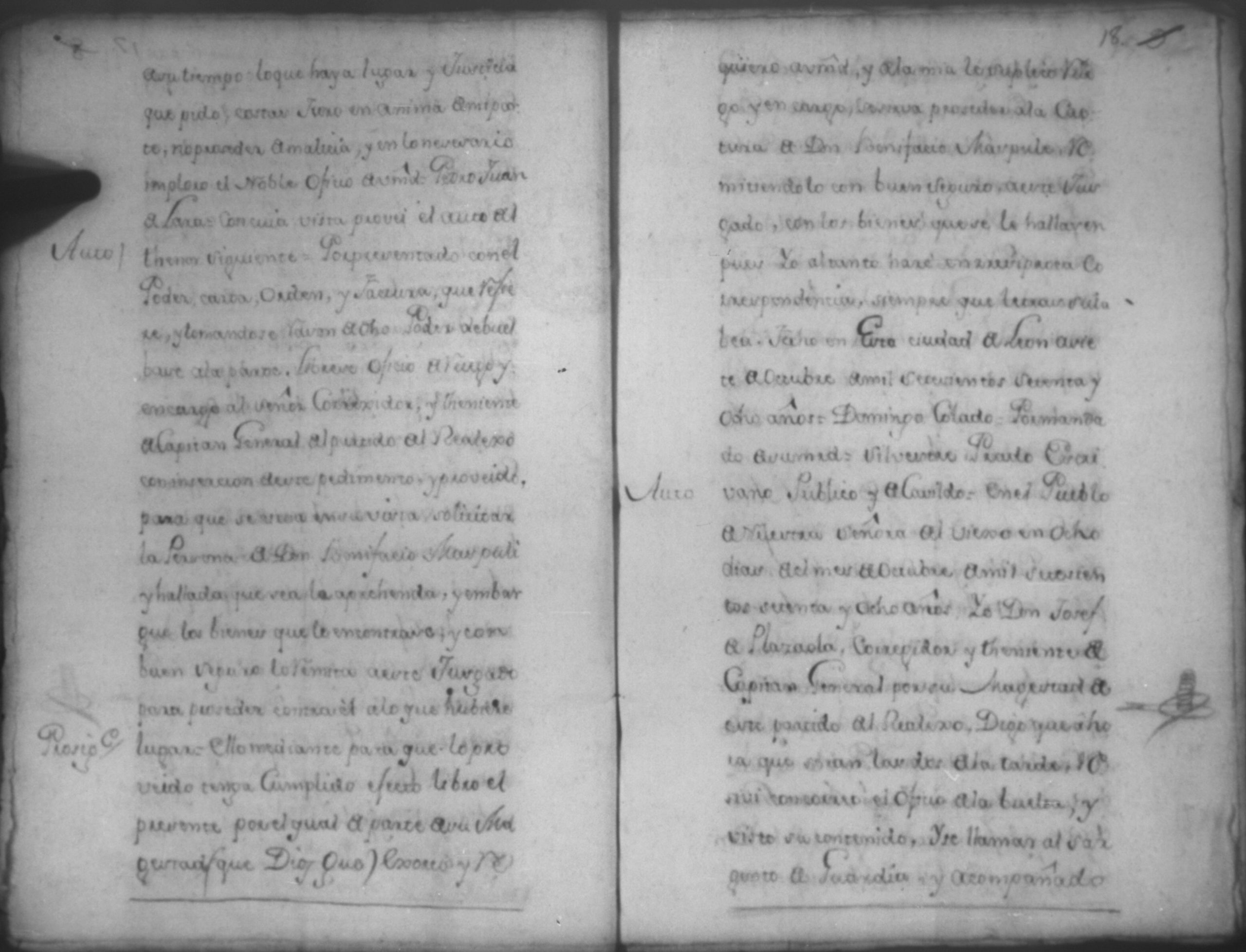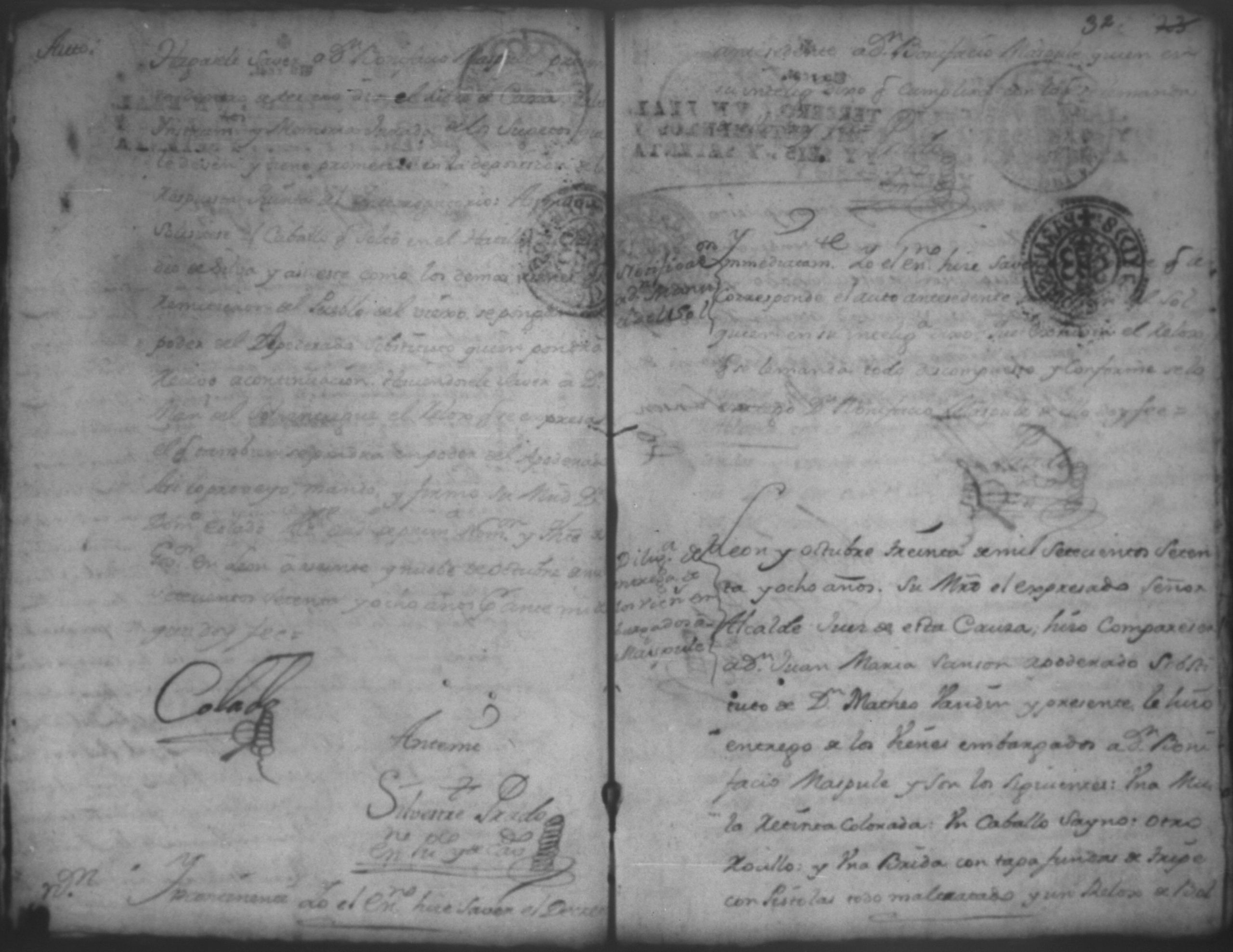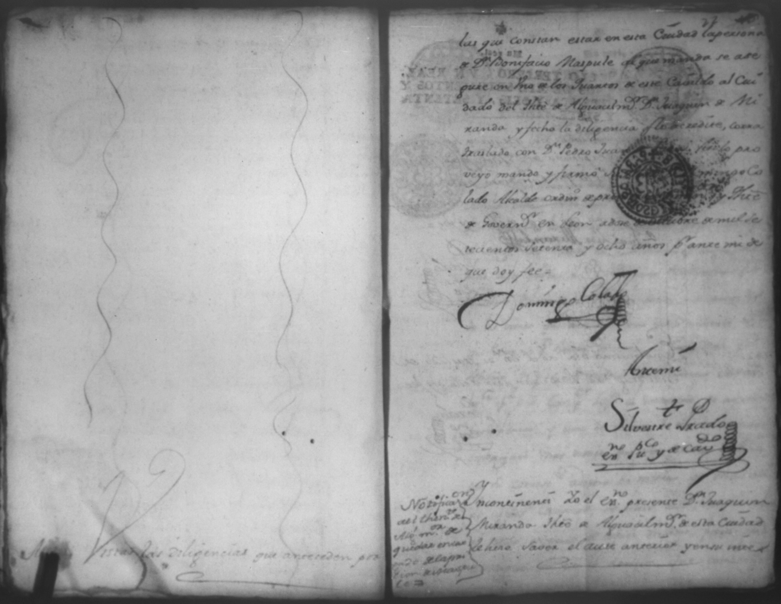 Temática: Audiencia, año de 1778. Ocurso de Don Bonifacio Maspule sobre los agravios que le ha inferido Don Domingo Colado Alcalde Ordinario de la ciudad de Leon por la demanda que le puso Don Pedro Juan de Lara como Apoderado de Don Matheo [Ubandin] para que diese cuenta del caudal que como cajero manejo a dicho [Ubandin]