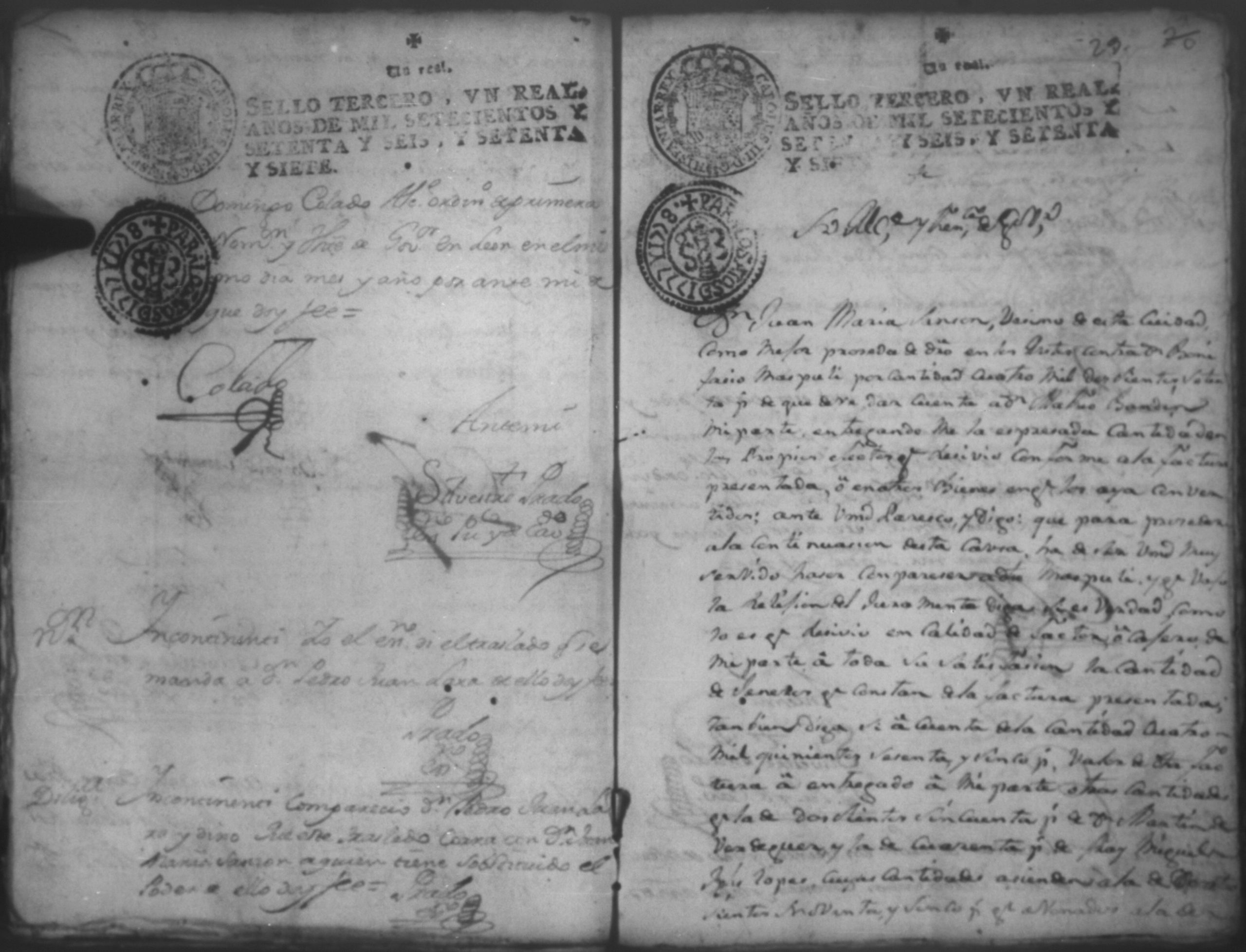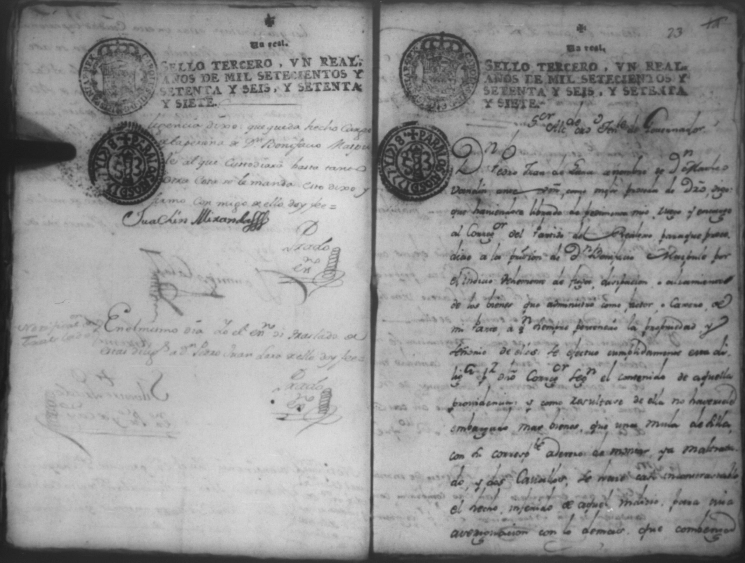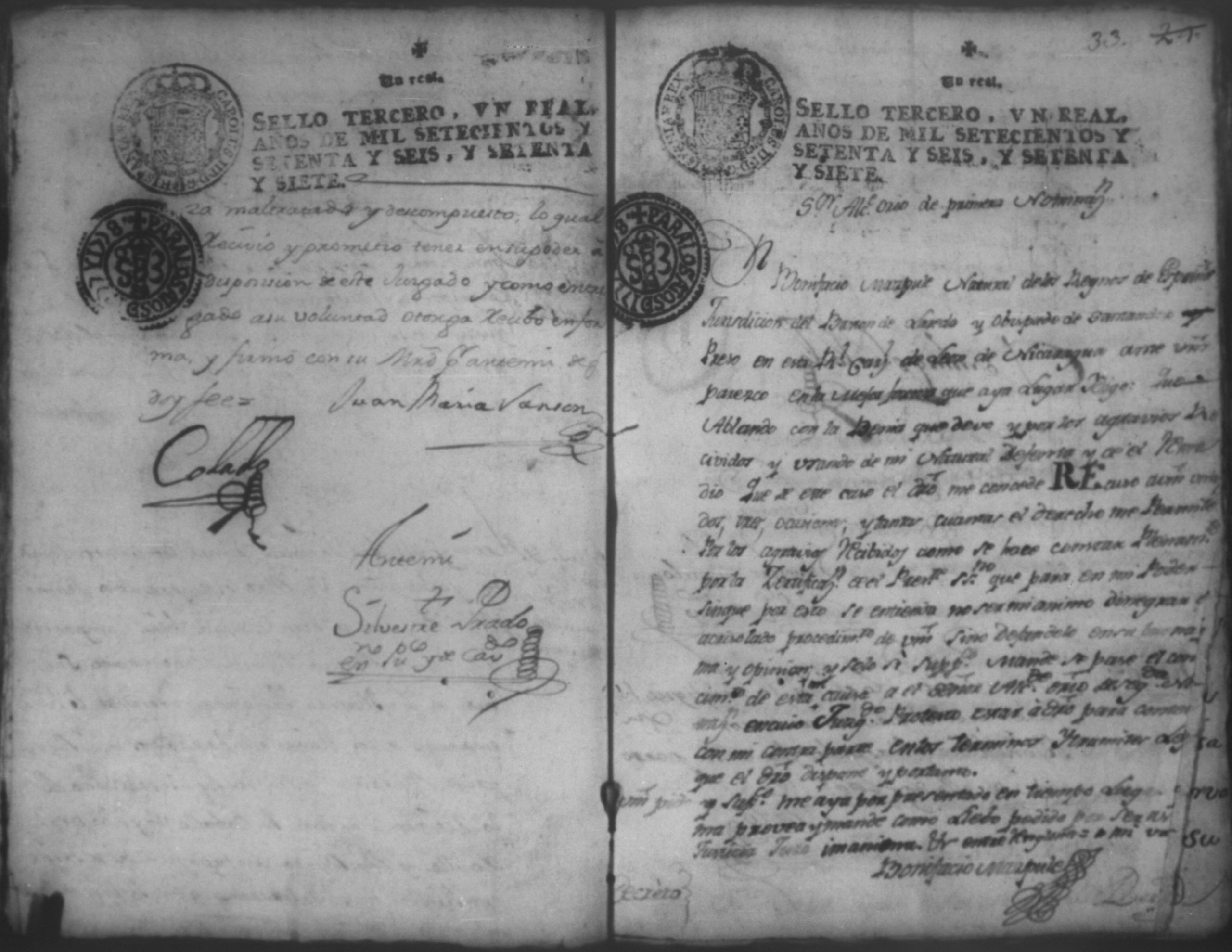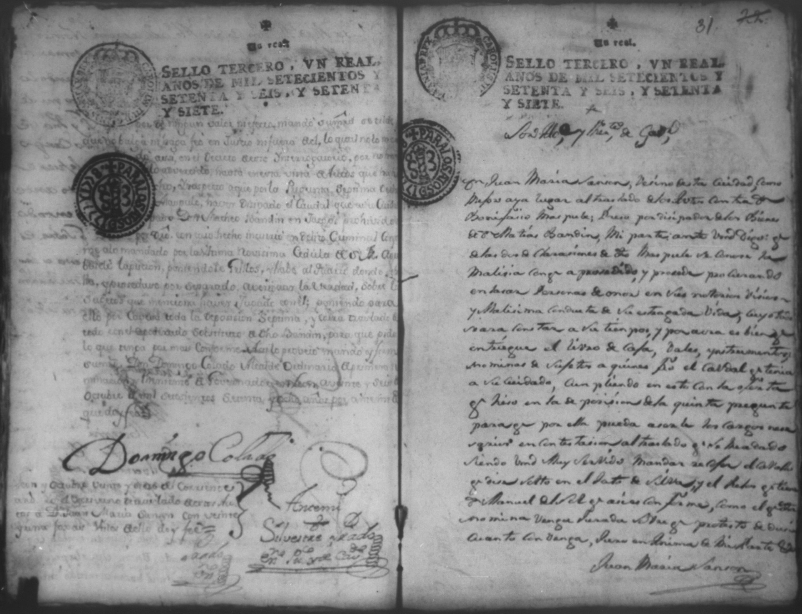 Temática: Audiencia, año de 1778. Ocurso de Don Bonifacio Maspule sobre los agravios que le ha inferido Don Domingo Colado Alcalde Ordinario de la ciudad de Leon por la demanda que le puso Don Pedro Juan de Lara como Apoderado de Don Matheo [Ubandin] para que diese cuenta del caudal que como cajero manejo a dicho [Ubandin]