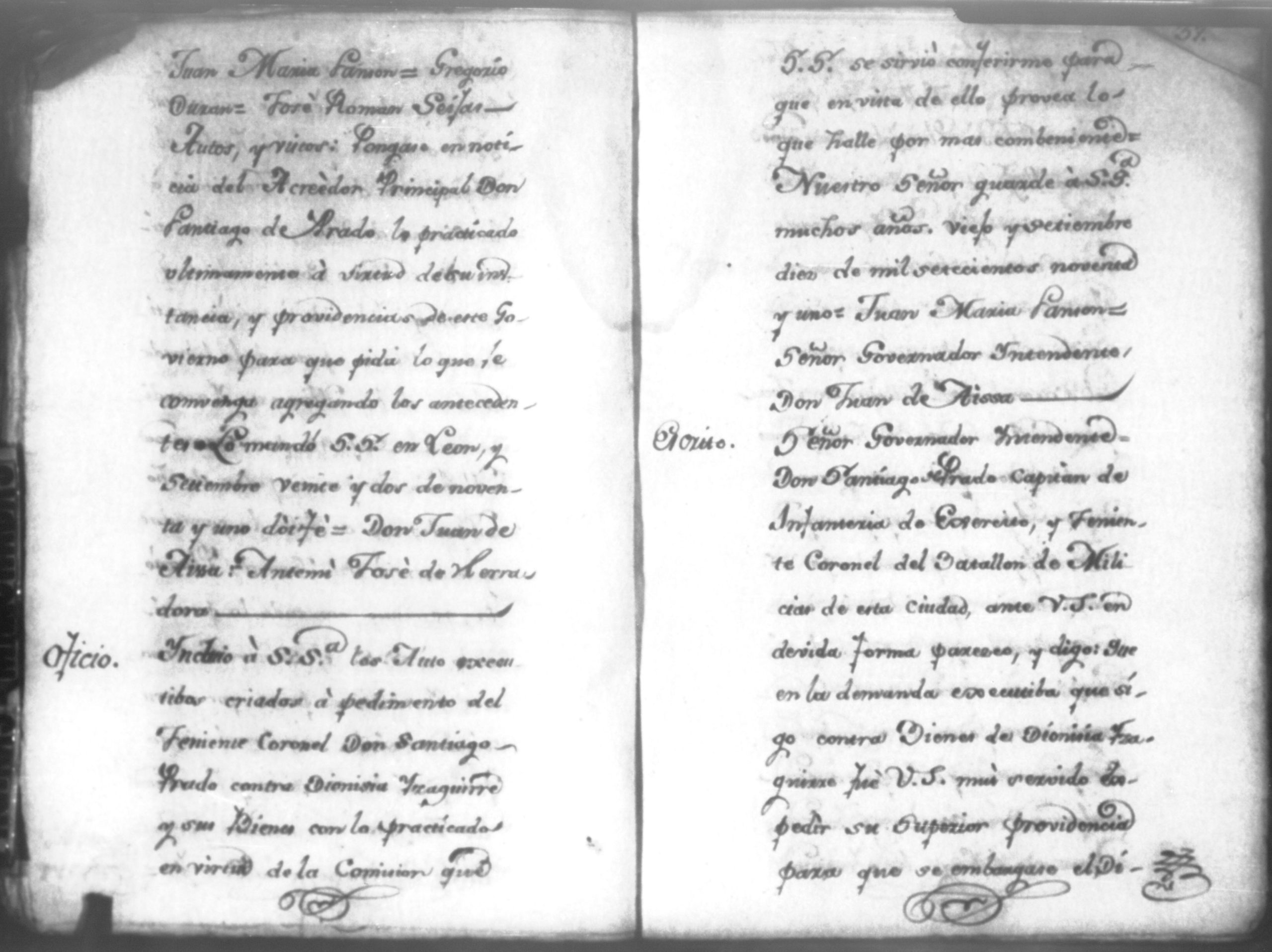 Ocurso de Geronima y Augustina Alarcón solicitando se suspenda la execucion que libro el Yntendente, Leon 1792 (040)