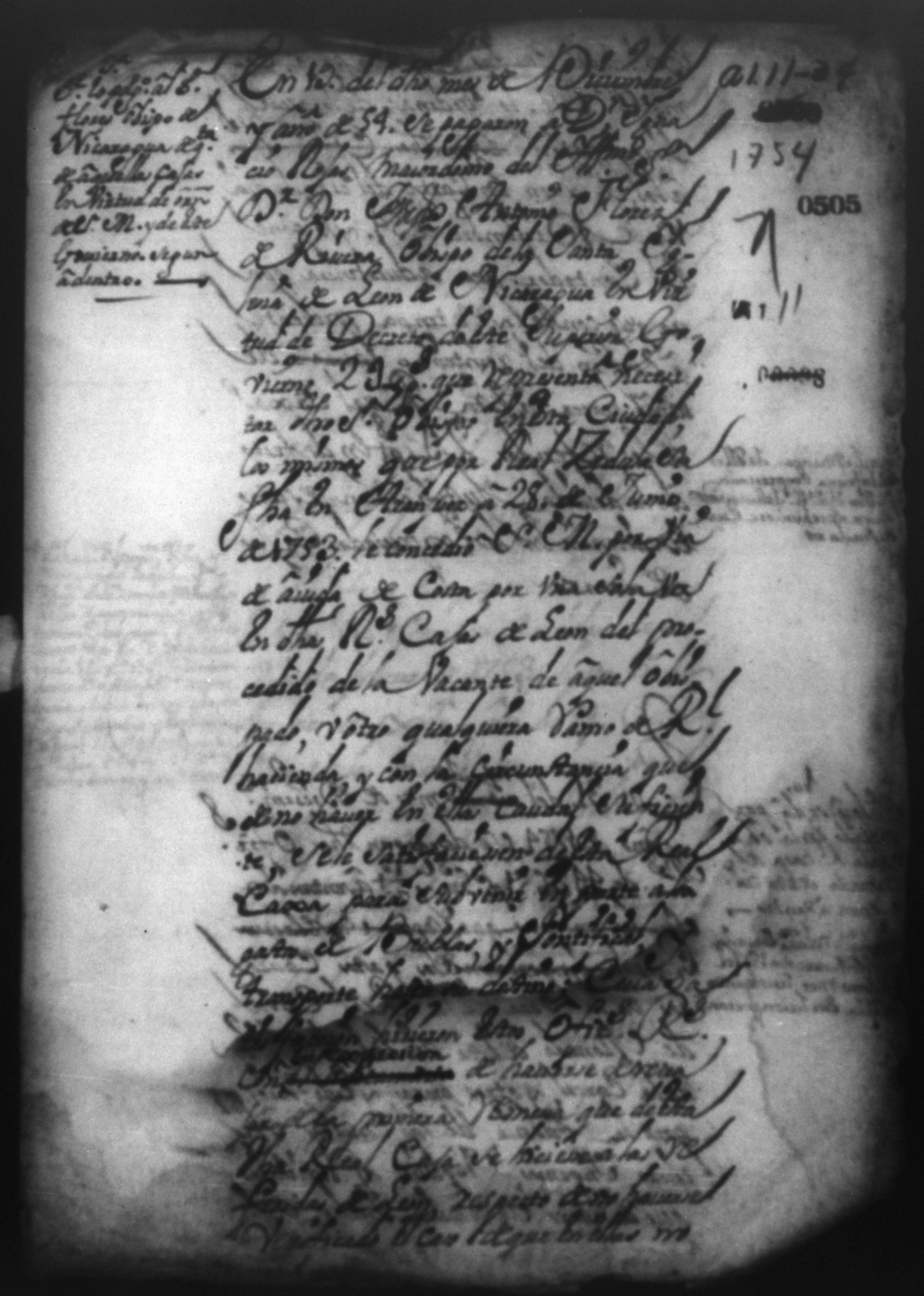 Temática: En 19 del dicho mes de diciembre y año de 54 se pagaron a don Ignacio Rojas, mayordomo del Ilustrísimo señor Dr. don Joseph Antonio Flores de Rivera, obispo de la Santa Iglesia de León de Nicaragua de virtud de decreto de este superior gobierno 29 (sic) pesos que representa necesitar dicho señor obispo en esta ciudad