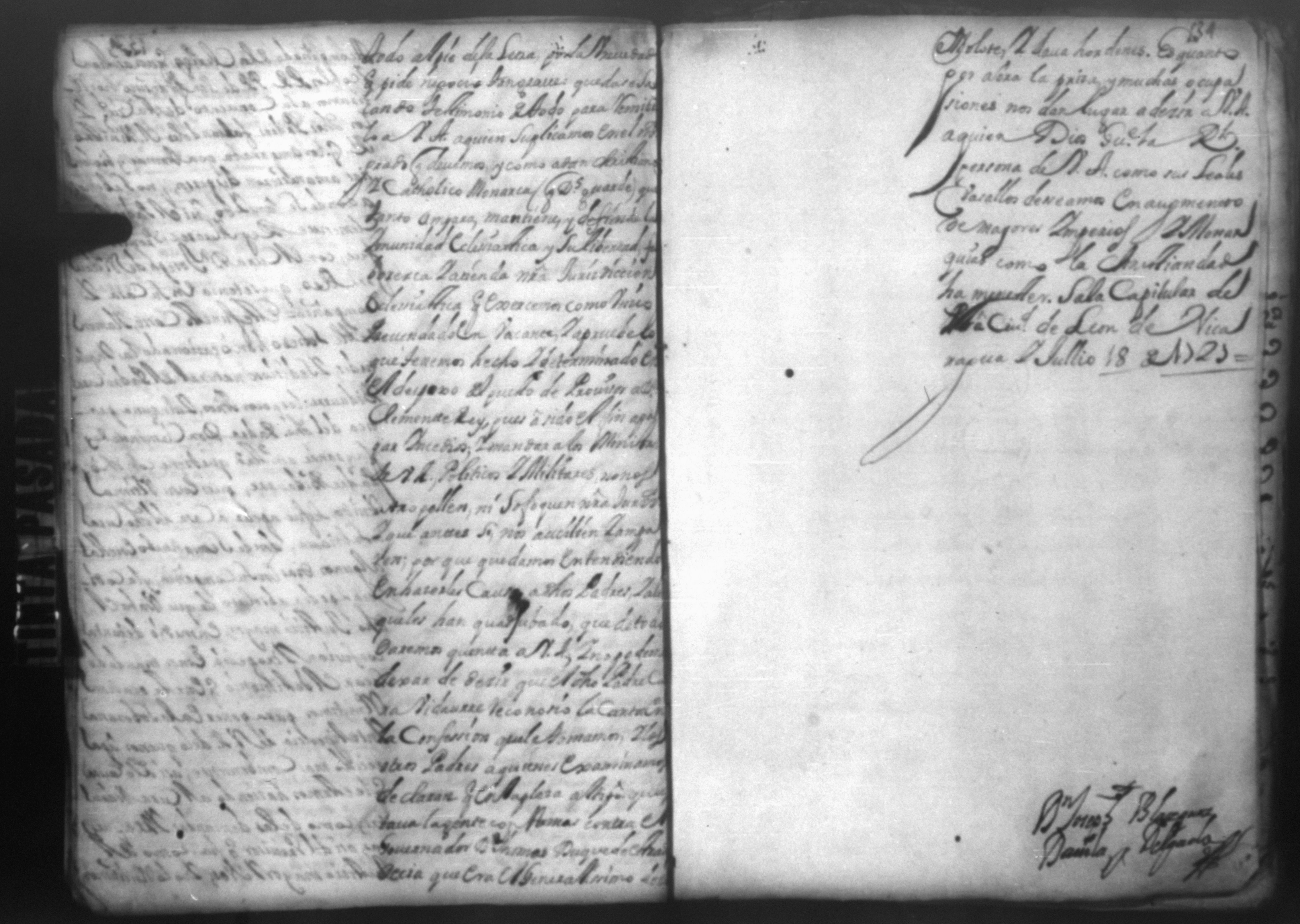 Temática: Asuntos eclesiásticos. En esta ocasion haremos a [nuestro] Presidente, Gobernador y Capitan General la consulta siguiente lo que tambien [ponemos en mano] de V. A. para que por su parte […] providencias tan acertadas como siempre acostumbra. Hallandose en la ciudad de León, Metropoli de...