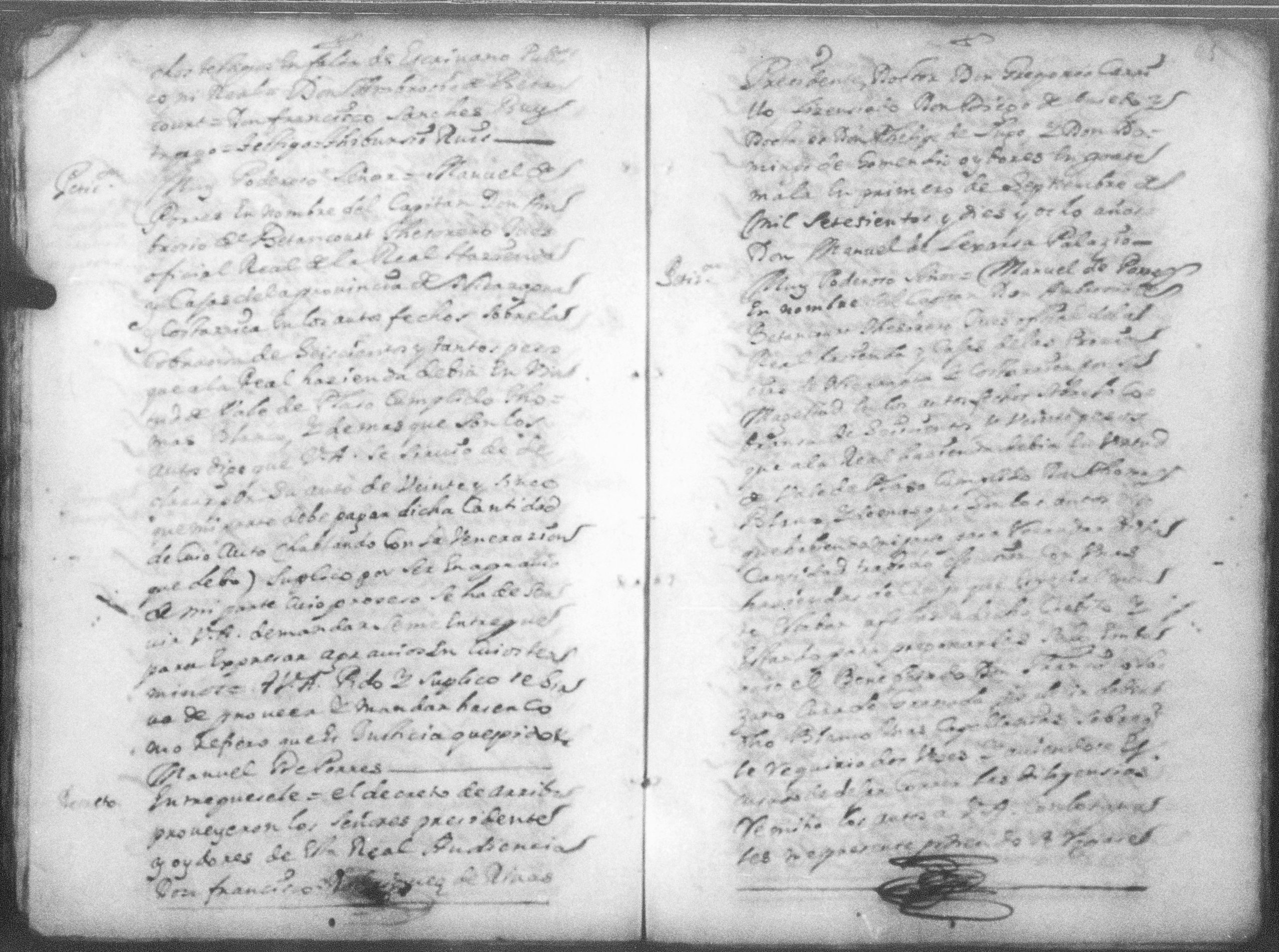 Temática: Año de 1719. Expediente que contiene asunto contra Tomas Blanco por 620 pesos que debe. …El Capitan [Pedro de Vargas] vecino de la ciudad de Granada es deudor a la Real Haciendo y Cajas del [campo] de mi parte de cantidad de seiscientos y veinte pesos y siete reales.