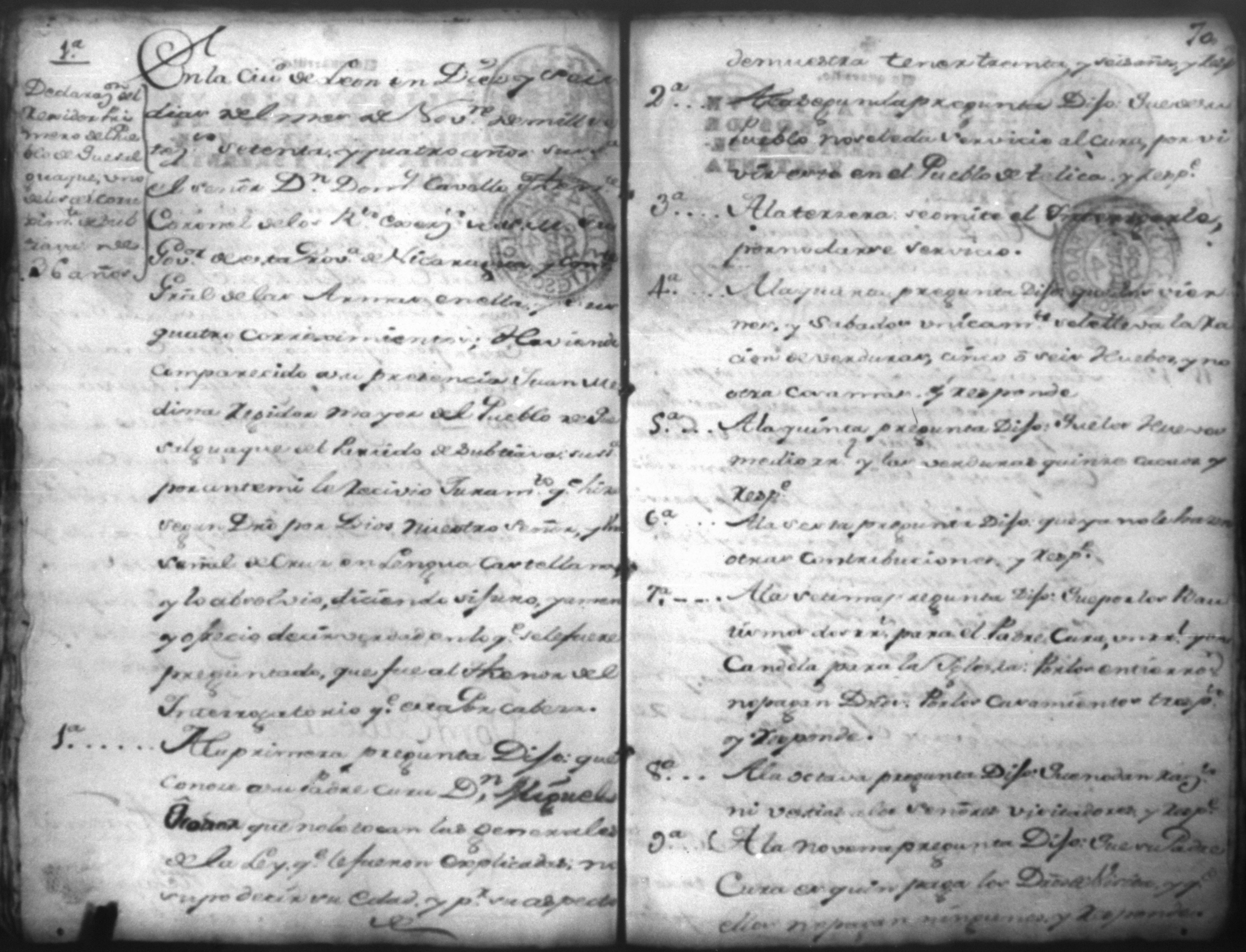 Pesquisa sobre servicios y contribuciones de los indios a los curas, Nicaragua 1774