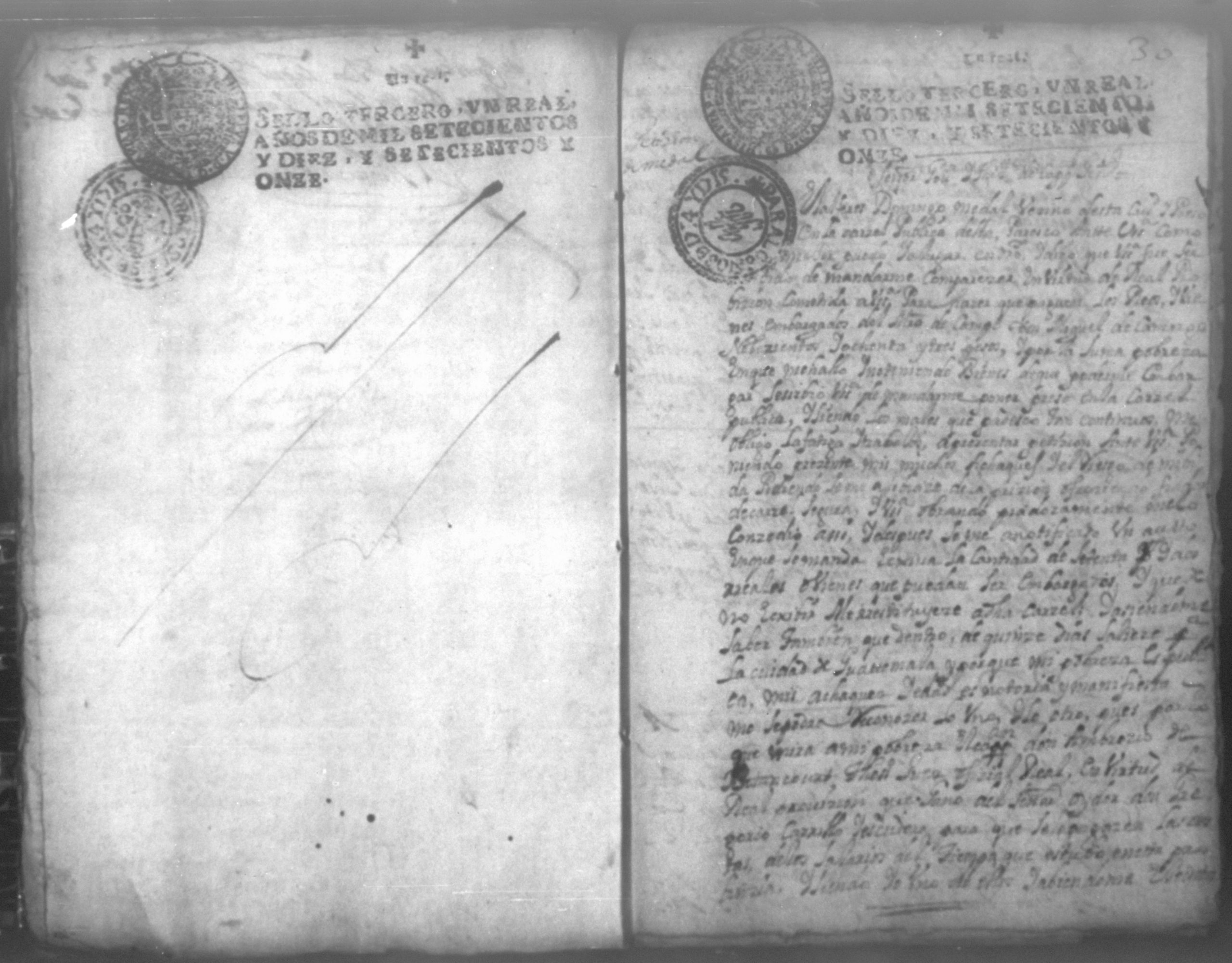 Temática: Granada año de 1715. Real Provisión para cobrar 283 pesos por [duplicado] de los bienes del Obispado Don Miguel de Camargo