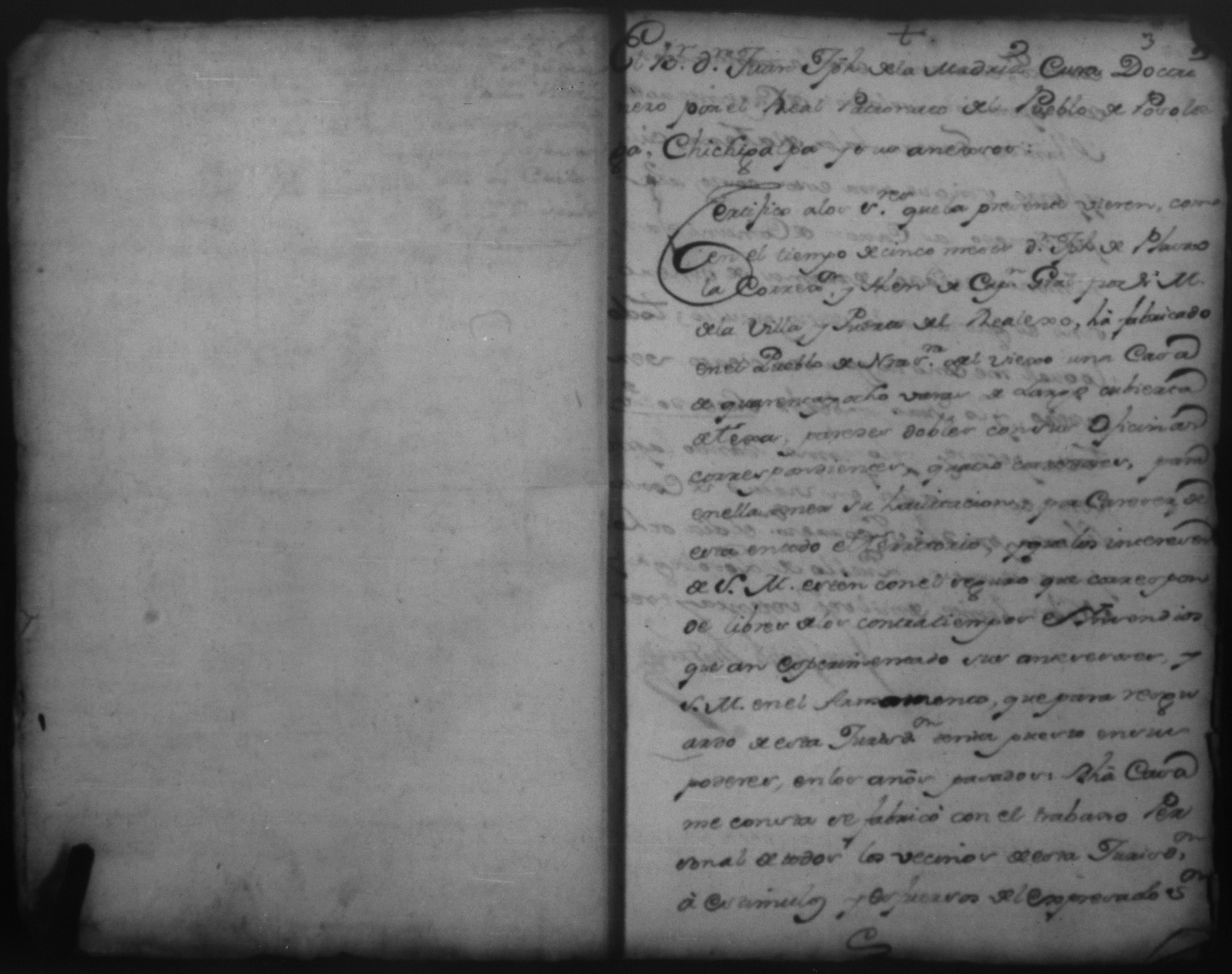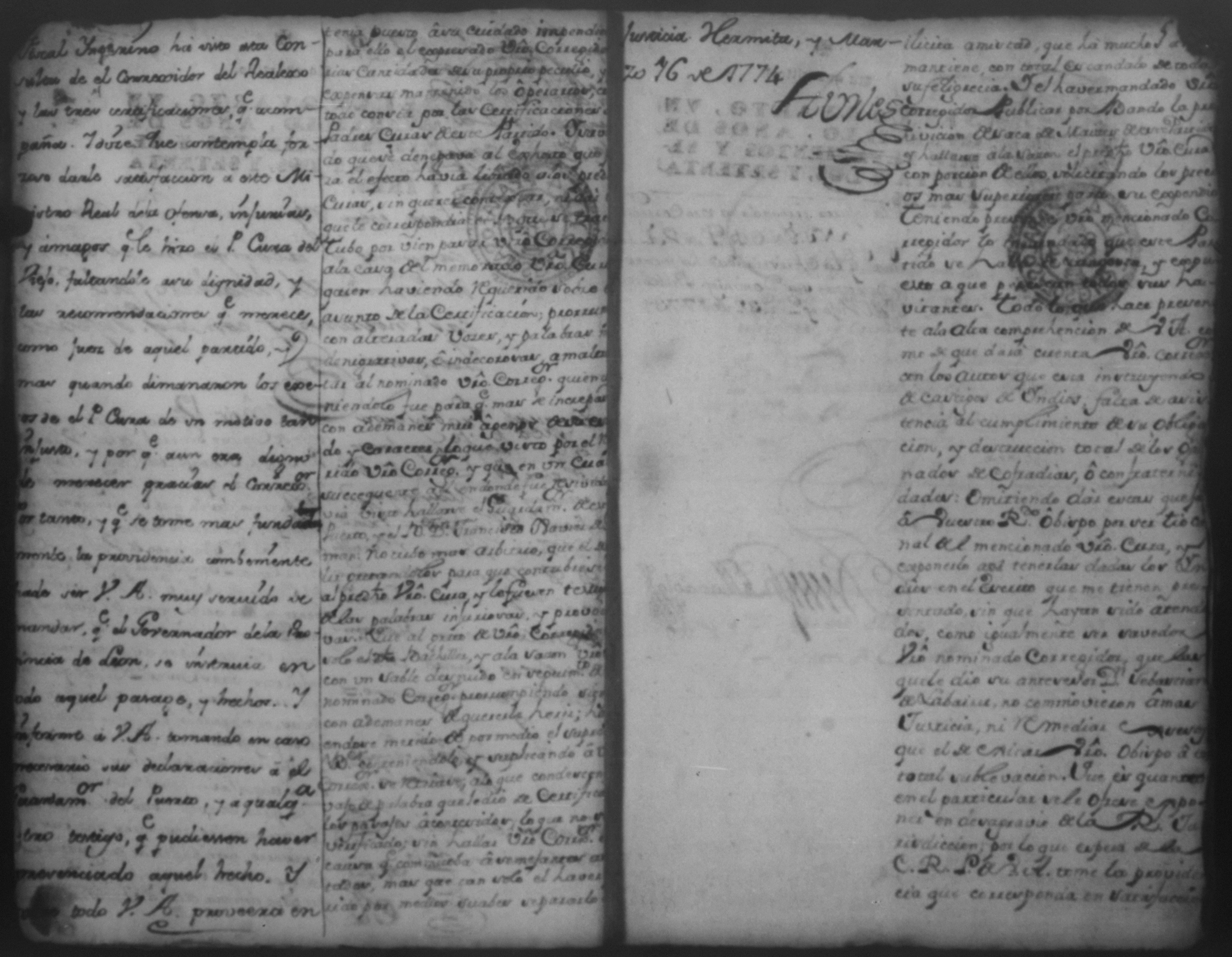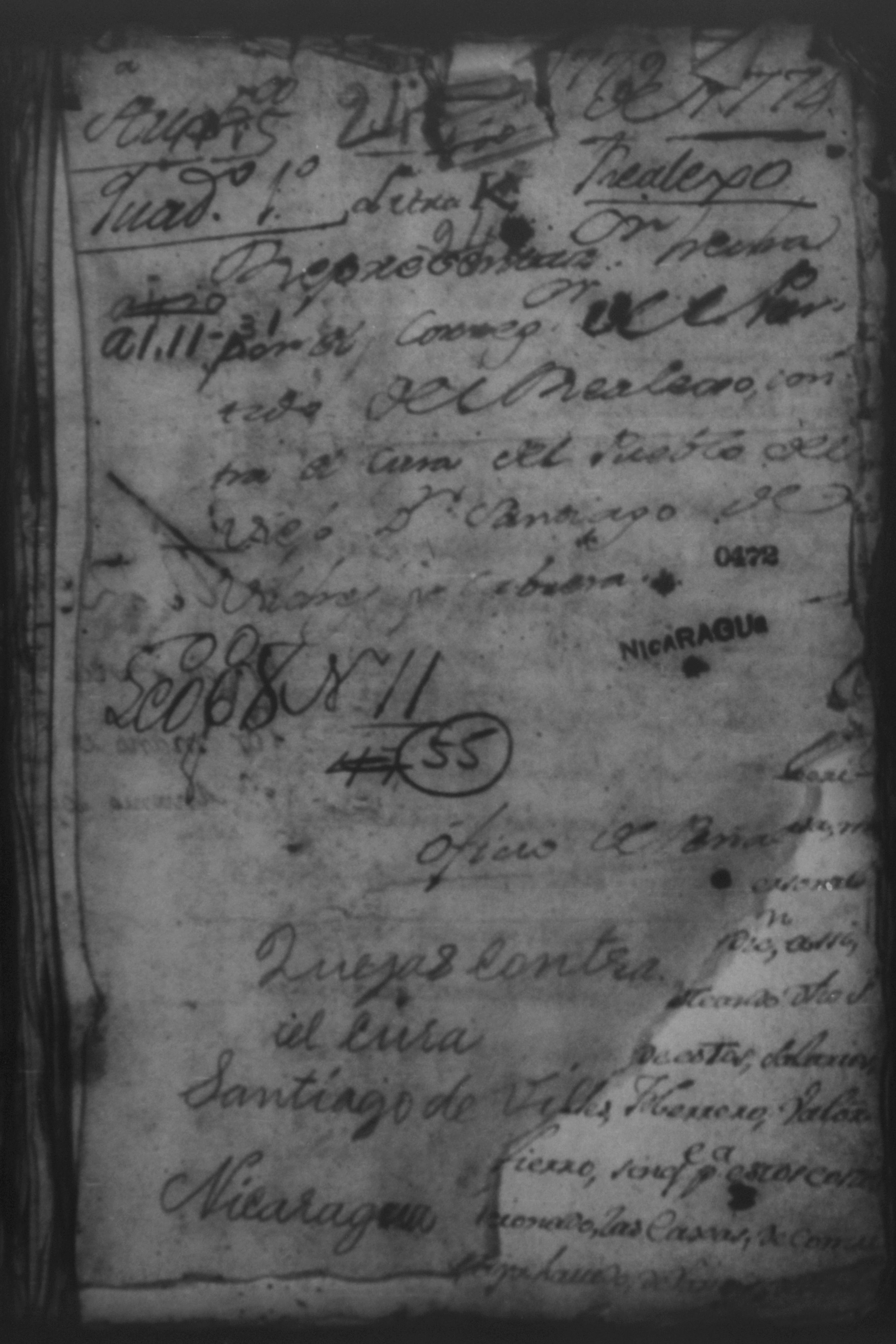 Temática: Representación hecha por el Corregidor del Partido del realexo contra el Cura del Pueblo del Viejo Don Santiago de Vilchez y Cabrera. Algunas imágenes un poco oscuras y otras bastante borrosas.
