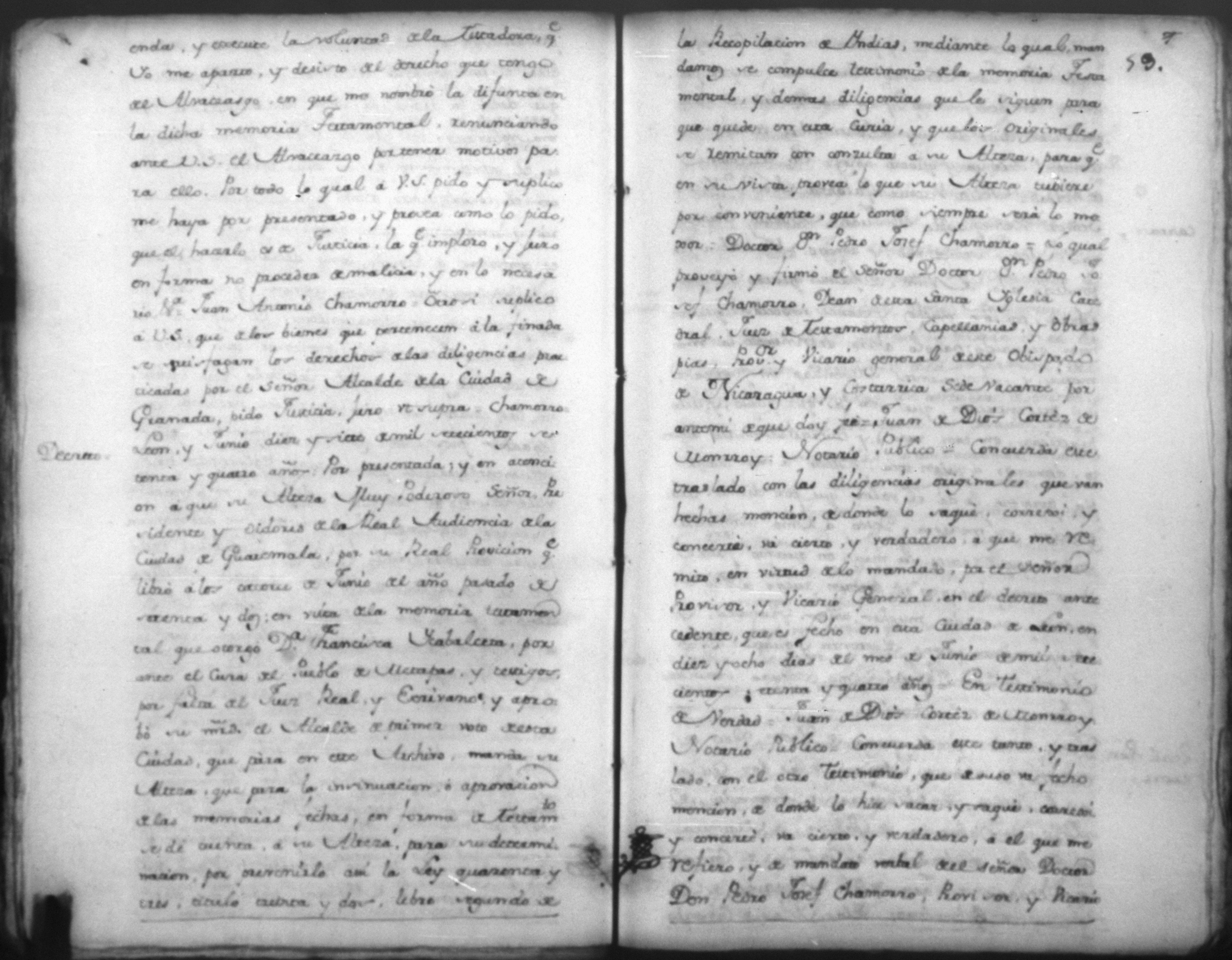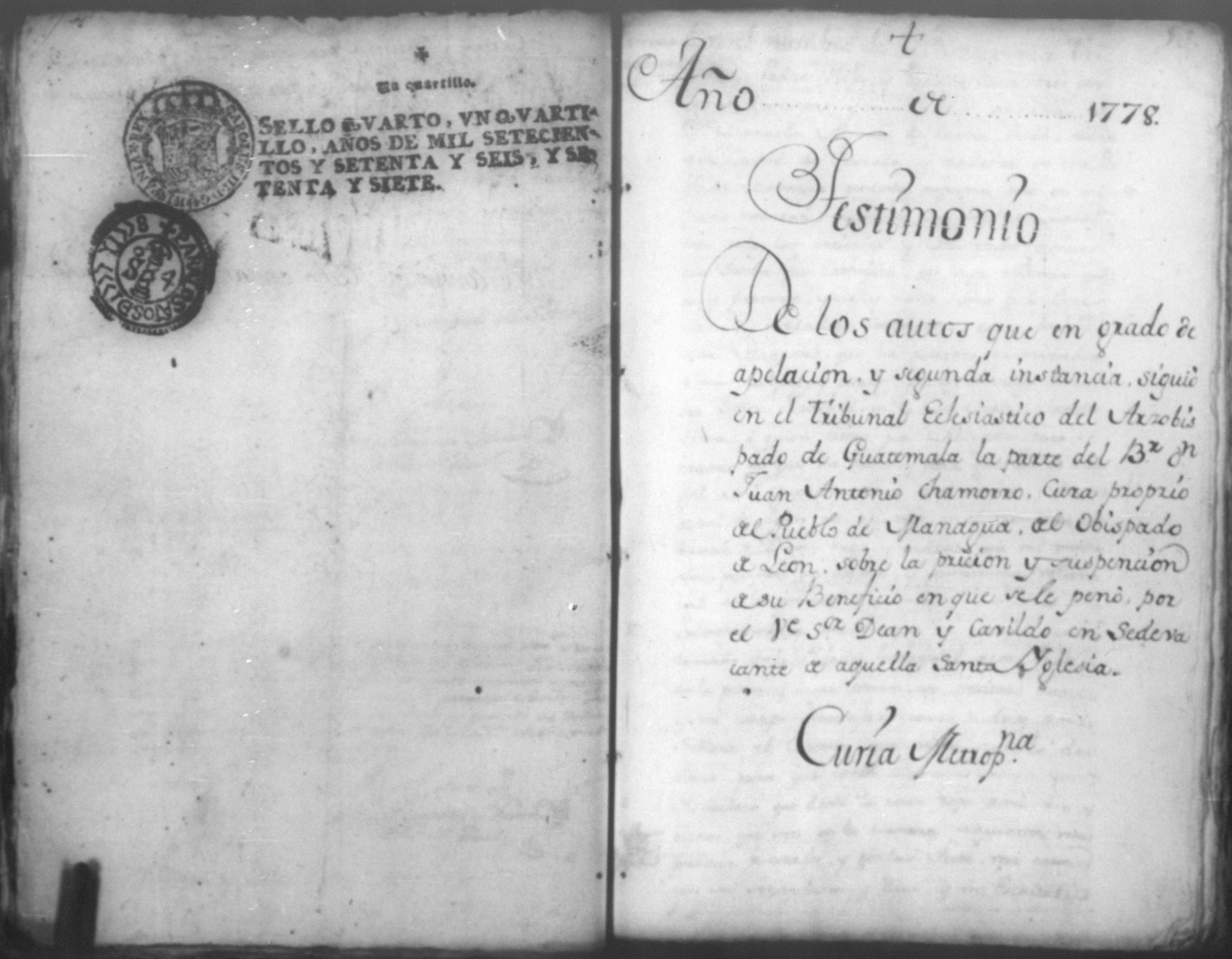 Real Provición de ruego y encargo librada al Cavildo por cede vacante, Nicaragua 1775