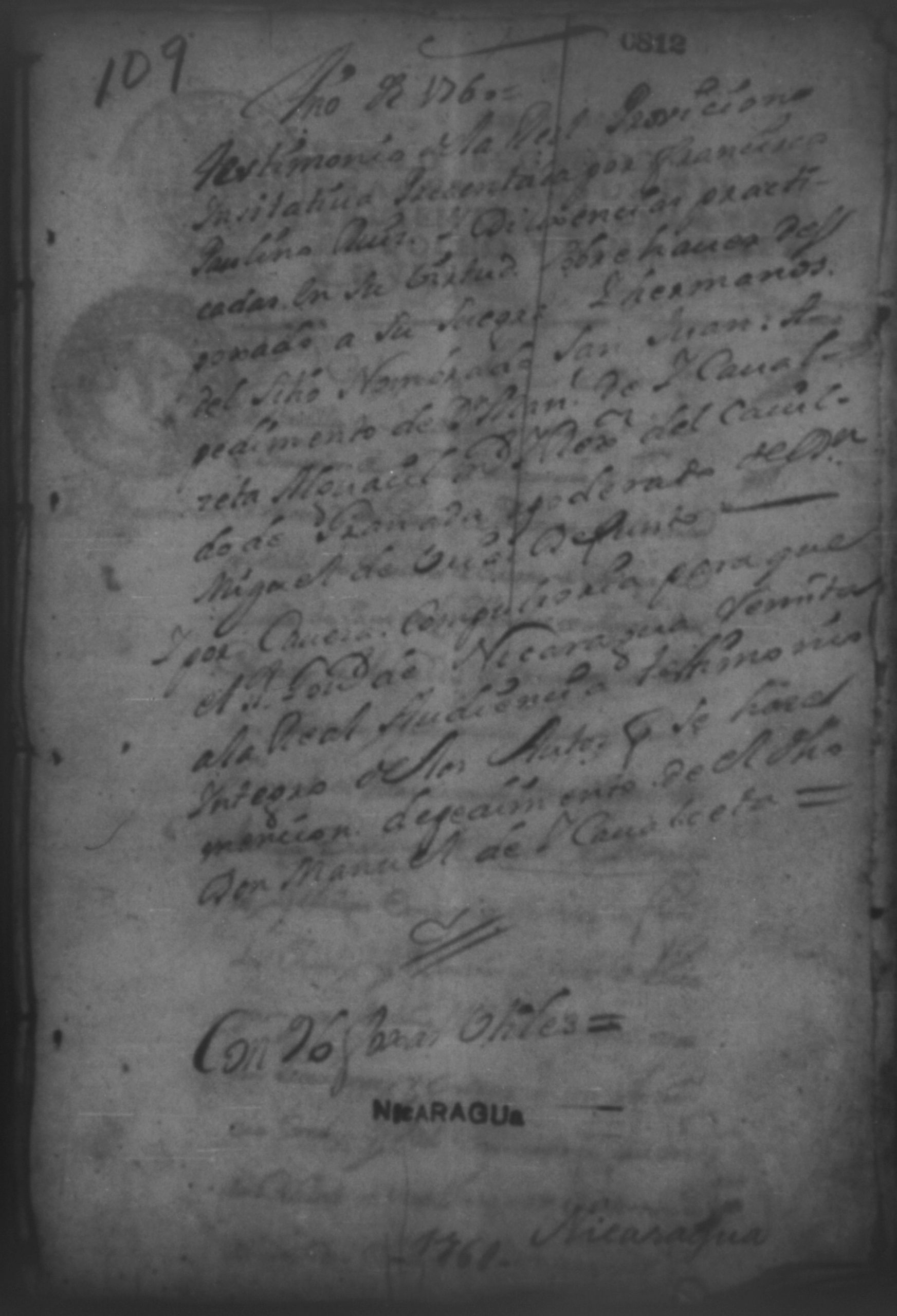 Temática: Año de 1760. Testimonio de la Real Provicion ynsitativa presentada por Francisco Paulino Ruíz y diligencias practicadas en su virtud. Sobre haber despojado a su suegra y hermanos del sitio nombrado San Juan a pedimento de don Manuel de Ycavalzeta, Alguacil de Cavildo de Granada
