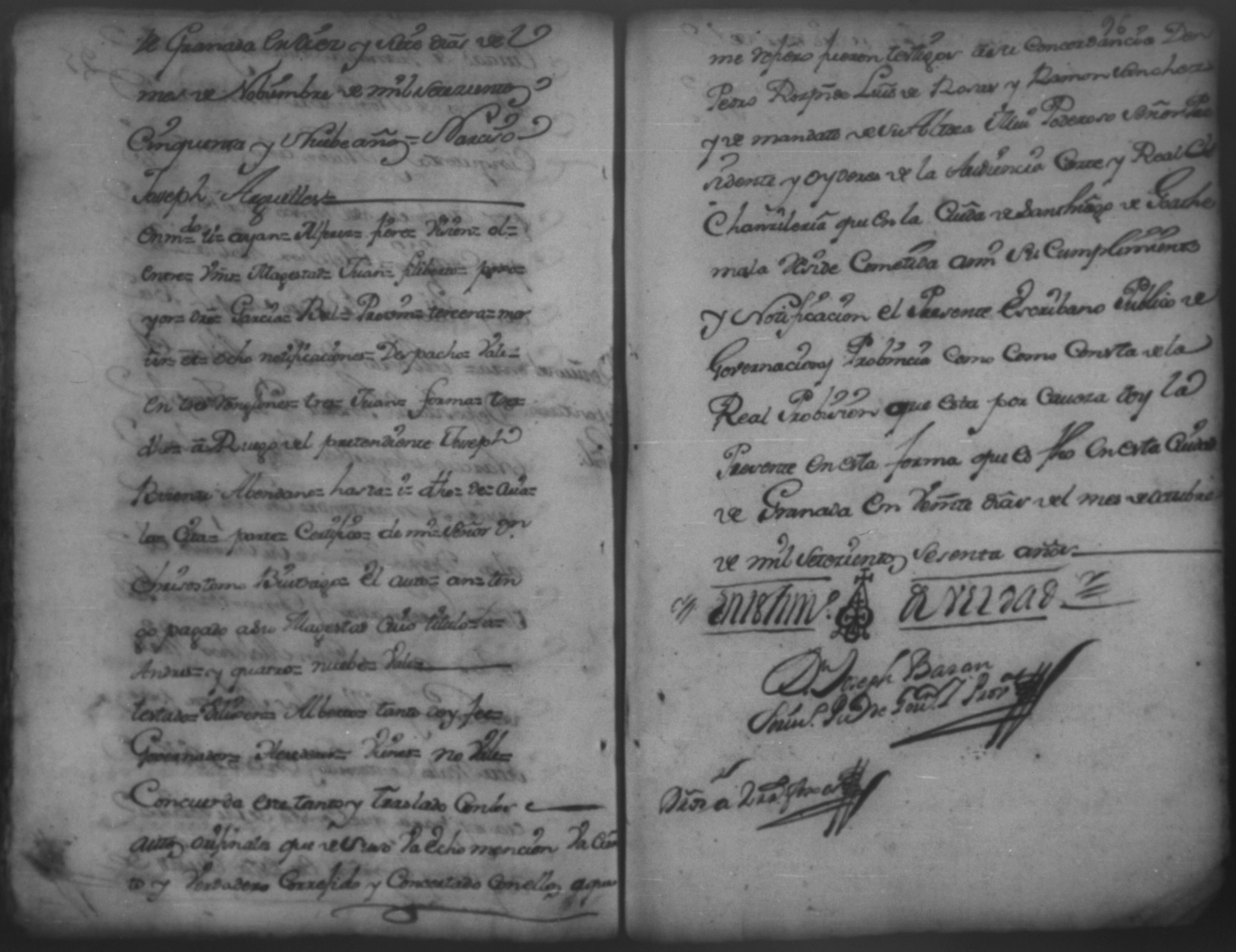 Temática: Año de 1760. Testimonio de la Real Provicion ynsitativa presentada por Francisco Paulino Ruíz y diligencias practicadas en su virtud. Sobre haber despojado a su suegra y hermanos del sitio nombrado San Juan a pedimento de don Manuel de Ycavalzeta, Alguacil de Cavildo de Granada