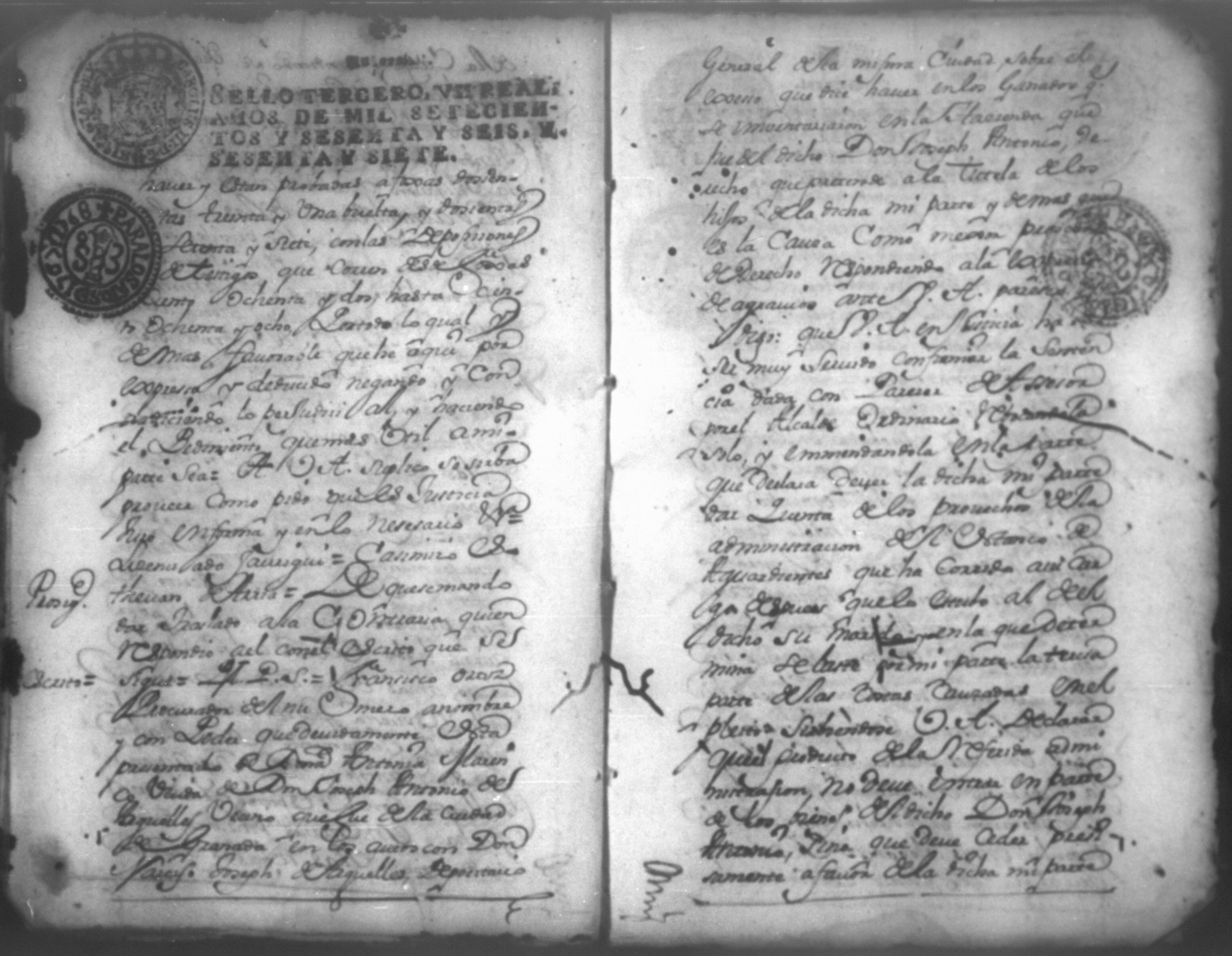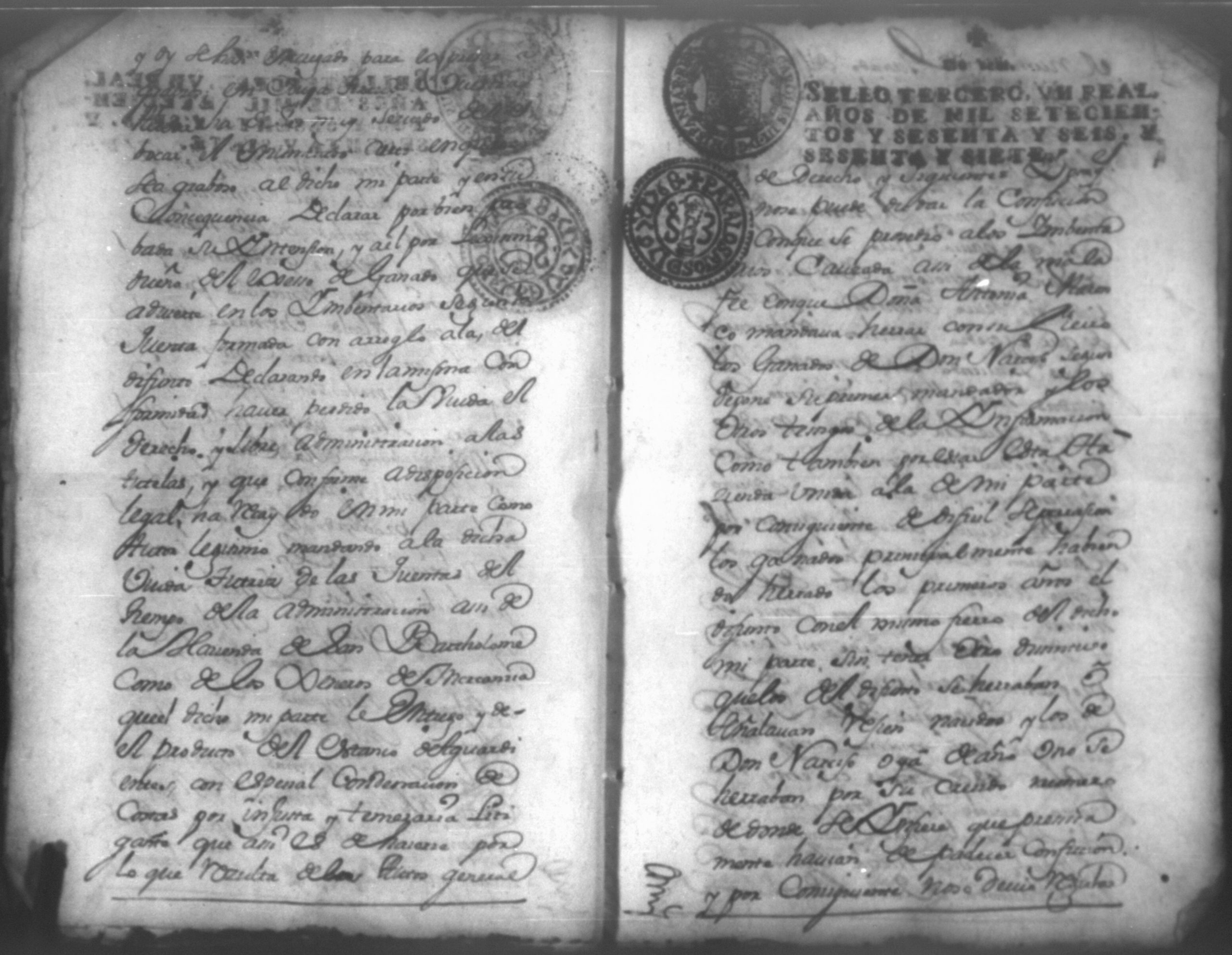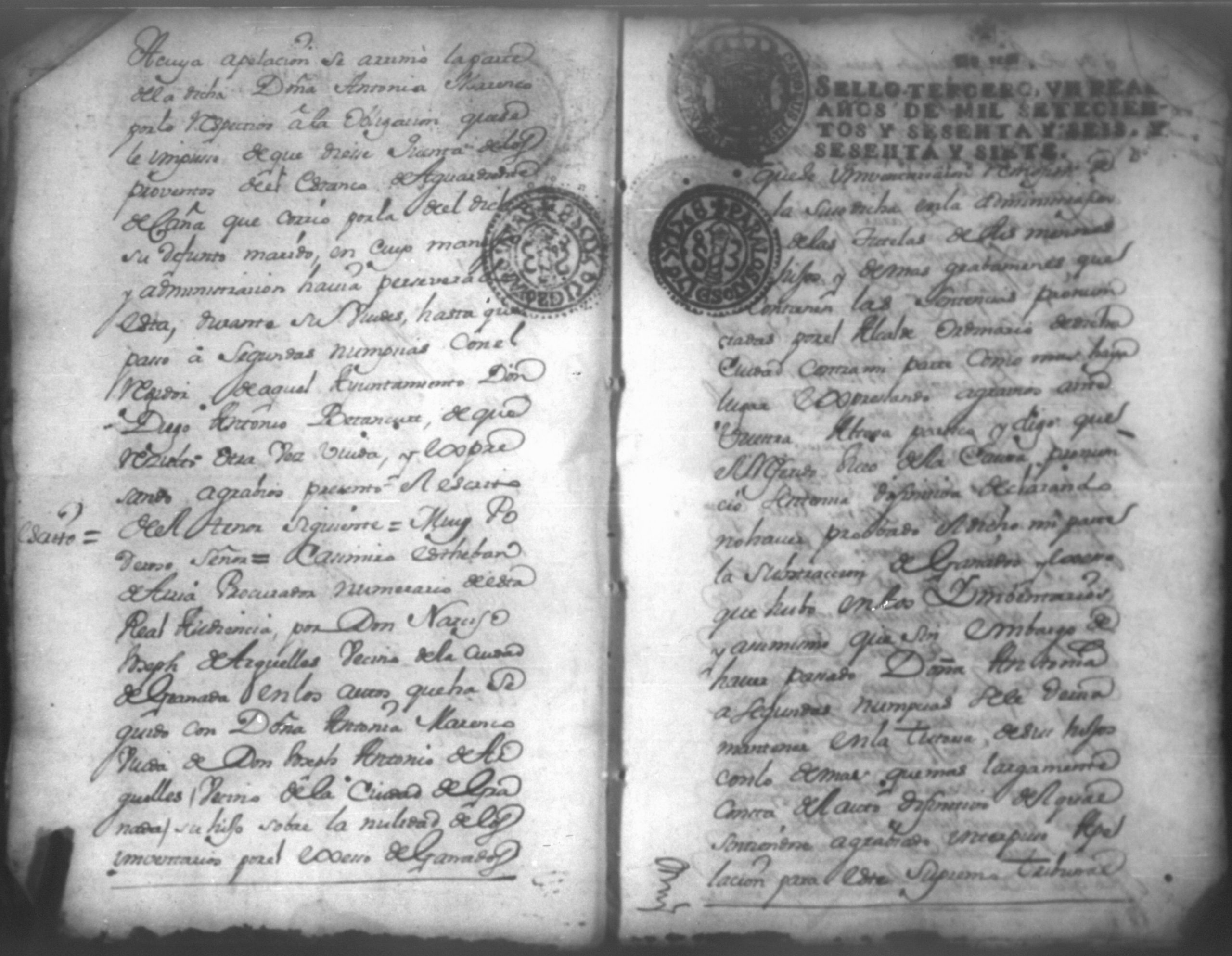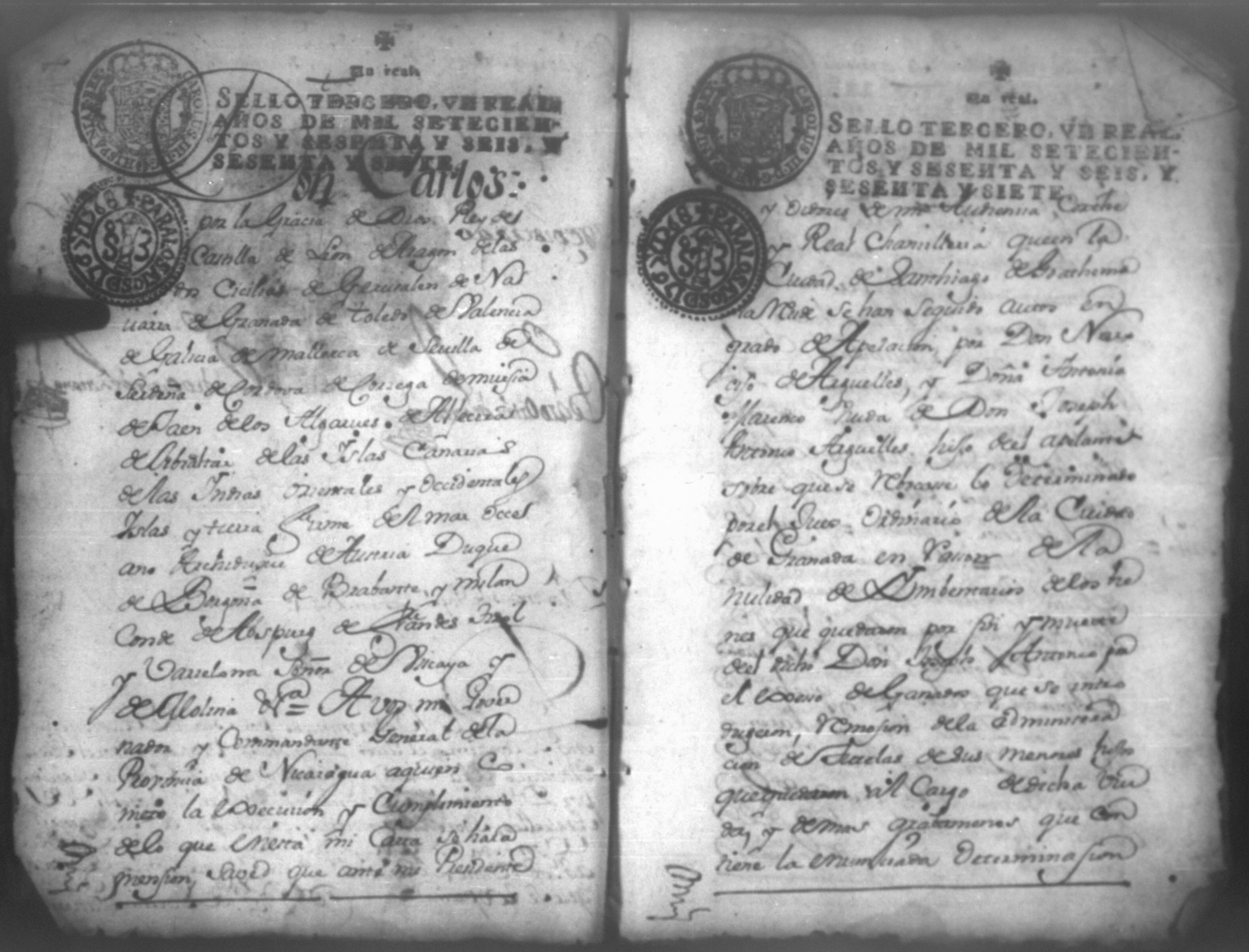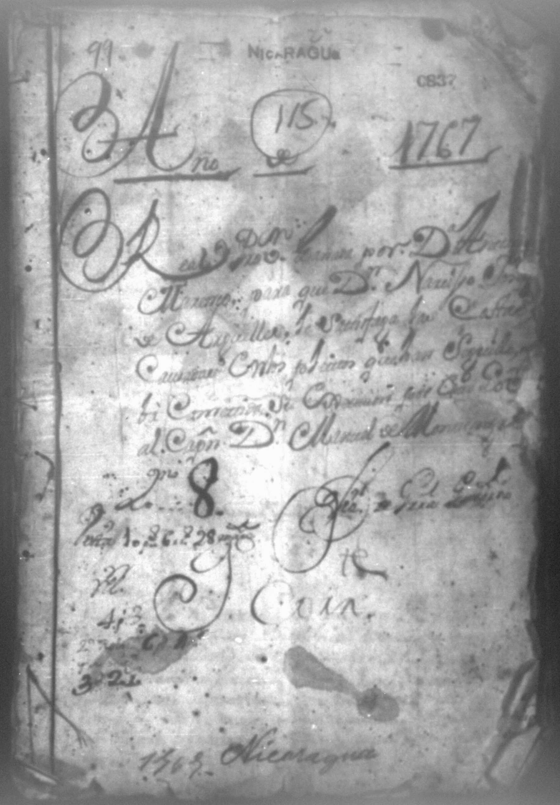 Temática: Nicaragua, Año de 1767. Real Provisión Granada por Doña Antonia Marenco que Don Narciso Joseph de Arguelles le satisfaga las costas y comisiones en los pleitos que han seguido contra comisión sobre ejecución [...] Real Cancilleria que en la ciudad de Santiago de Guatemala recide se han seguido autos en grado de Apelacion por Don Narciso de Arguelles y Doña Antonia Marenco viuda de Don Joseph Antonio Arguelles hijo del apelante sobre que se rebocare lo determinado por el Juez Ordinario de la ciudad de Granada en [razon] de la nulidad de inventarios de los bienes que quedaron por fin y muerte del dicho Don Joseph Antonio