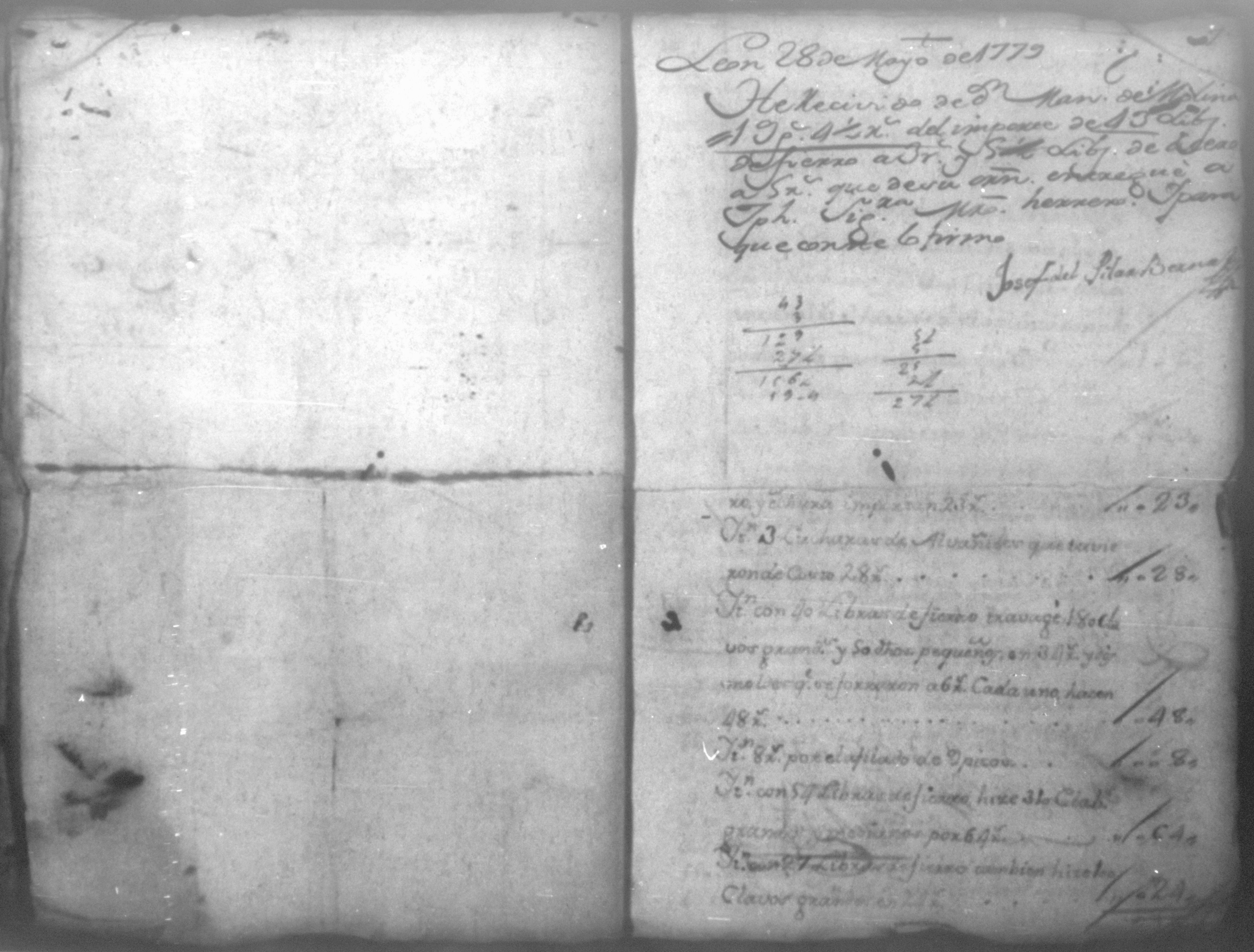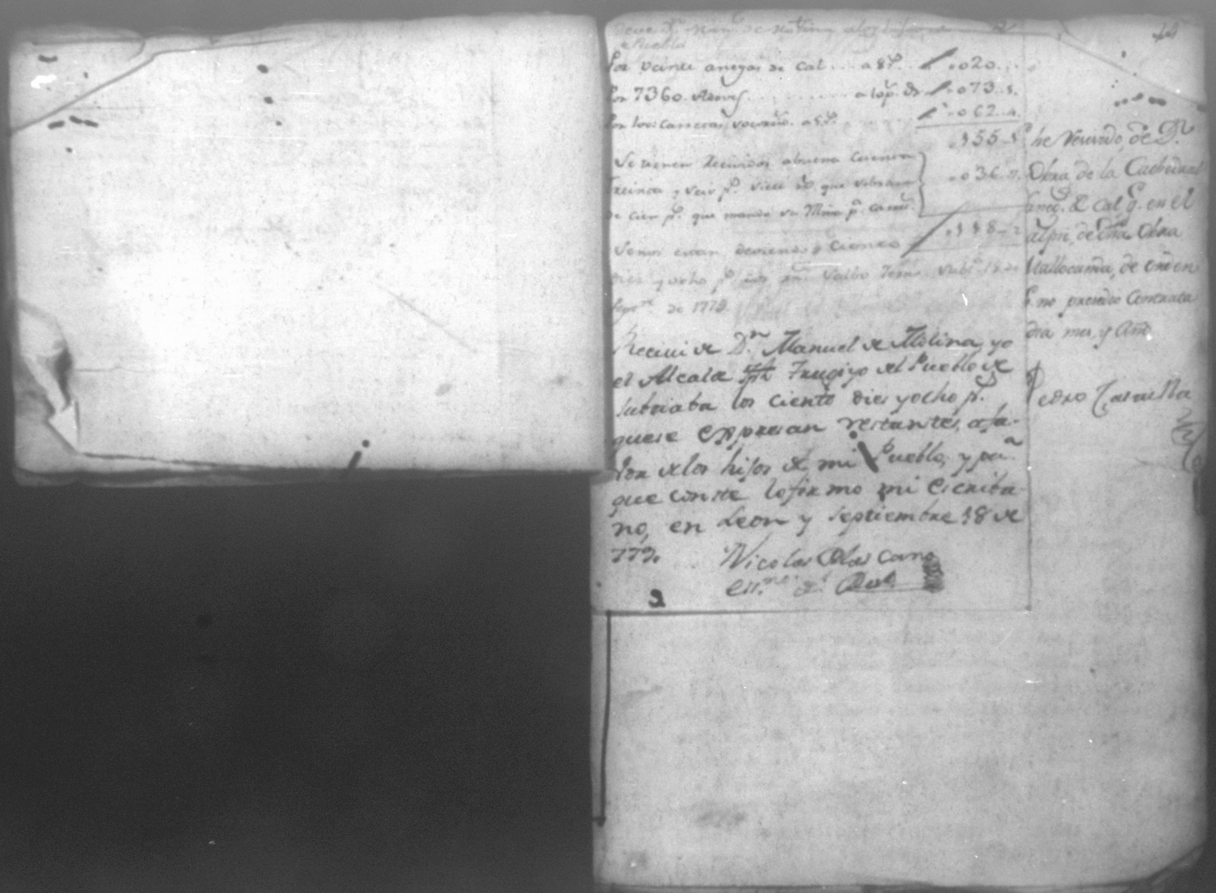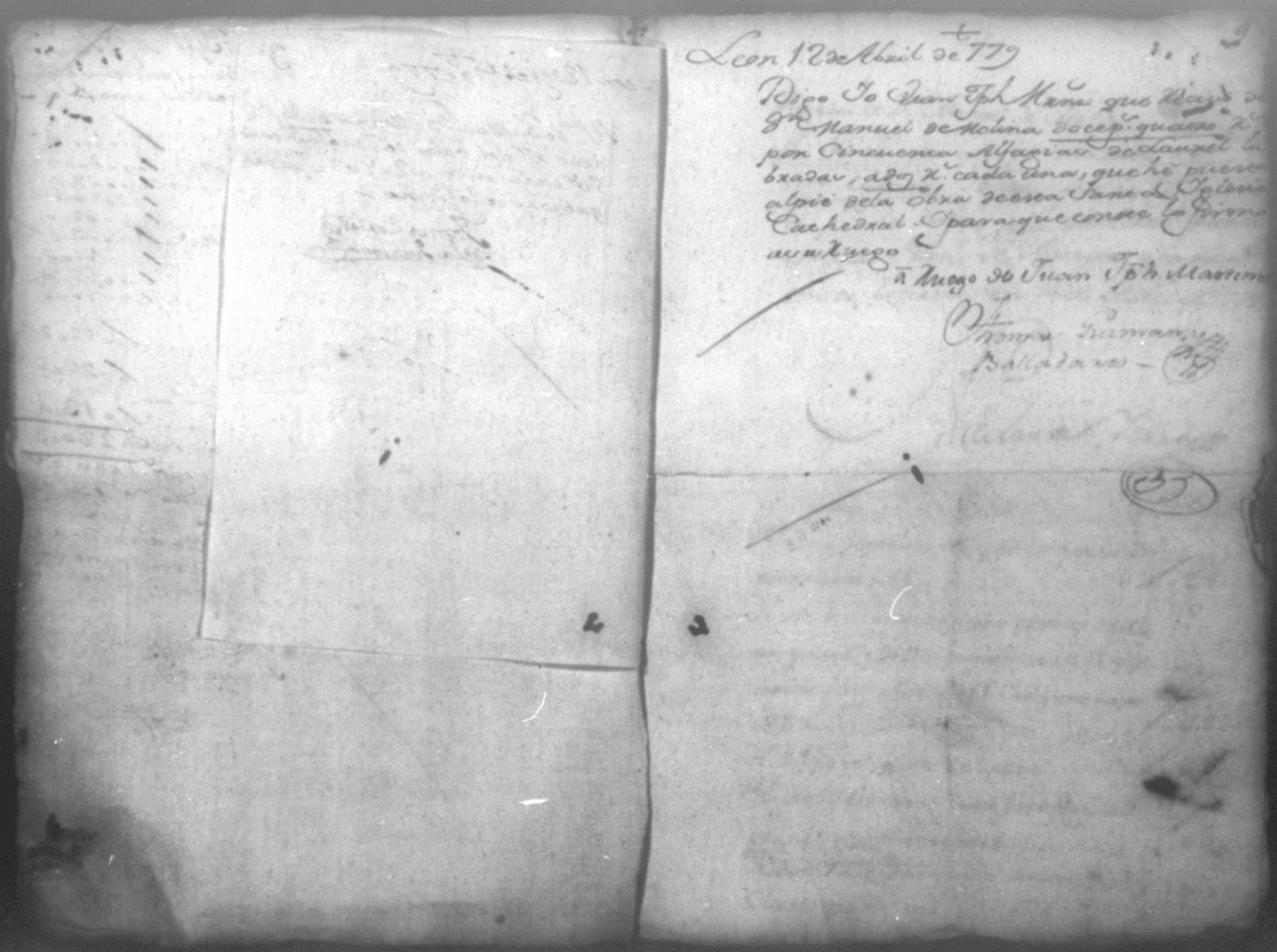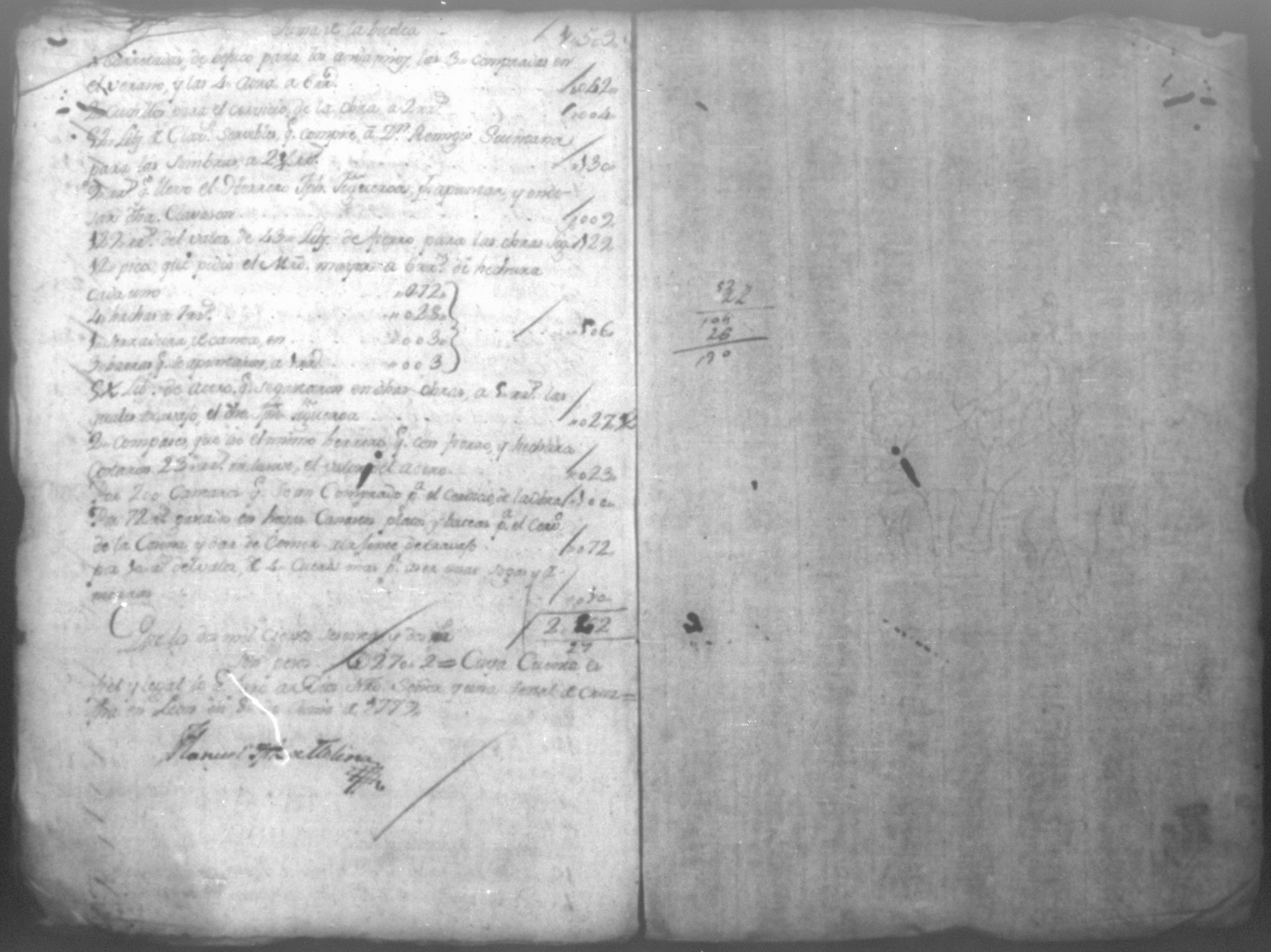 Temática: Año de 1779. Cuaderno que comprende veinte recibos con una relación de jornaleros que se ocuparon en el corte de madera y cuatro listas constantes de los materiales que se solicitaron y compraron para la obra de esta Santa Iglesia Cathedral.
