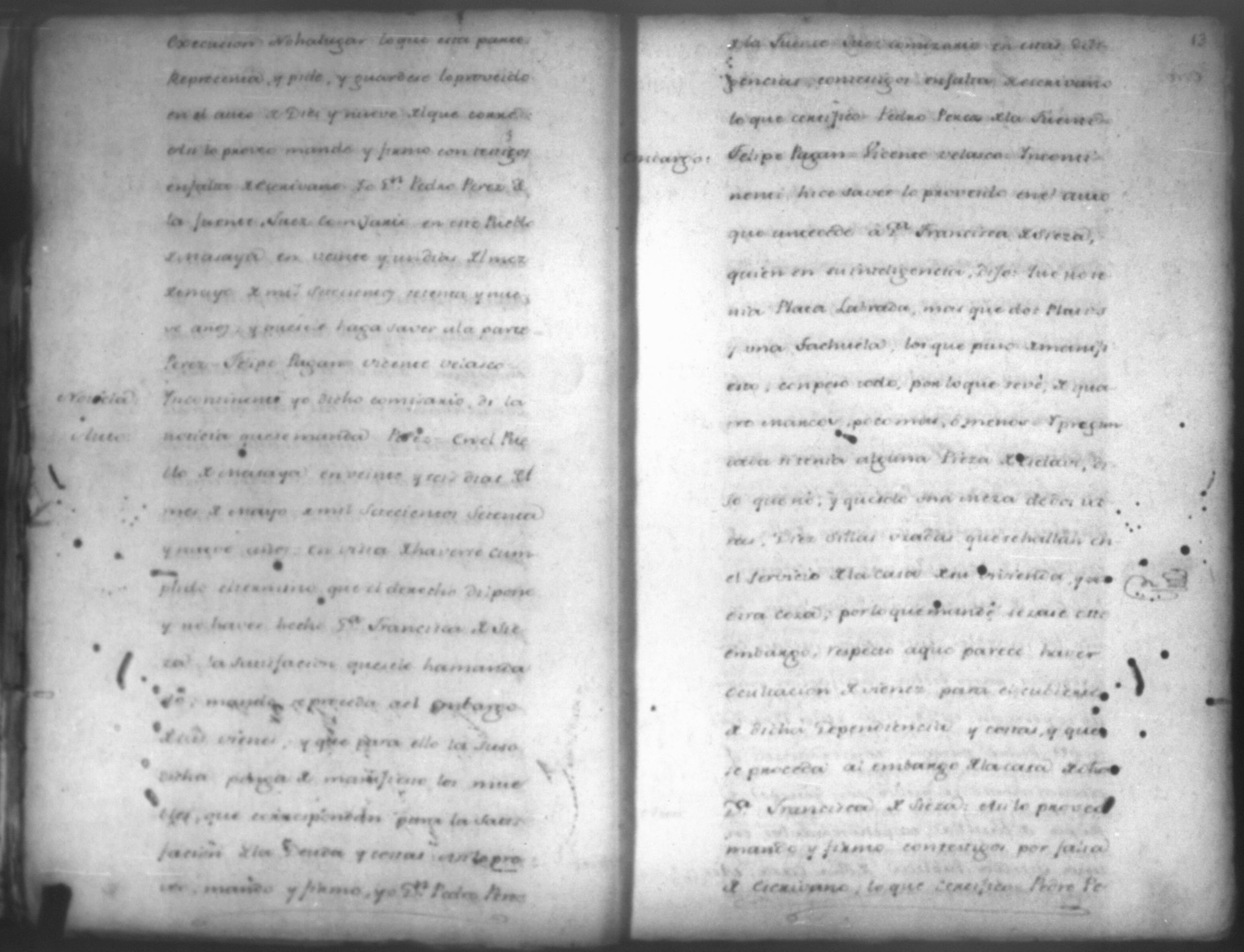 Temática: Año de 1779, Leon. Recurso de Apelacion por Doña Francisca de Cierra, vecina de la ciudad de Granada con la ejecución seguida contra ella por cantidad de cuatrocientos y mas pesos ante el Gobernador de la Provincia de Leon a pedimiento de Don Jacinto Martinez [Messa].