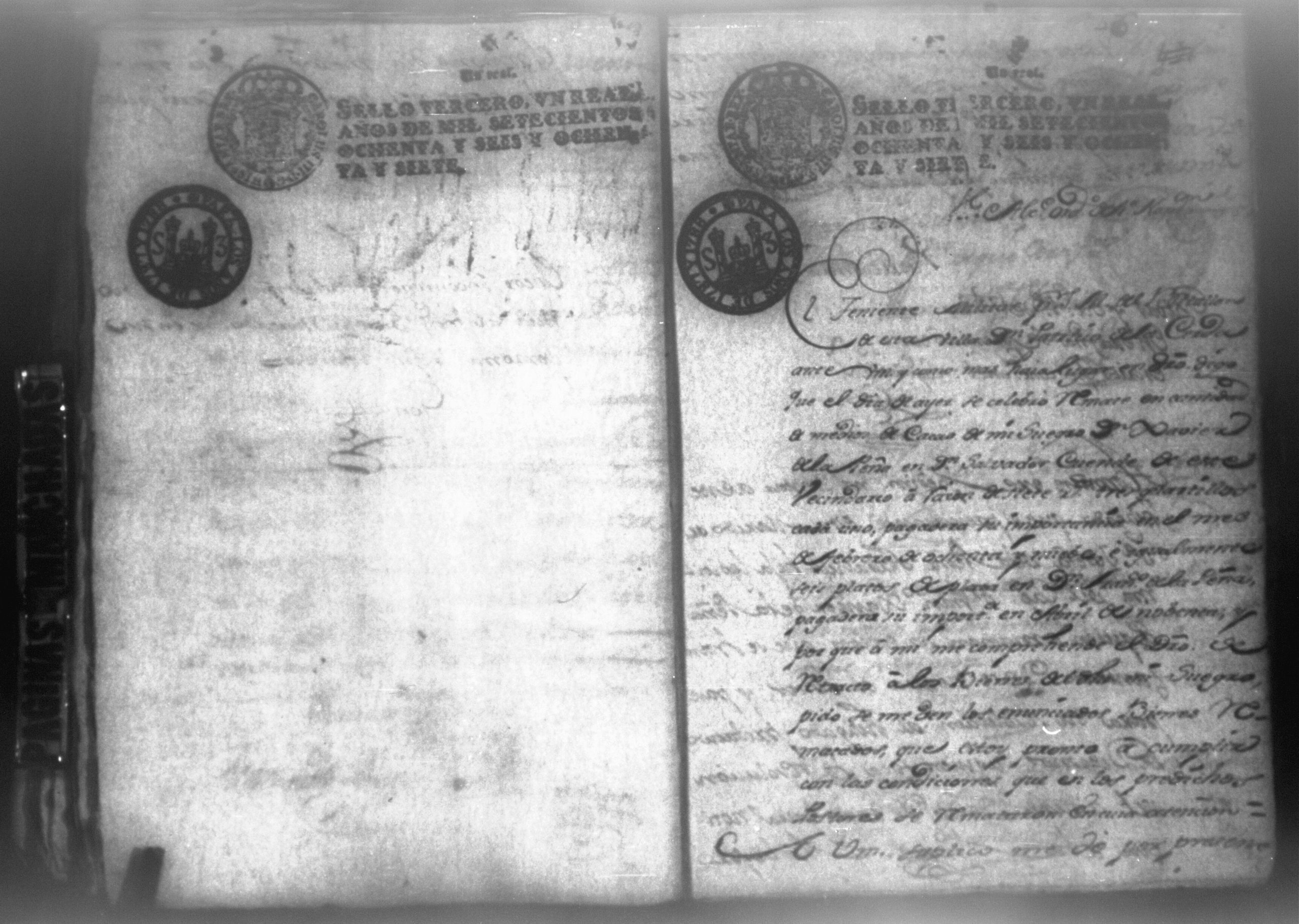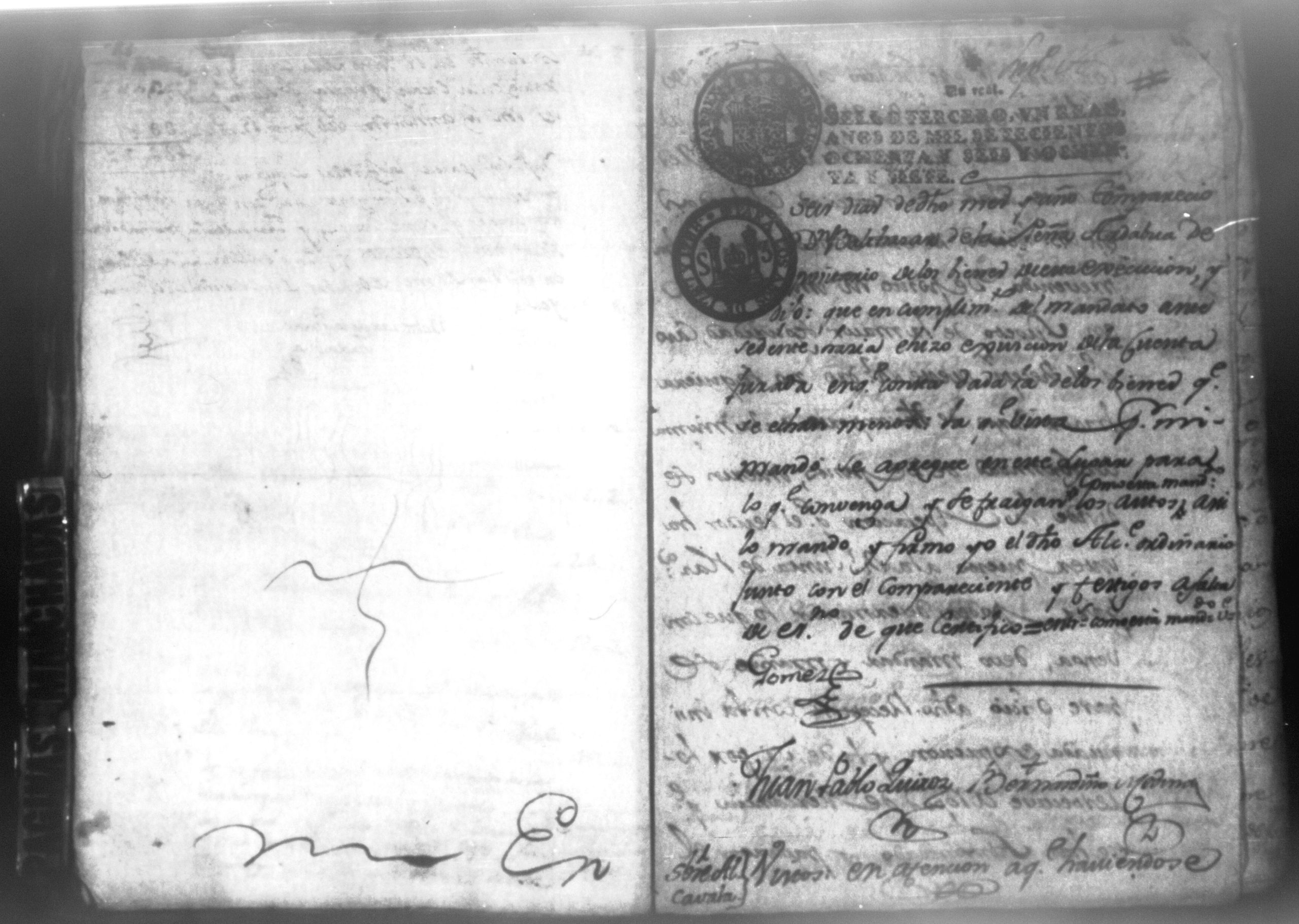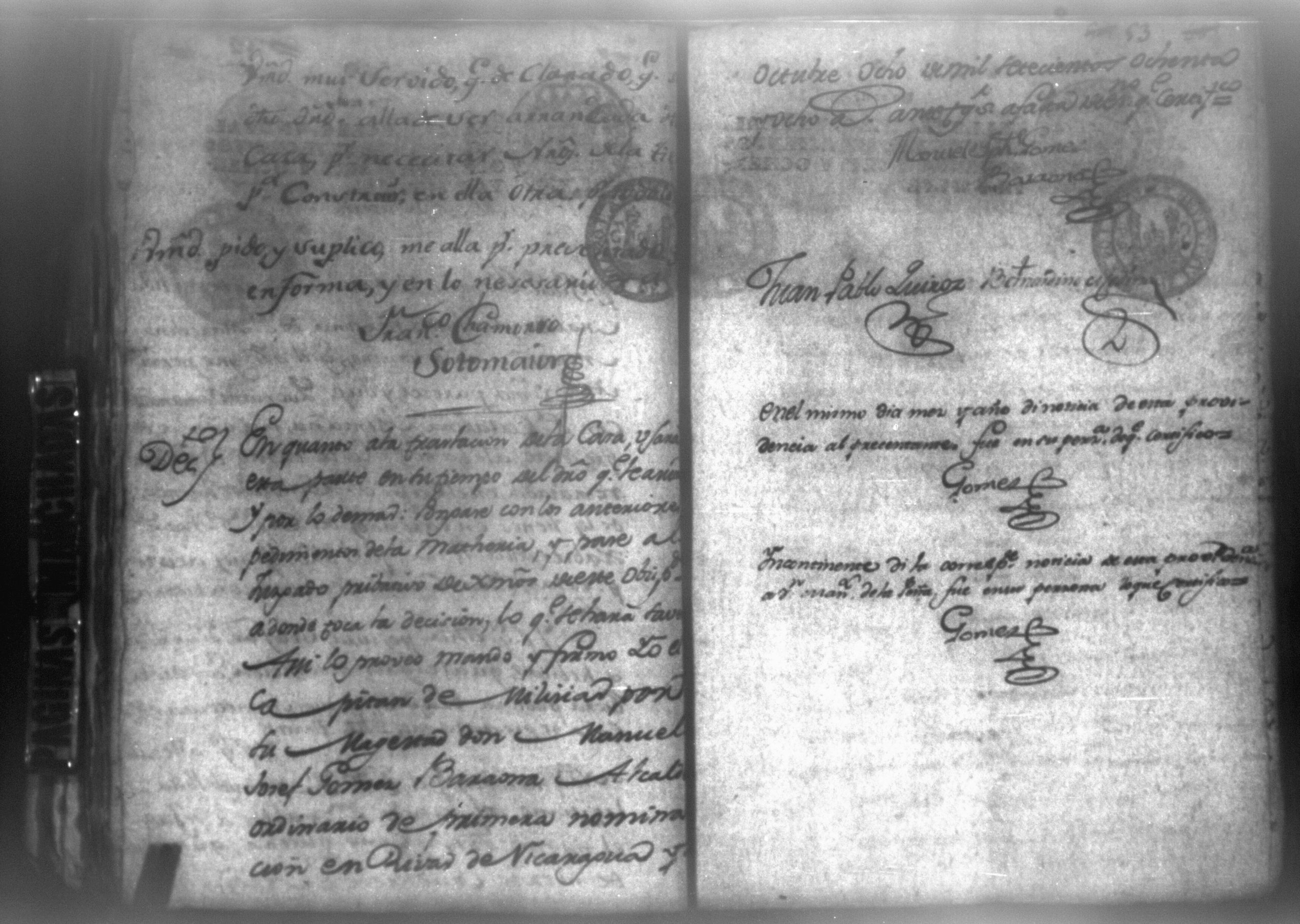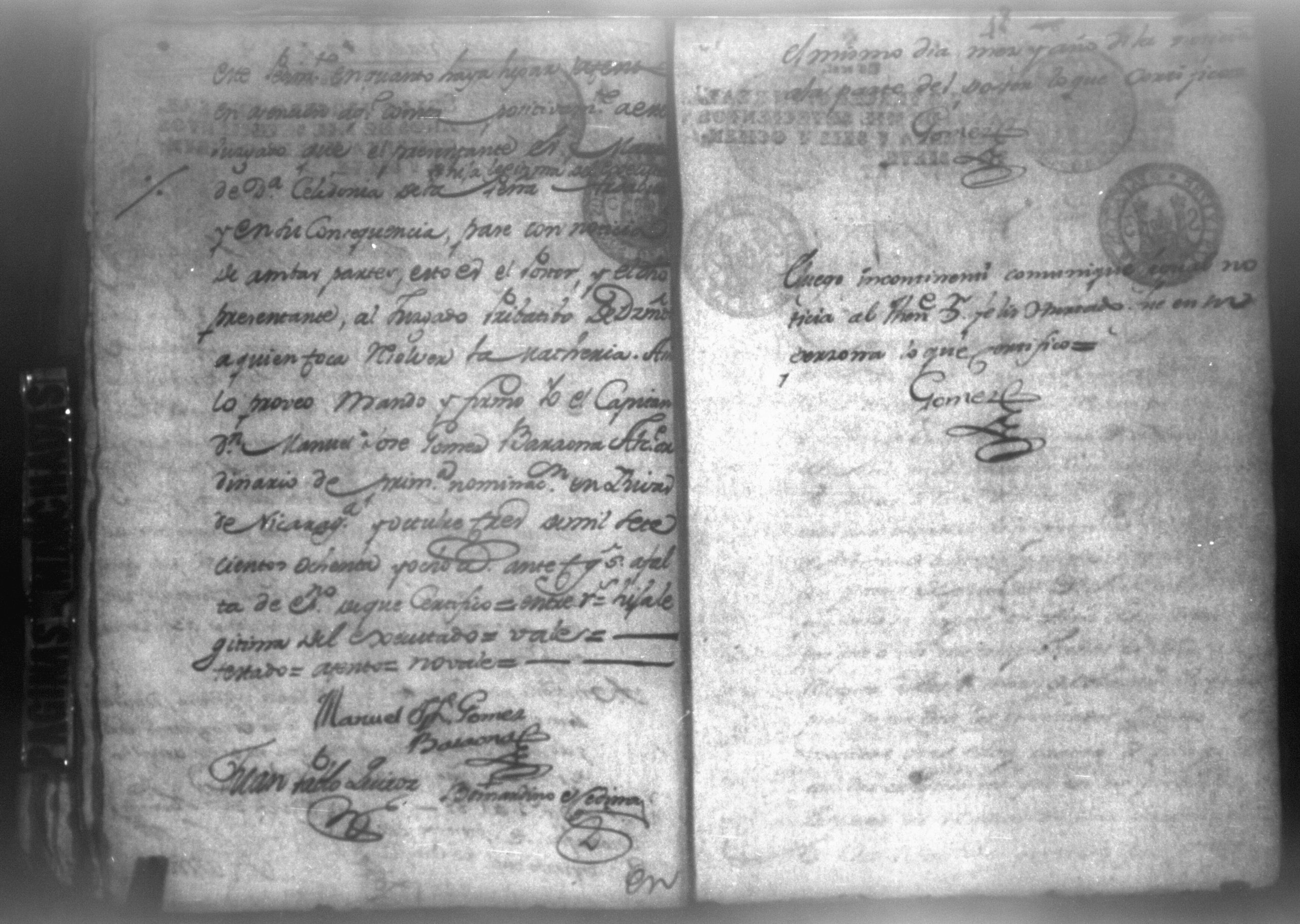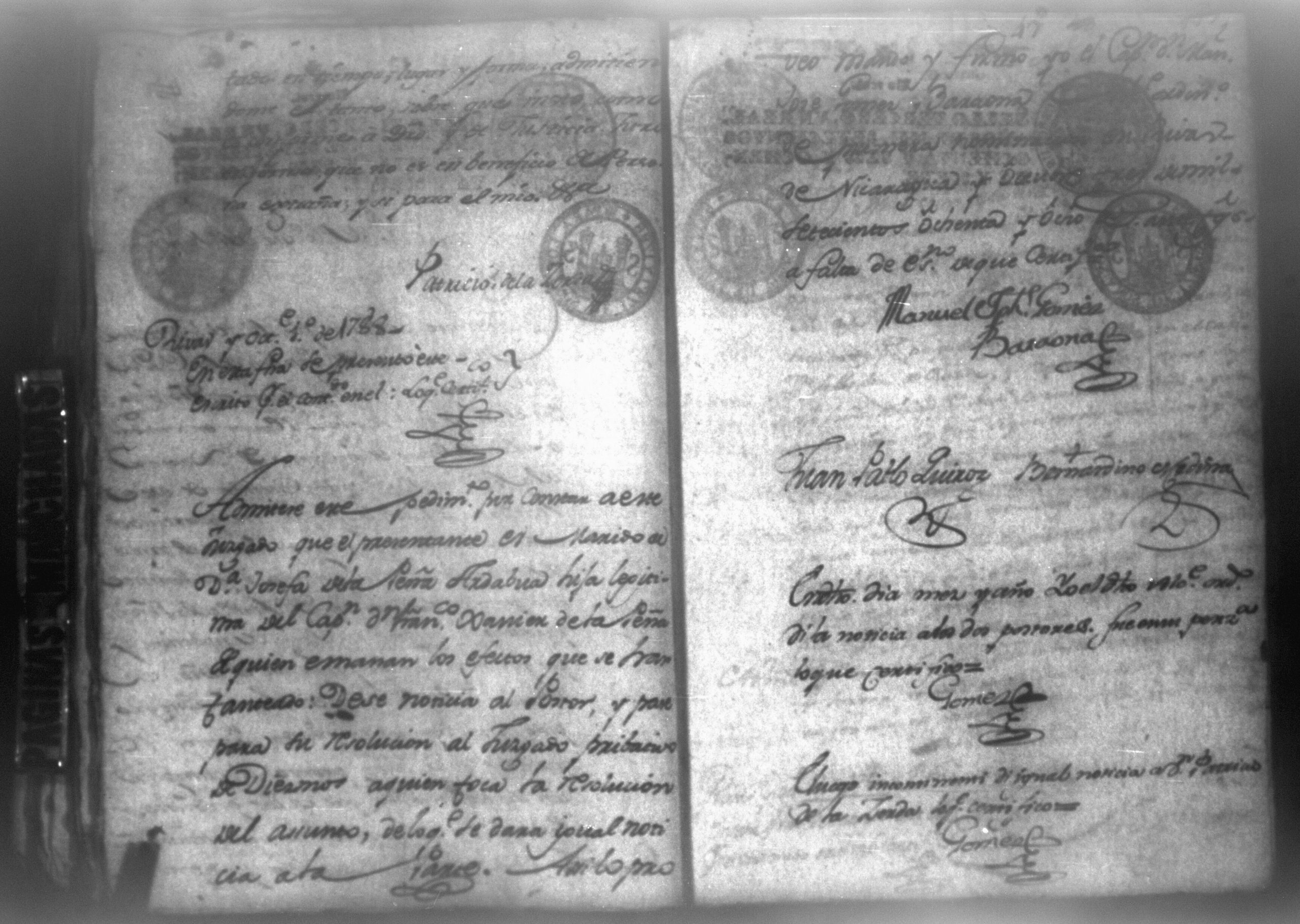 Temática: Nicaragua, 1788. Don Joseph Antonio de Bustos y Santiago vecino de la villa de Nicaragua y apoderado general del canciller y registro de la nueva Guatemal Don Diego Peinado […] ante usted paresco y digo que estoy informado de haberse pronunciado sentencia para hacer […] remate en la Villa de Nicaragua de los bienes embargados al Arrendador del Capitan Don Francisco Xavier de la Peña