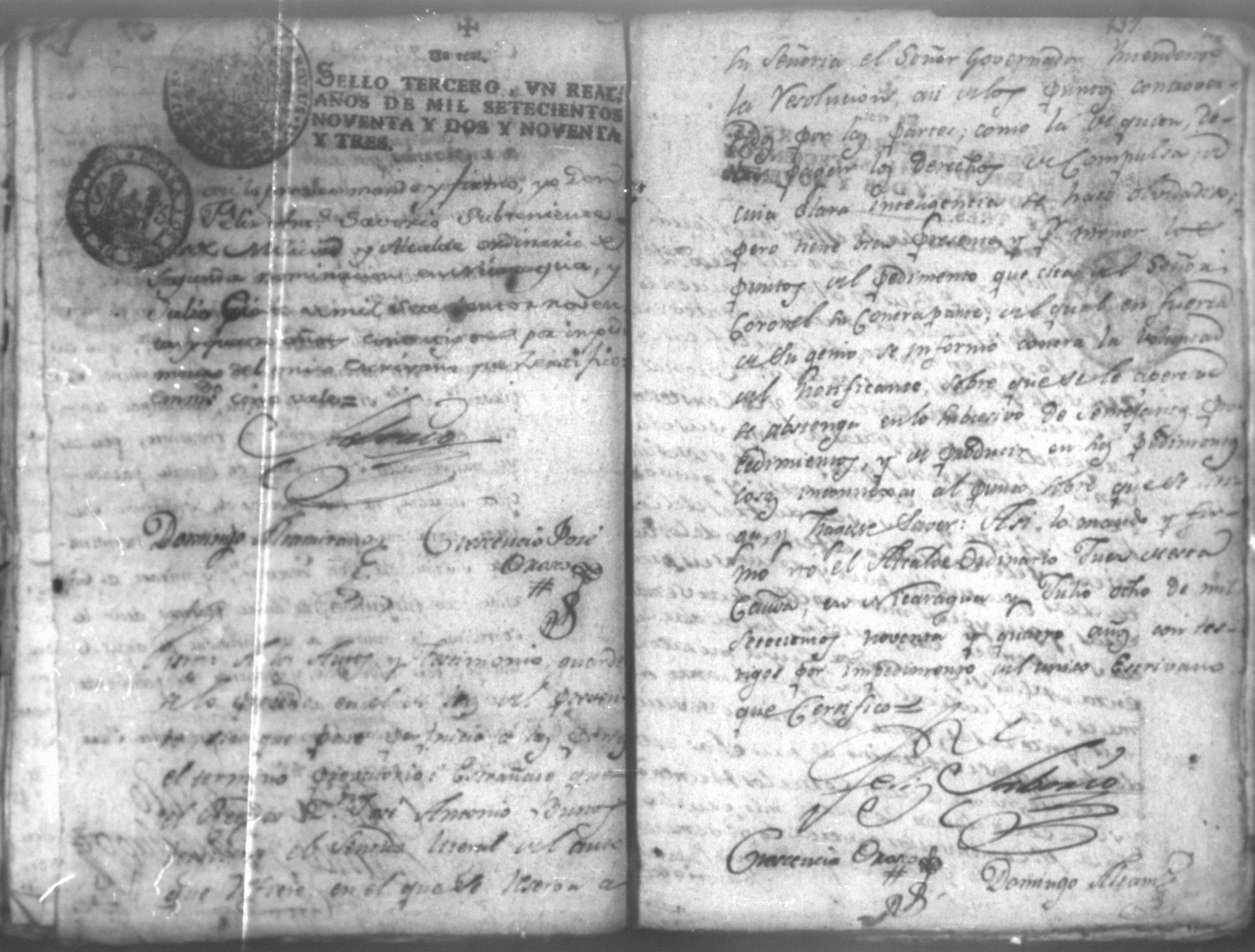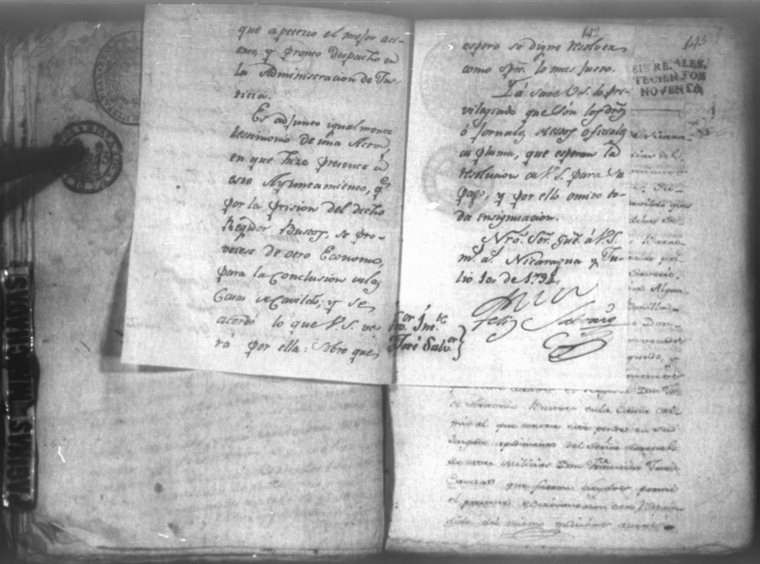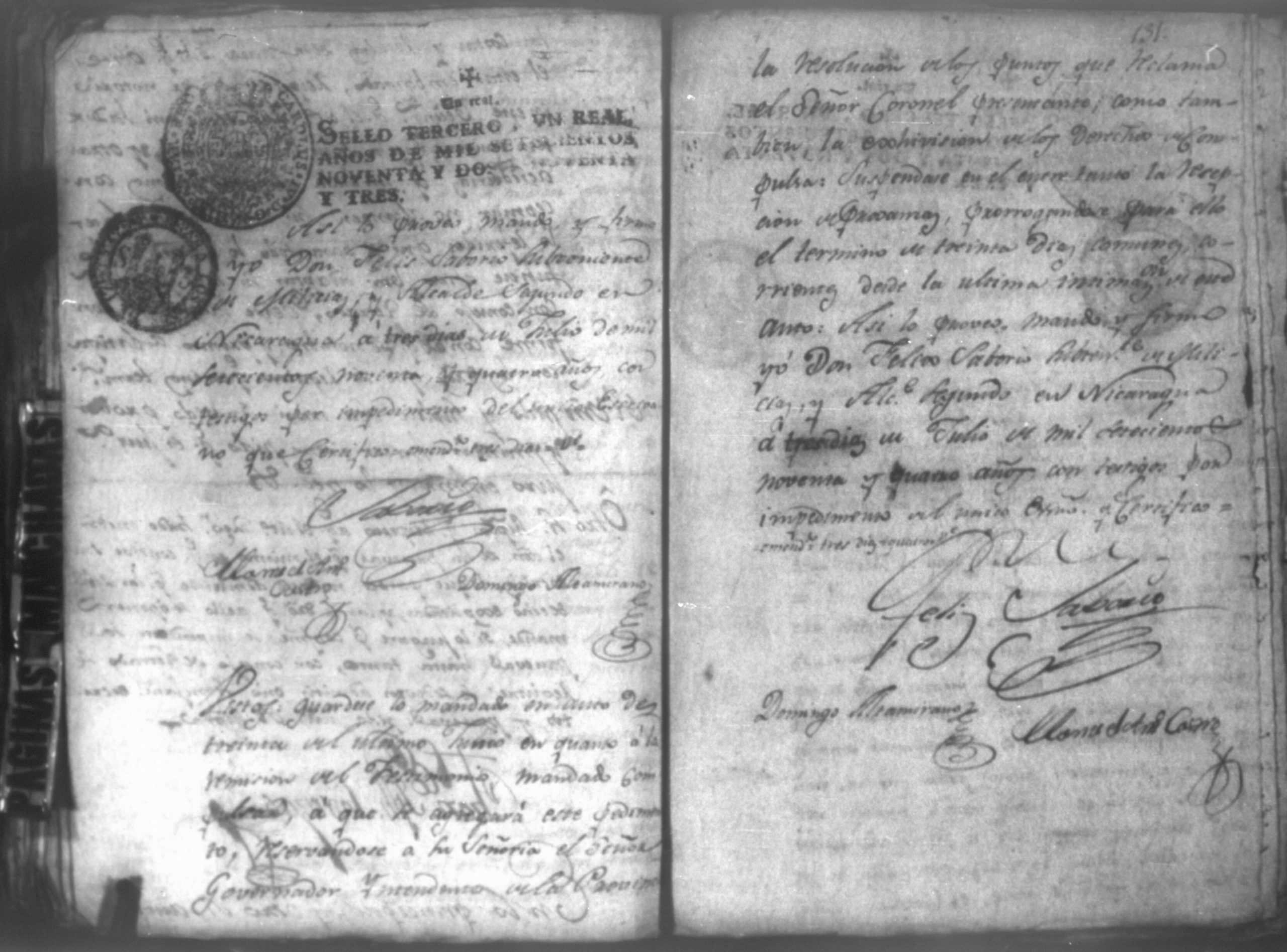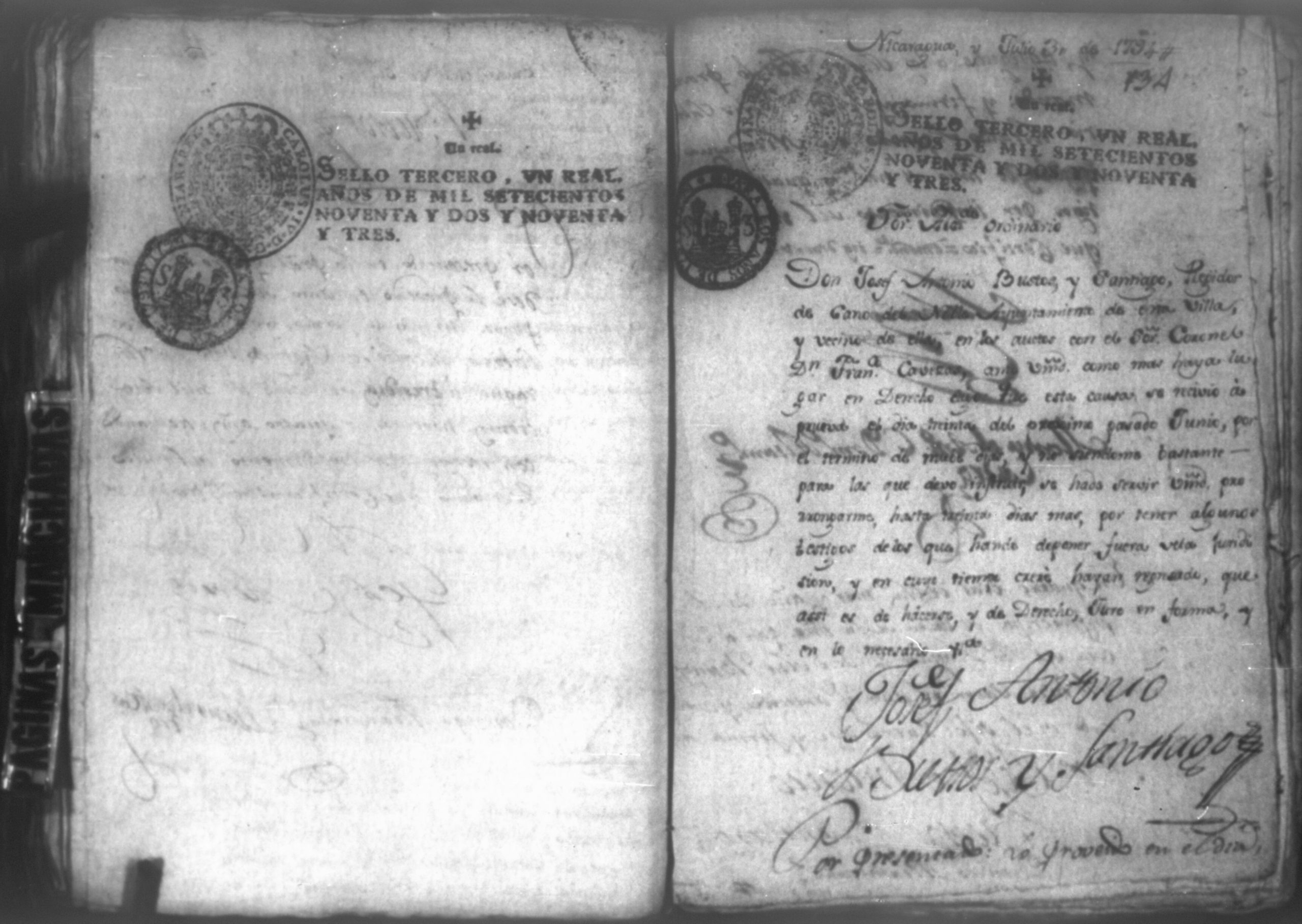 Temática: Nicaragua, 1793. Causa criminal contra don José Antonio Bustos, á pedimento del coronel don Francisco José Cavezas, por palabras insultantes y por a ver insultado á don Juan Cañas y al comisionado don Francisco Gonzalez. Además, malversó calidades de [propios] y suplanto un escrito de doña Lorena Molina para tomar 400 pesos y los tomó y malversó. Incluye: Autos informativos por el atestado cometido por el regidor don Jose Antonio Bustos con don Francisco Gonzales, comisionado por la segunda vara para citar el primero.