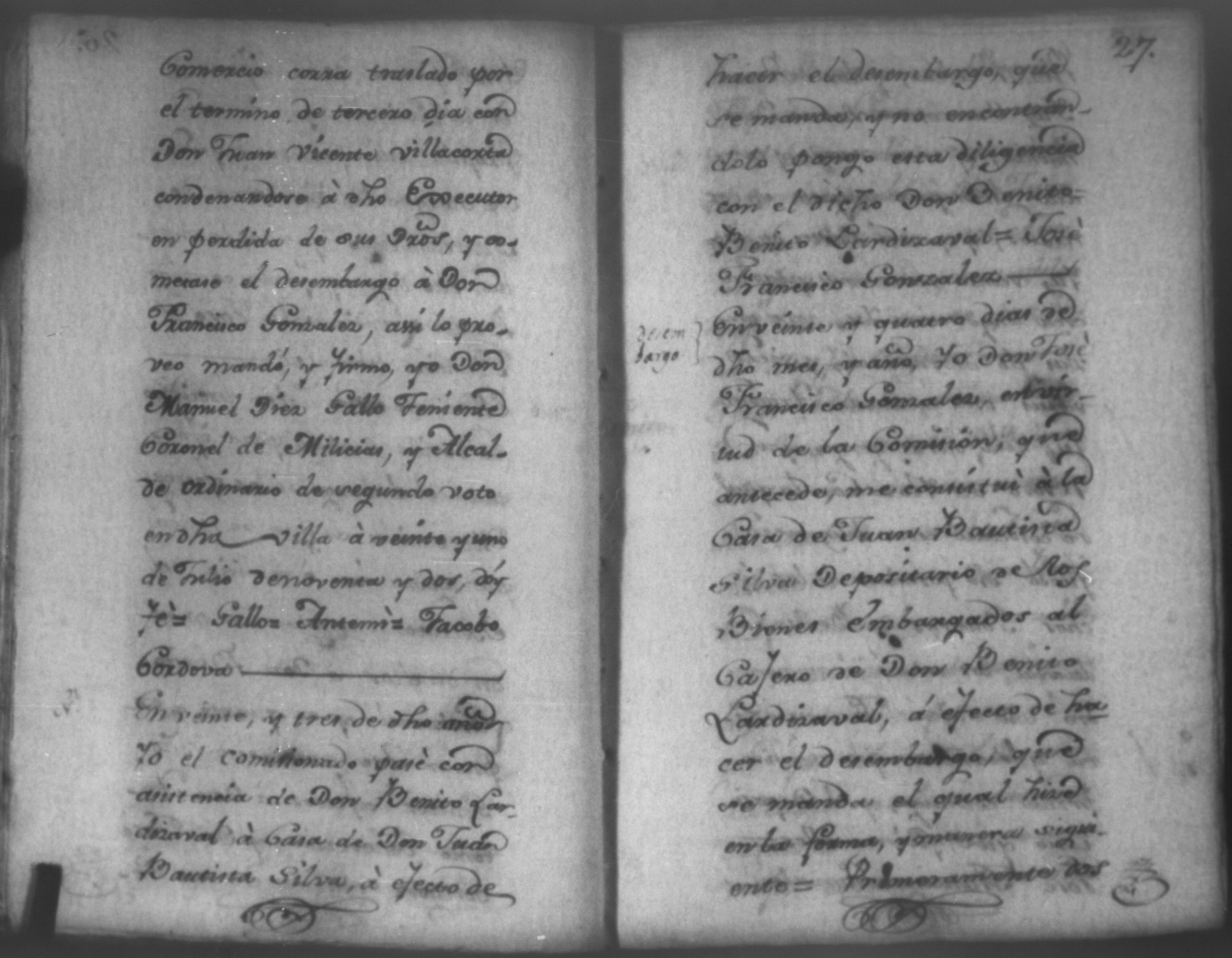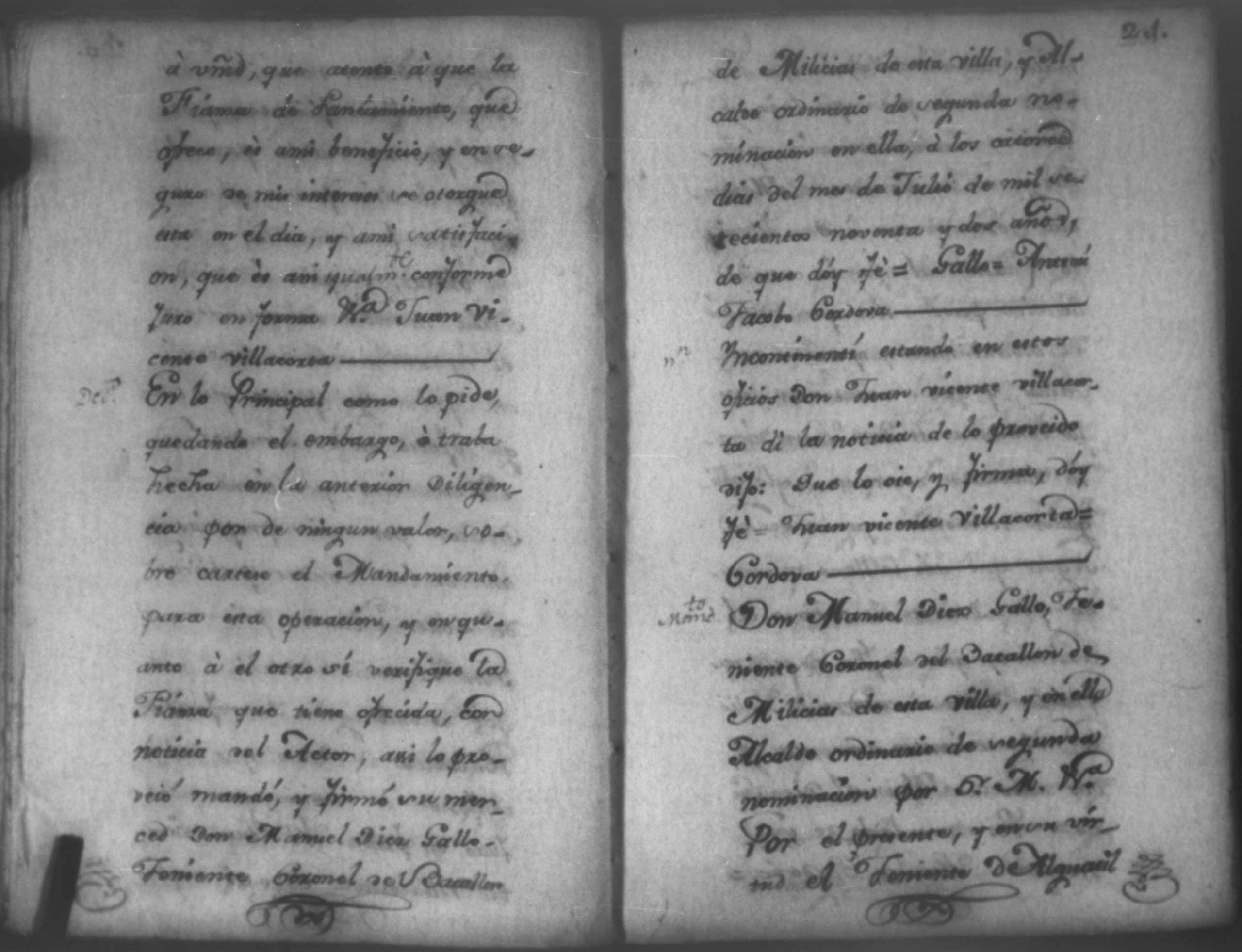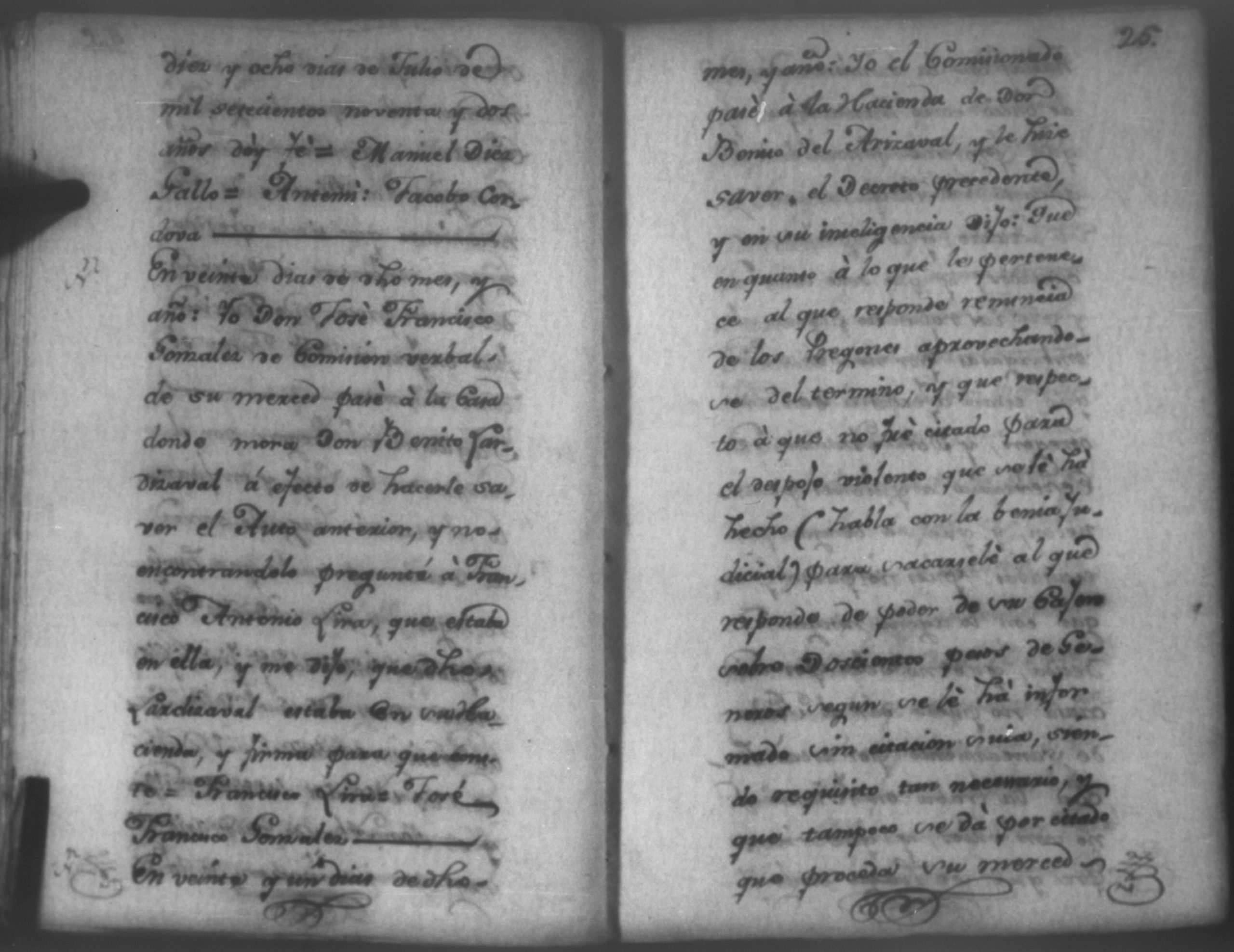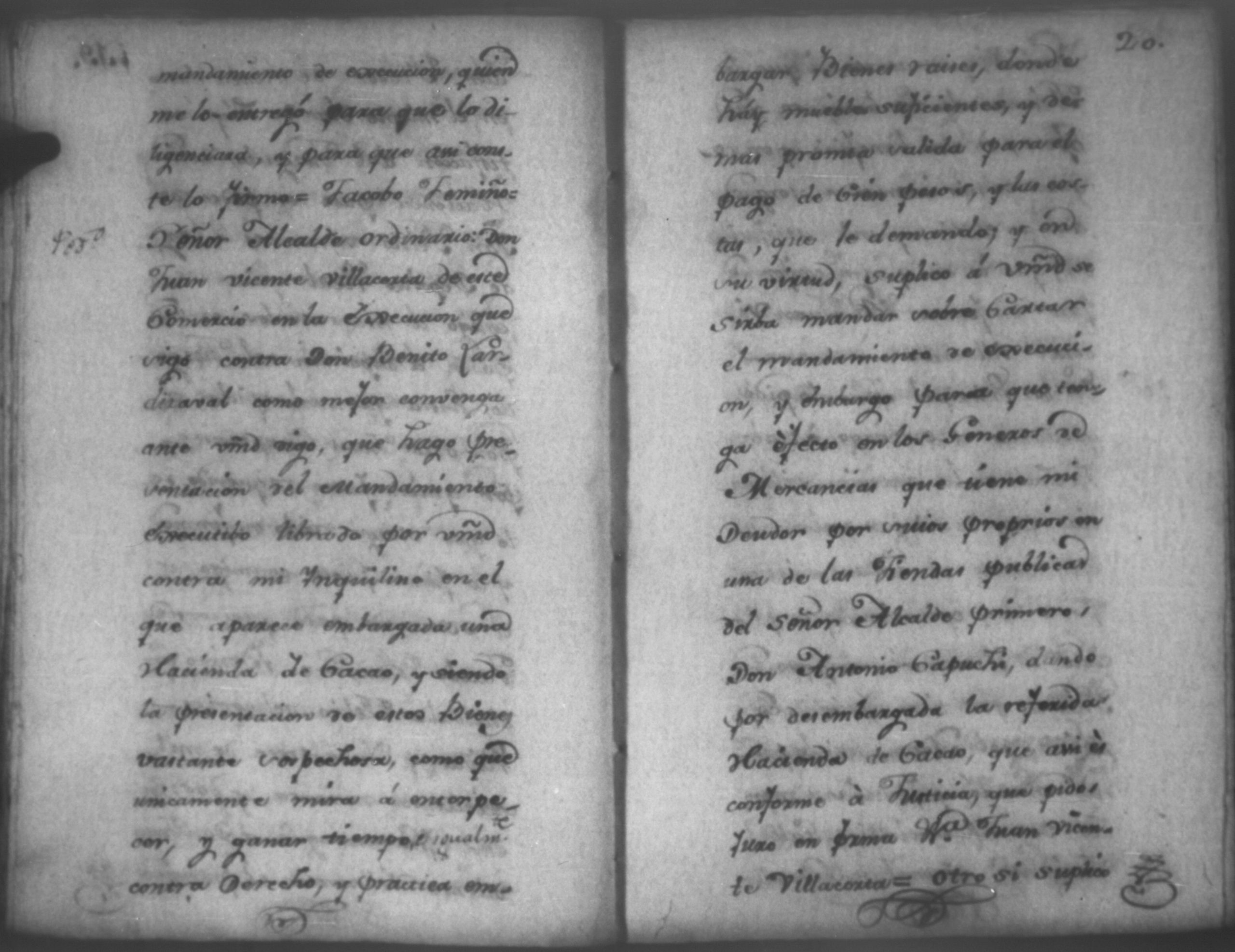 Temática: Nicaragua, 1792. Sobre el incumplimiento de pago por parte de Leandro Molina por la cantidad de 200 pesos, correspondientes al estanco de aguardiente. "Minas del Peñon, y Junio quince de mil setecientos ochenta y ocho. Digo yo Don Leandro Molina vecino de esta Jurisdicción de León y residente en dicho Mineral, que tengo celebrada contrata con Don Julian Armas de tomar el Estanco de Aguardiante de este dicho Mineral inclusive la poblacion del Sauce, en la cantidad de Doscientos pesos, á los mismos que me obligo, y deben correr de mi cuenta de la fecha en adelante dichos Estancos y la exivicion de la dicha cantidad la hede hacer a Don Agustin Rodriguez Lobato Asentista de dicho ramo, y con facultad de este sugeto á celebrado dicha Don Julian esta contrata y debe entenderse que los dichos Doscientos pesos se los he de dár por cada un año y para el seguro de esta contrata doy por mis fiadores a Don Antonio Arce y Don Benito Lardisayal y juntos los tres nos obligamos en toda forma de derecho y renunciamos todas las Leies, Fueros, y Derechos que hagan á nuestro fabor y queremos nos valgan ahora, y en tiempo alguno y nos constituimos por deudores y principales pagadores de la dicha cantidad [...]". (Extracto de los folios 1 y 1v.).