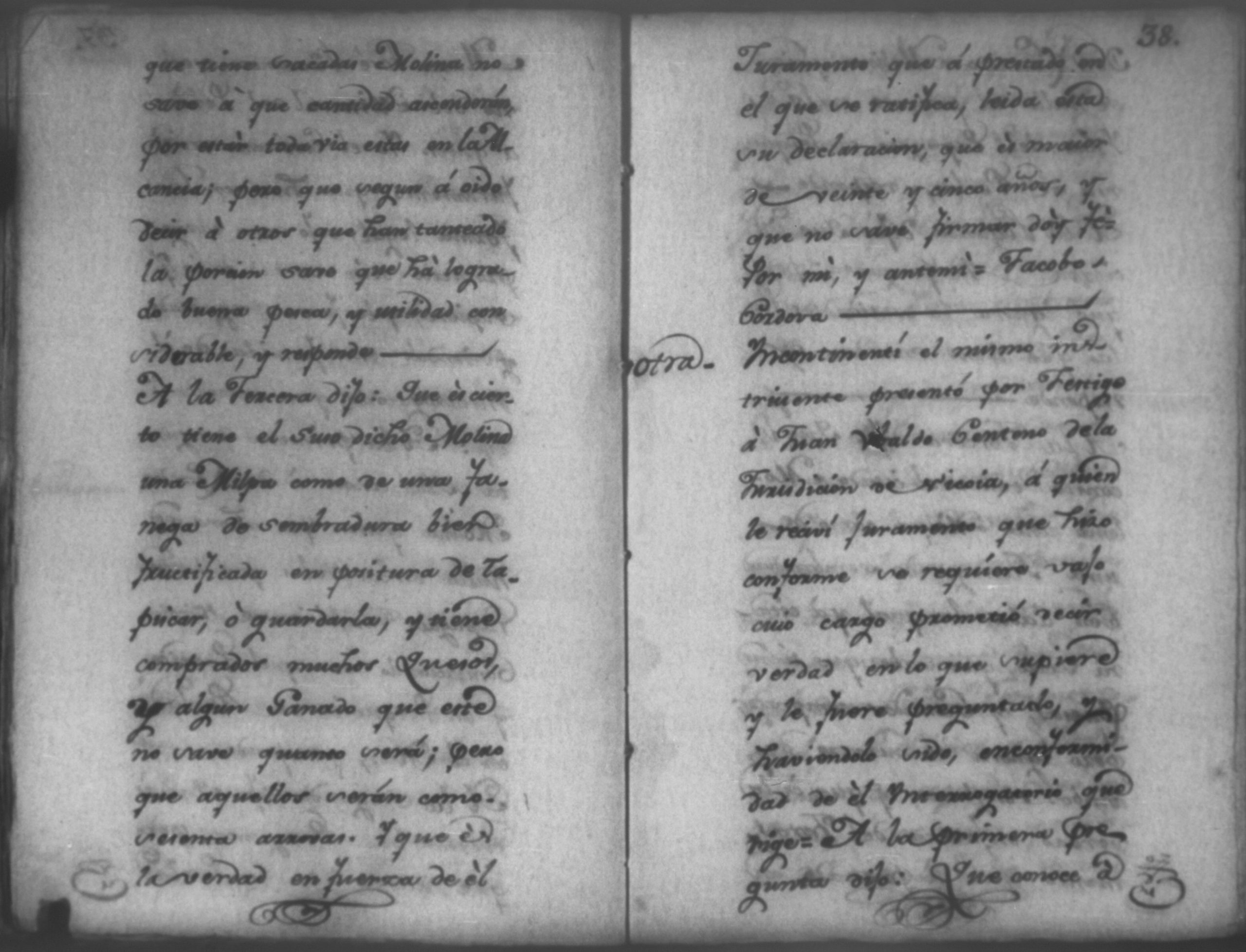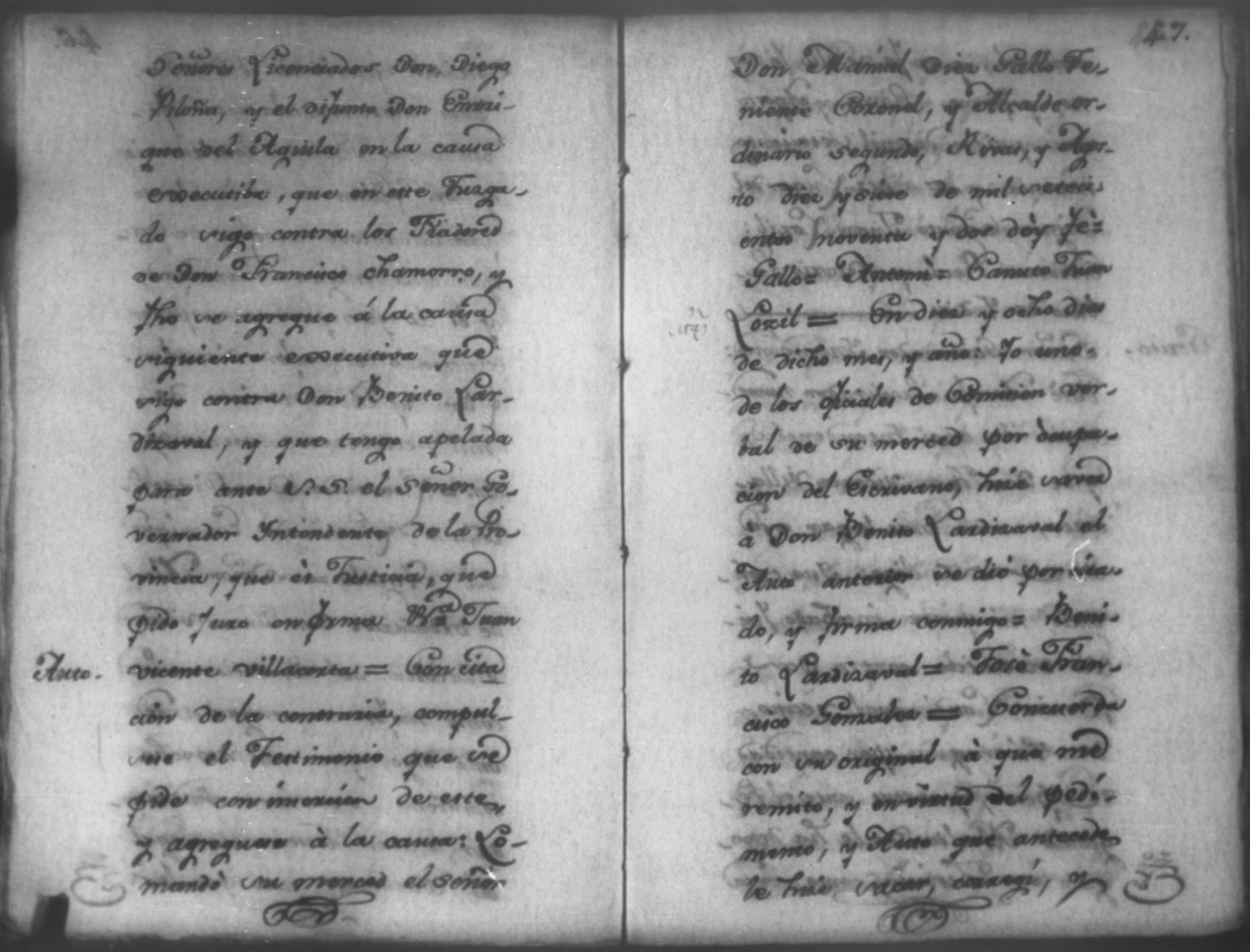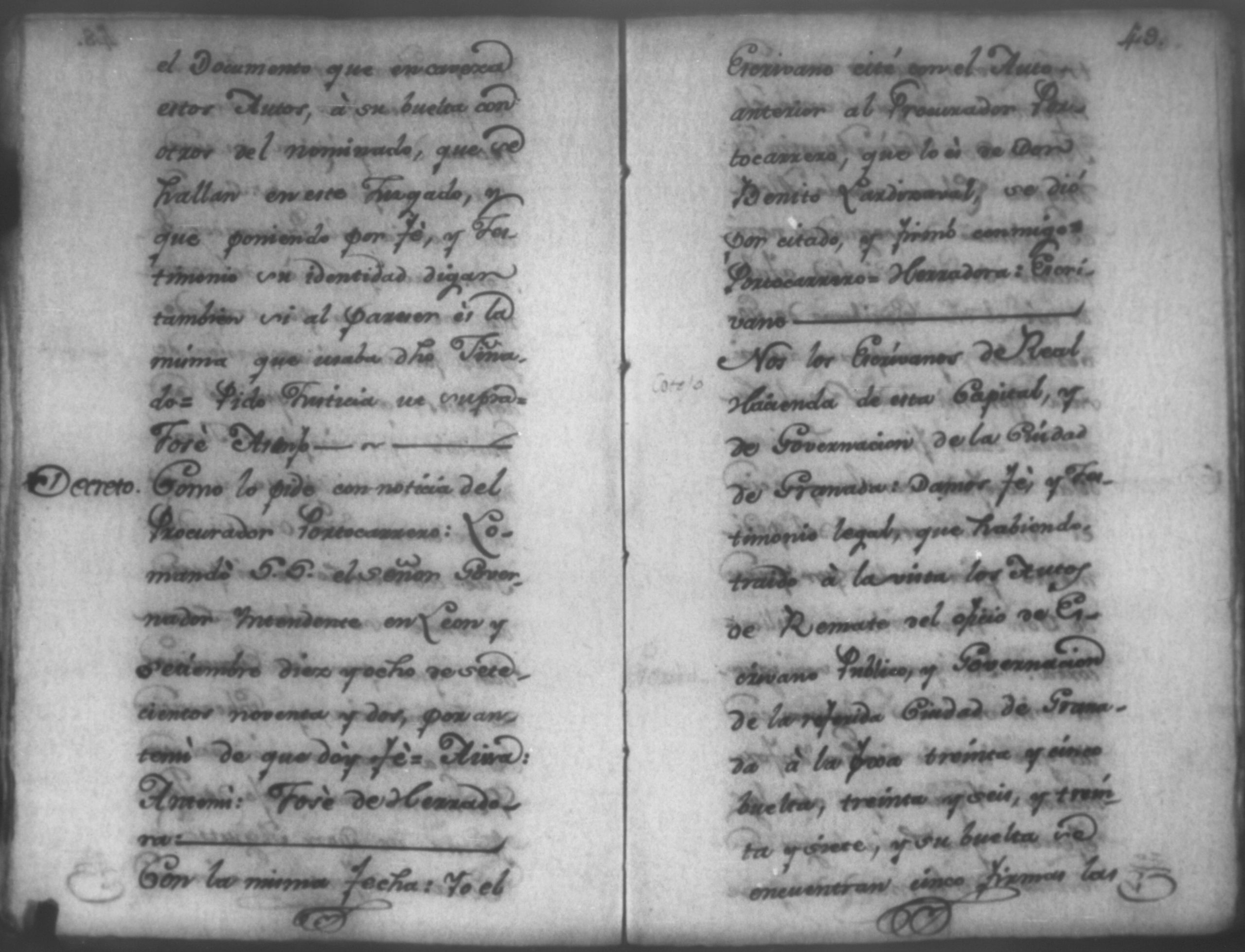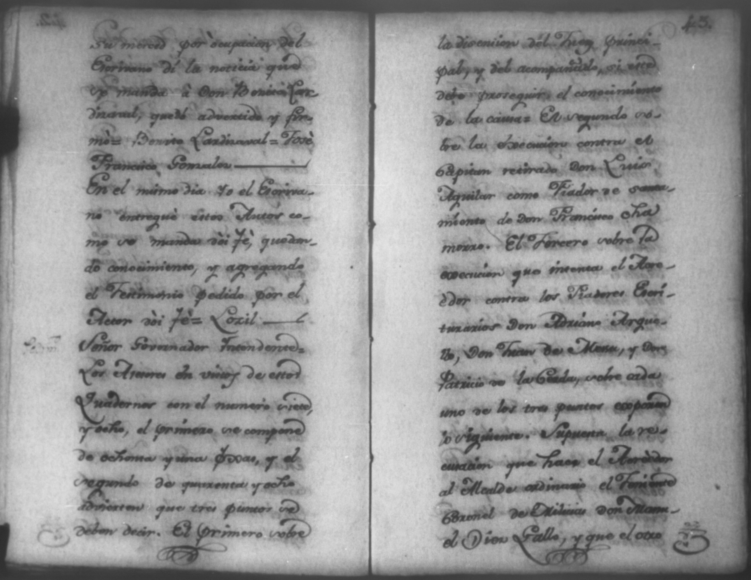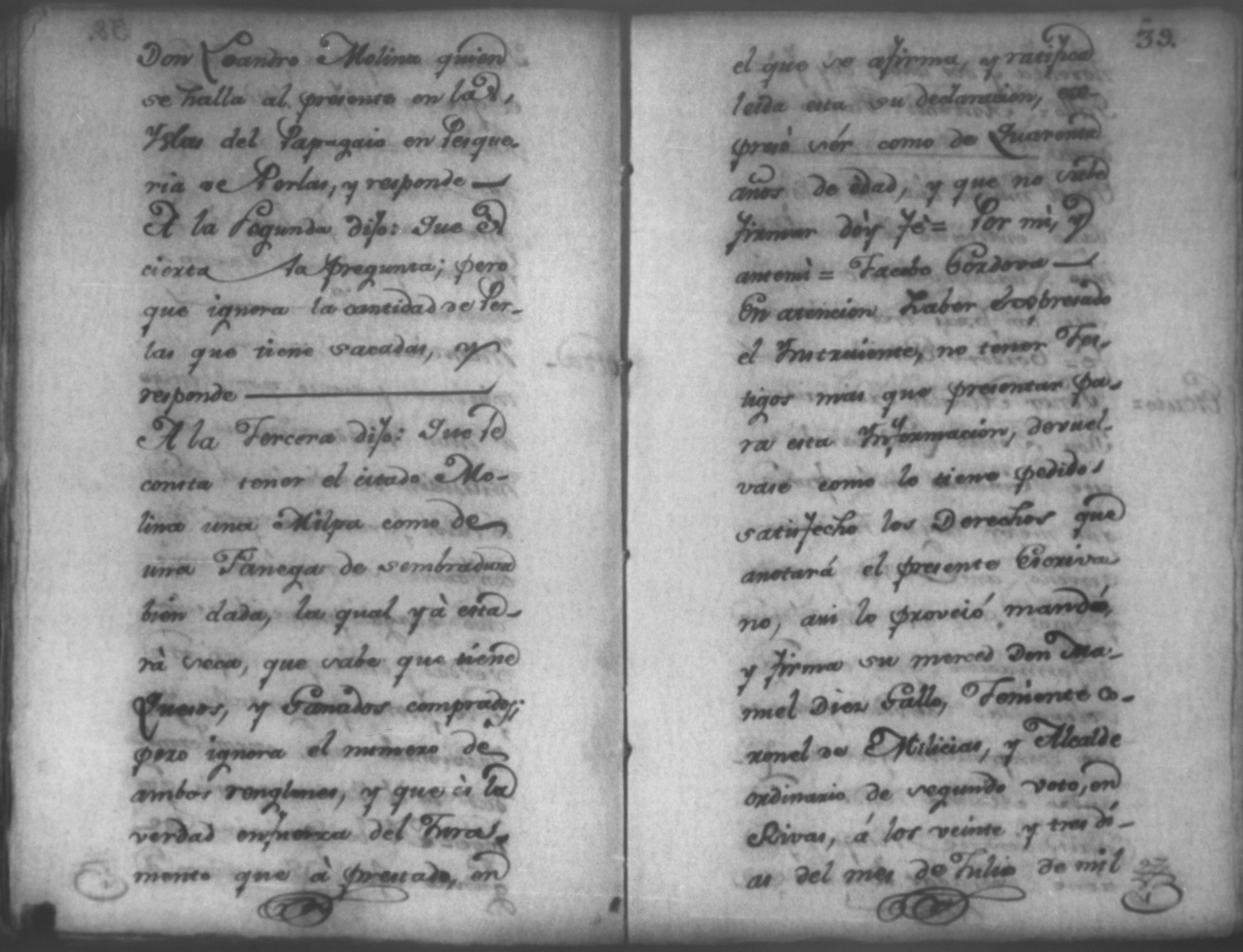 Temática: Nicaragua, 1792. Sobre el incumplimiento de pago por parte de Leandro Molina por la cantidad de 200 pesos, correspondientes al estanco de aguardiente. "Minas del Peñon, y Junio quince de mil setecientos ochenta y ocho. Digo yo Don Leandro Molina vecino de esta Jurisdicción de León y residente en dicho Mineral, que tengo celebrada contrata con Don Julian Armas de tomar el Estanco de Aguardiante de este dicho Mineral inclusive la poblacion del Sauce, en la cantidad de Doscientos pesos, á los mismos que me obligo, y deben correr de mi cuenta de la fecha en adelante dichos Estancos y la exivicion de la dicha cantidad la hede hacer a Don Agustin Rodriguez Lobato Asentista de dicho ramo, y con facultad de este sugeto á celebrado dicha Don Julian esta contrata y debe entenderse que los dichos Doscientos pesos se los he de dár por cada un año y para el seguro de esta contrata doy por mis fiadores a Don Antonio Arce y Don Benito Lardisayal y juntos los tres nos obligamos en toda forma de derecho y renunciamos todas las Leies, Fueros, y Derechos que hagan á nuestro fabor y queremos nos valgan ahora, y en tiempo alguno y nos constituimos por deudores y principales pagadores de la dicha cantidad [...]". (Extracto de los folios 1 y 1v.).