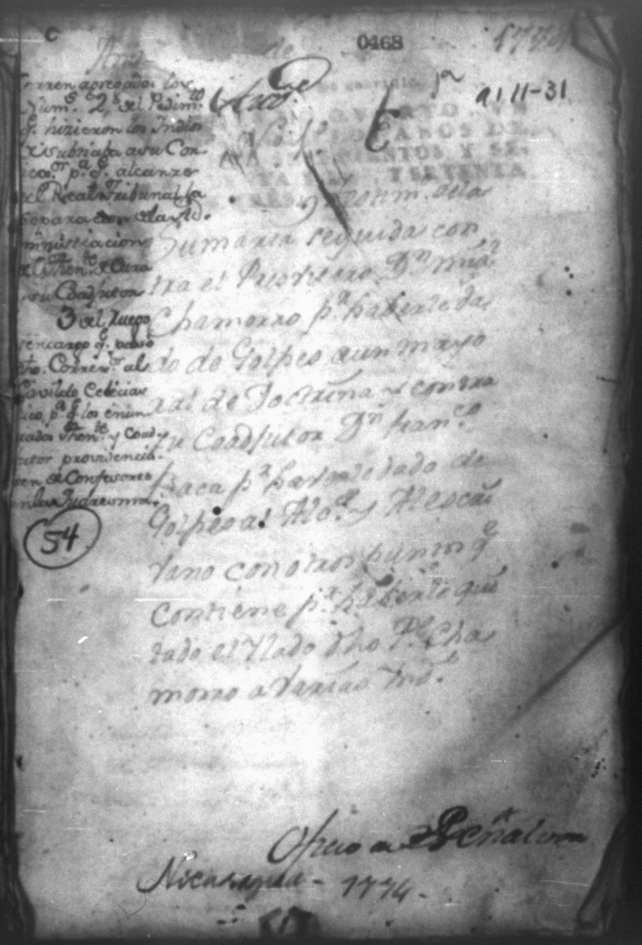 Sumaria contra el Presbitero Don Miguel Chamarro y Don Francisco Baca, Nicaragua 1774