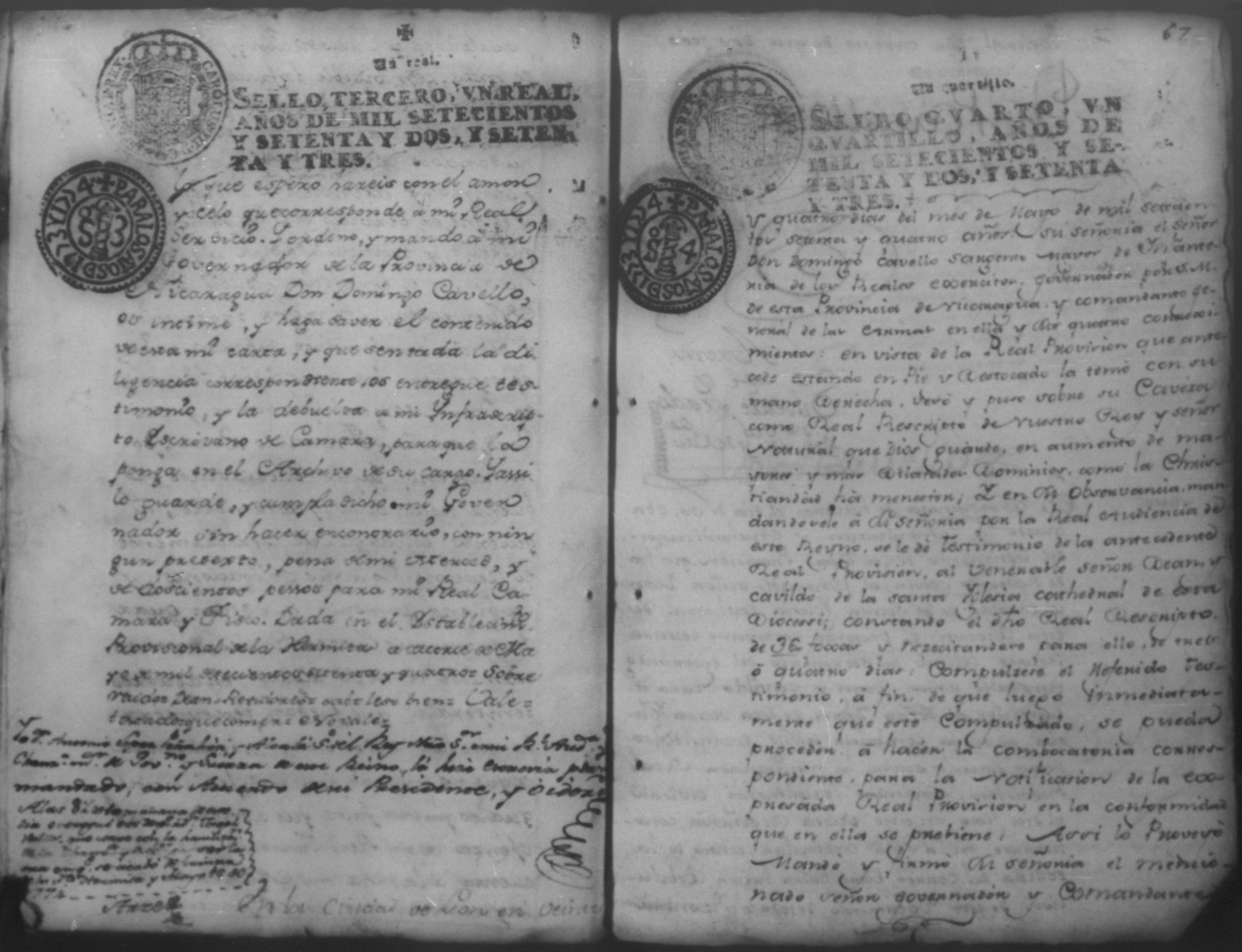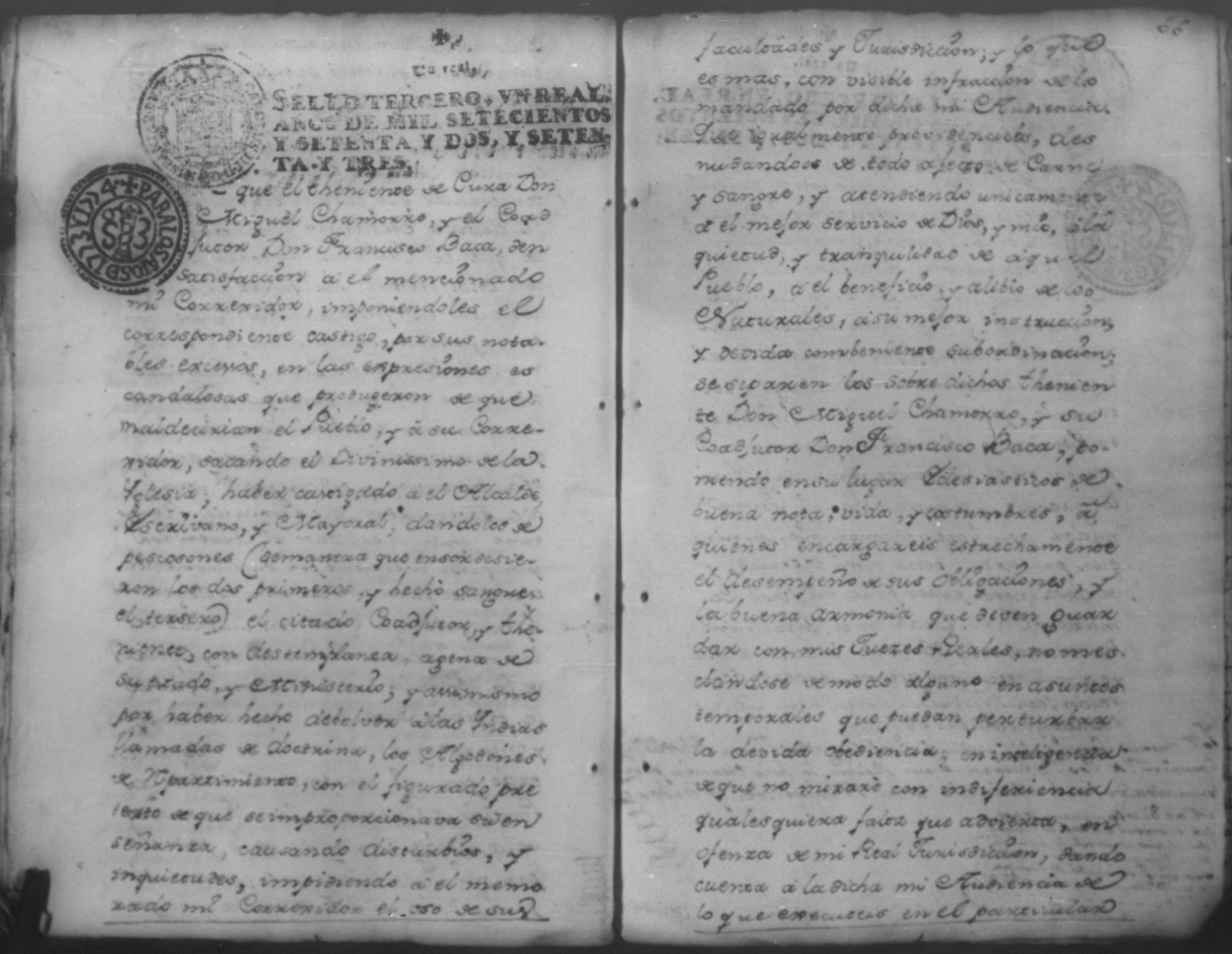Sumaria contra el Presbitero Don Miguel Chamarro y Don Francisco Baca, Nicaragua 1774