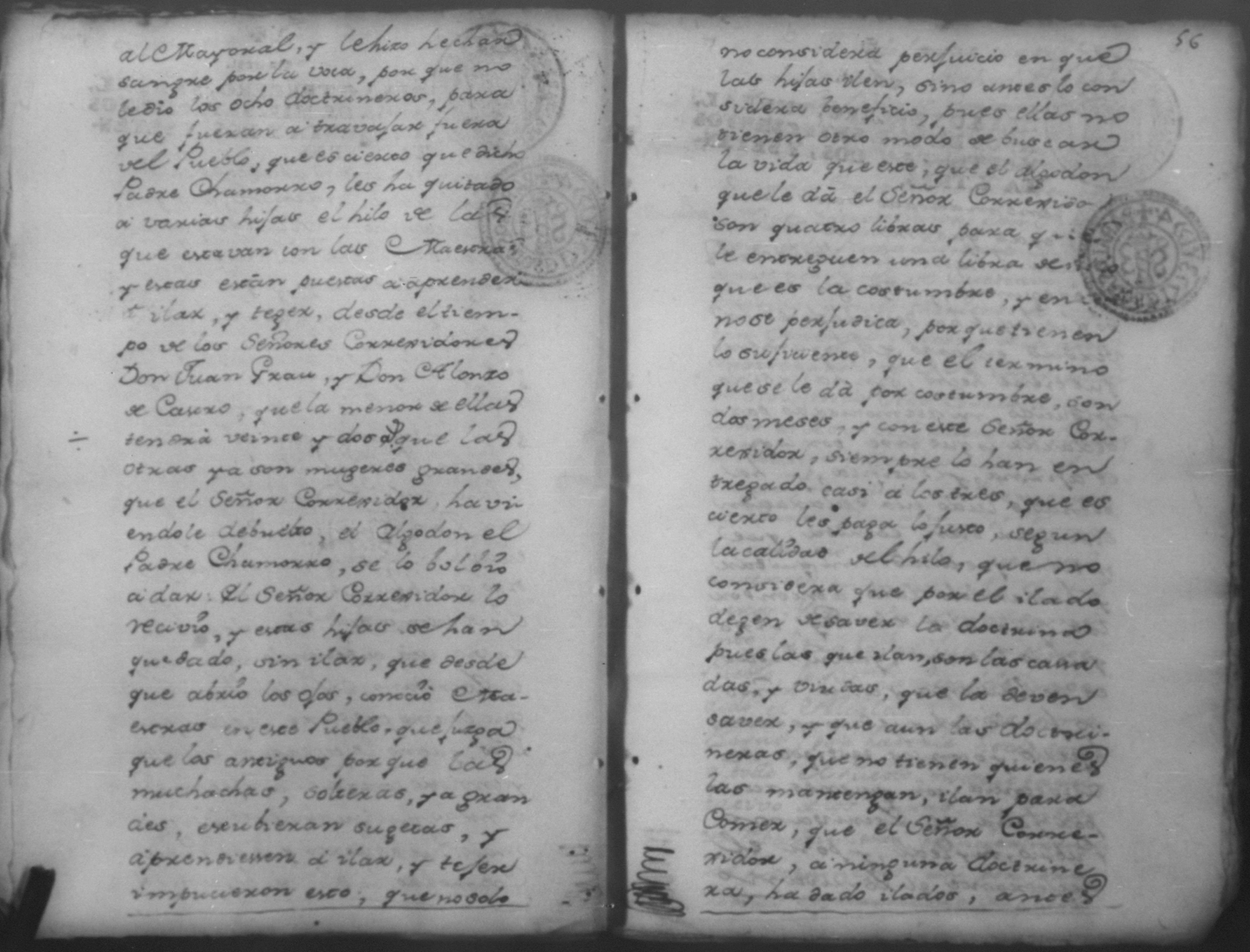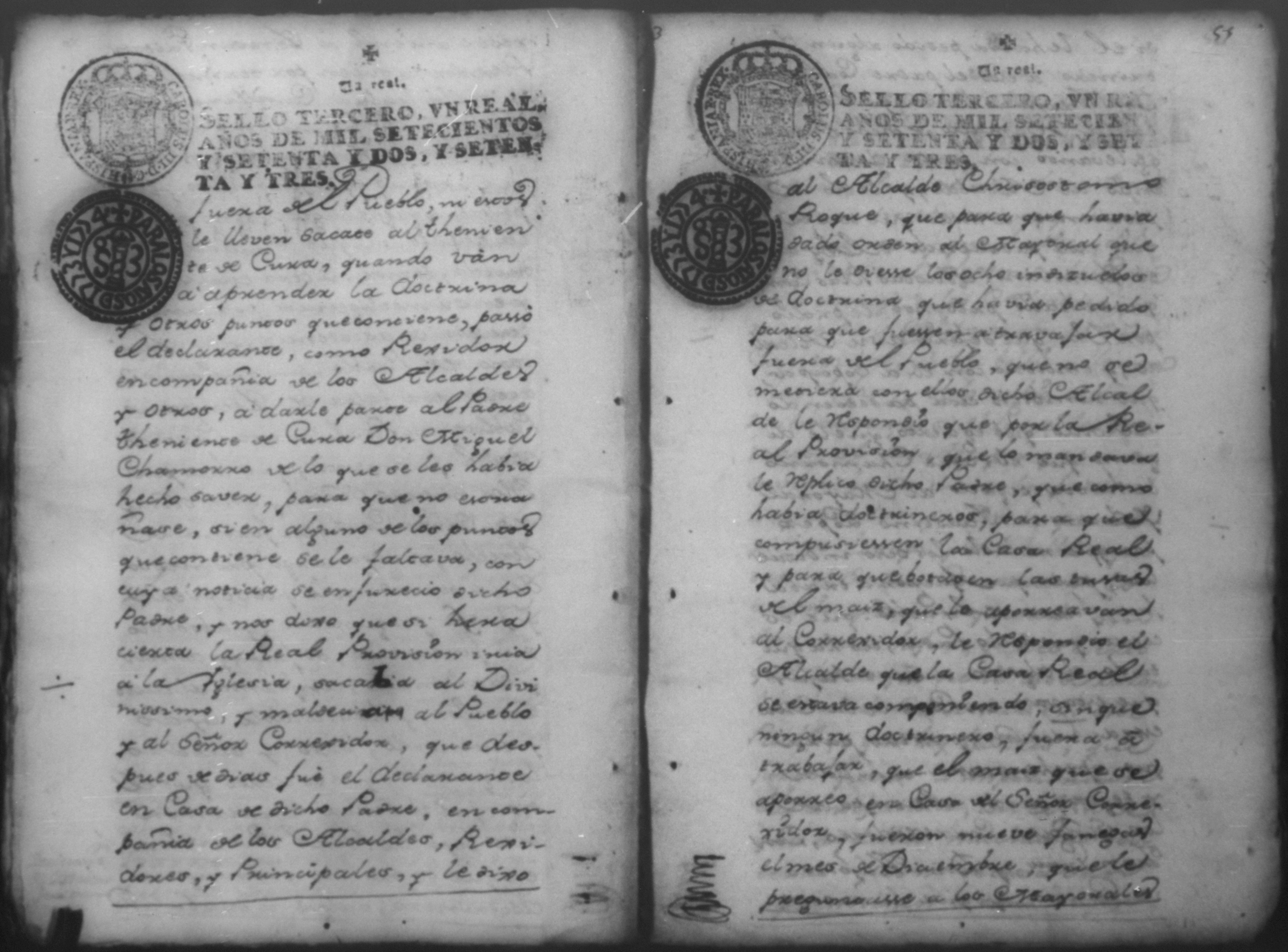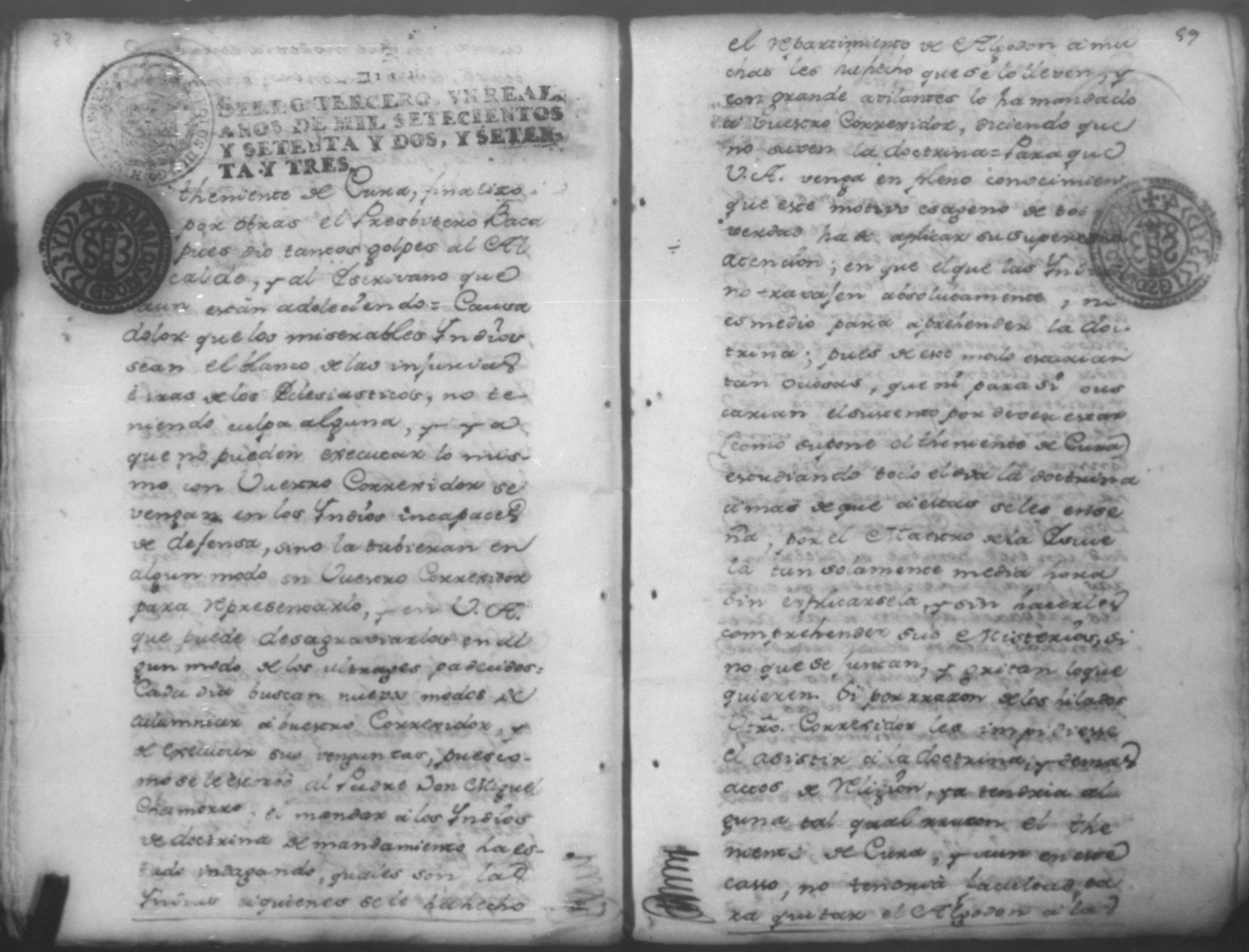 Temática: Sumaria seguia contra el Presbitero Don Miguel Chamorro para haberse dado de golpes aun mayoral de dotrina y contra su coadjutor Don Francisco Baca por haberle dado de golpes al Alcalde y [Alescai] ramo con otros puntos que contiene por haberse quedado el ilado dicho Padre Chamorro a a varias indios.