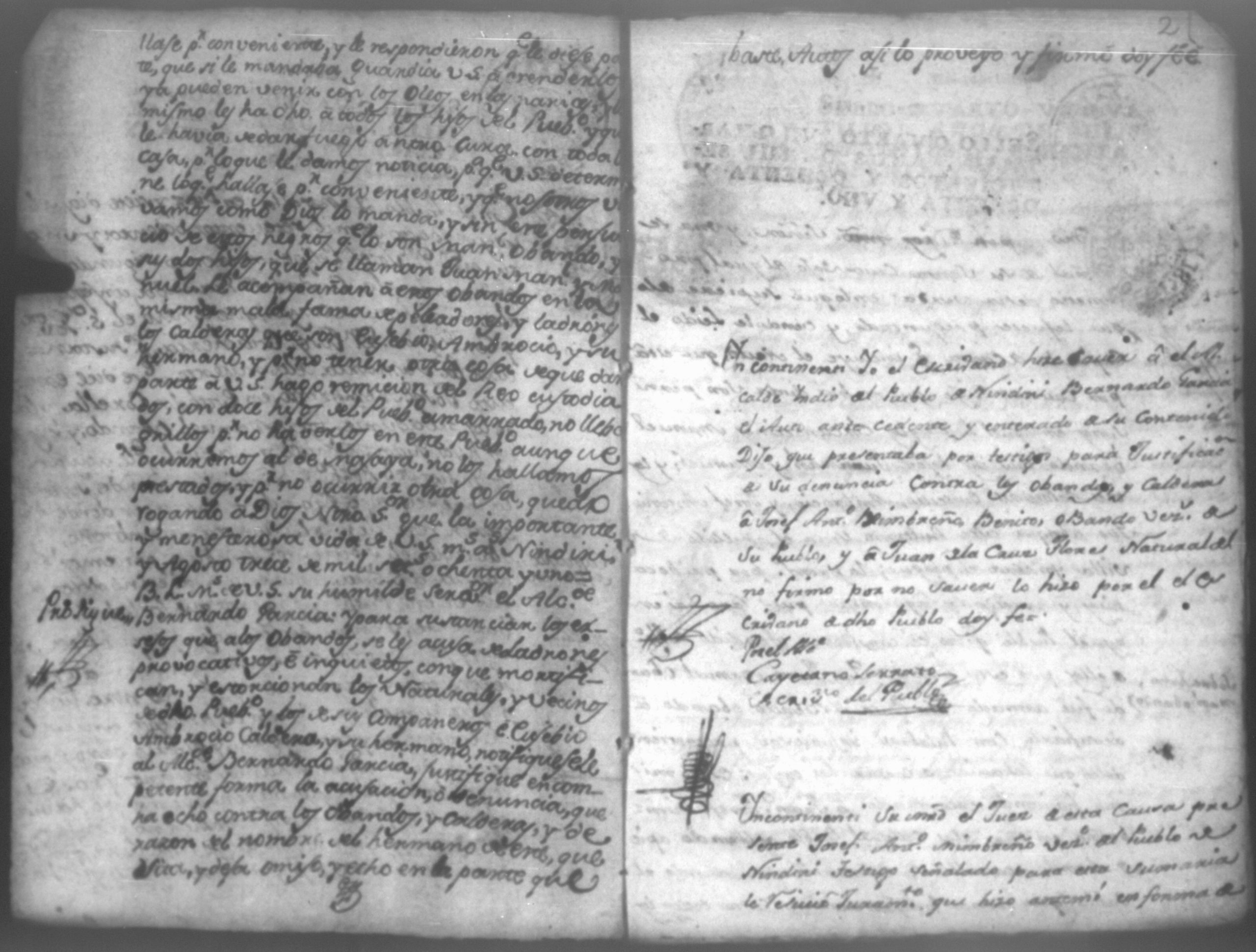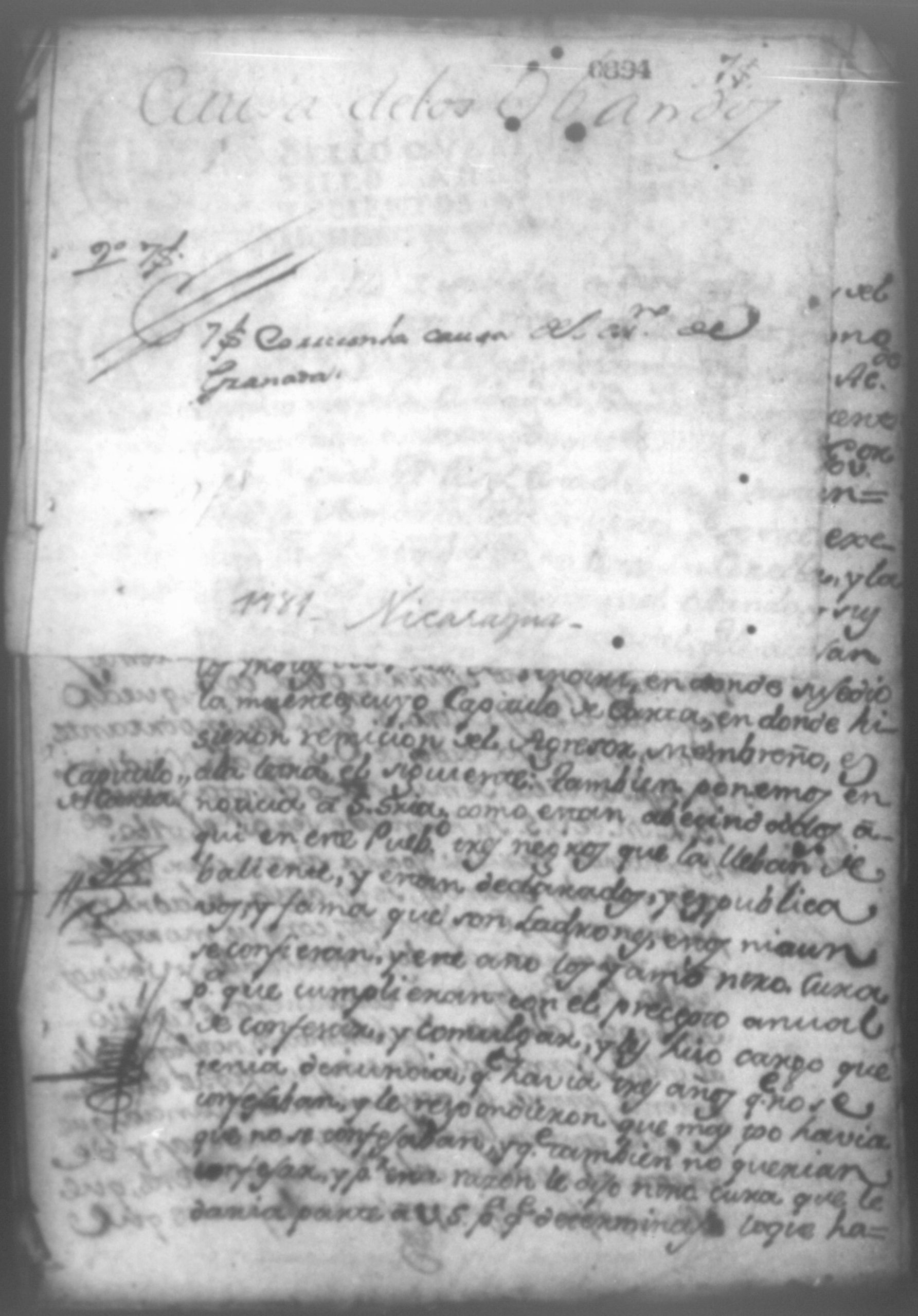 Temática: Masaya año de 1781. Sobre la causa que hizo el señor Gobernador y Comandante General Don Josef Estancheria por sustanciar la sumaria de la muerte que se dice executo Josef Mimbreño en Esteban Corella y el procedimiento de Manuel Obando sus dos hijos Juan Manuel y Manuel que le acusan los indios del pueblo de Nindiri en donde hicieron remicion del agresor Mimbreño