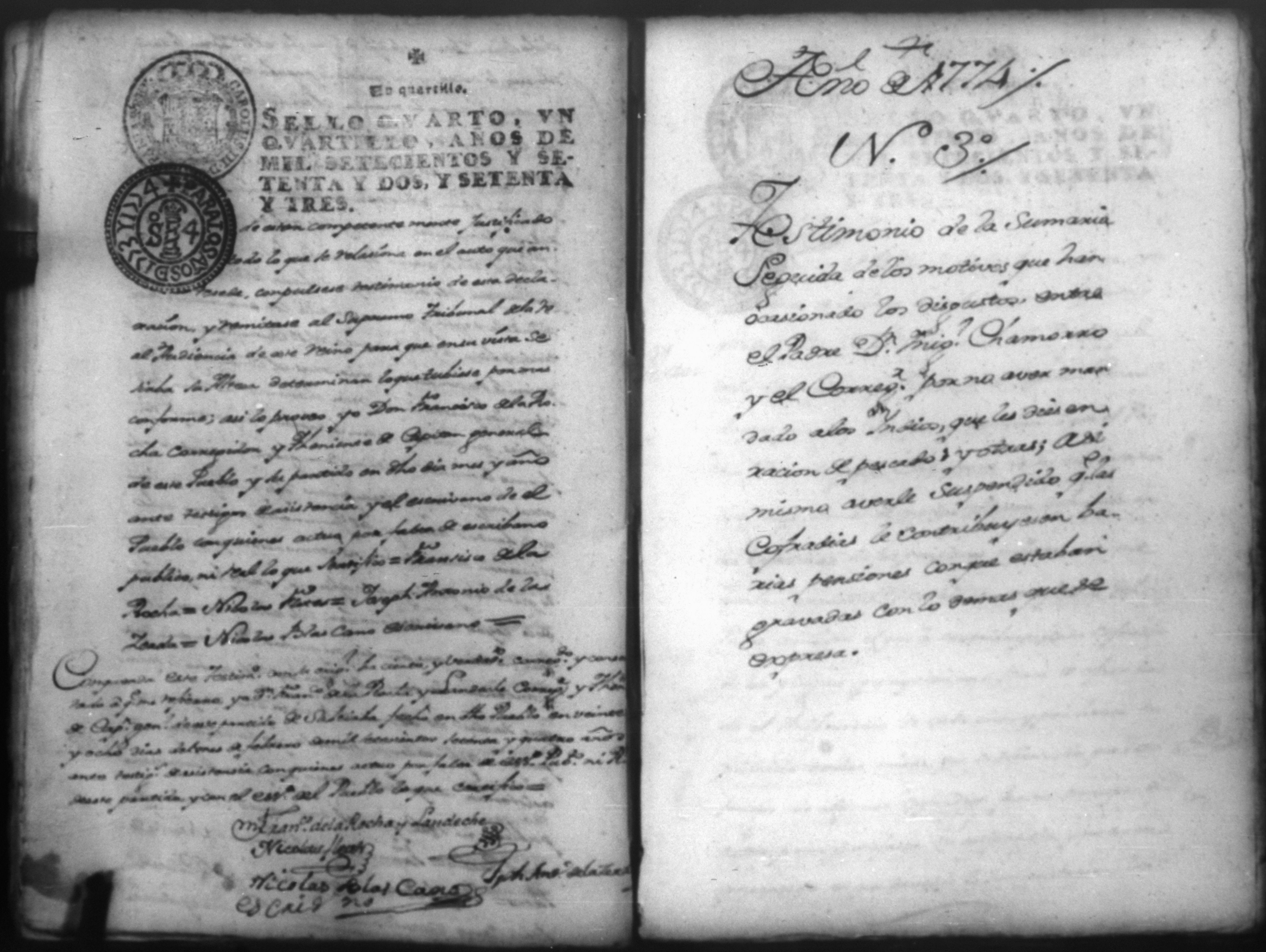 Temática: Audiencia, León, 1774. Testimonio de diligencias que remitió con consulta el Corregidor y Teniente de Capitan General don Francisco de la Rocha y Landeche del Partido o publo de Sutiaba practicadas en razón de las persuaciones que hizó el Presbitero don Miguel Chamorro a los indios de aquel pueblo por que no obedecieron a su corregidor. Oficio de Peñalver.