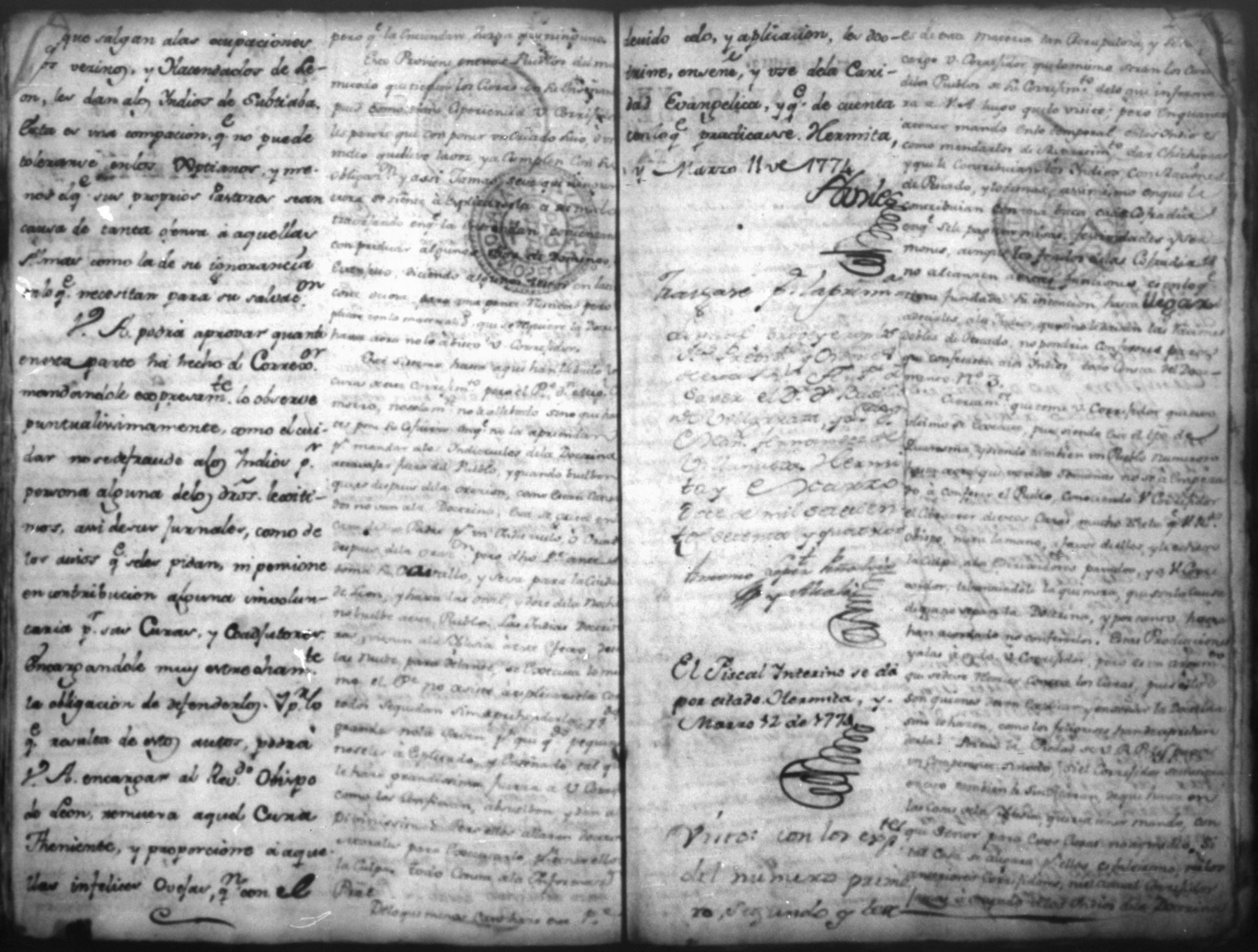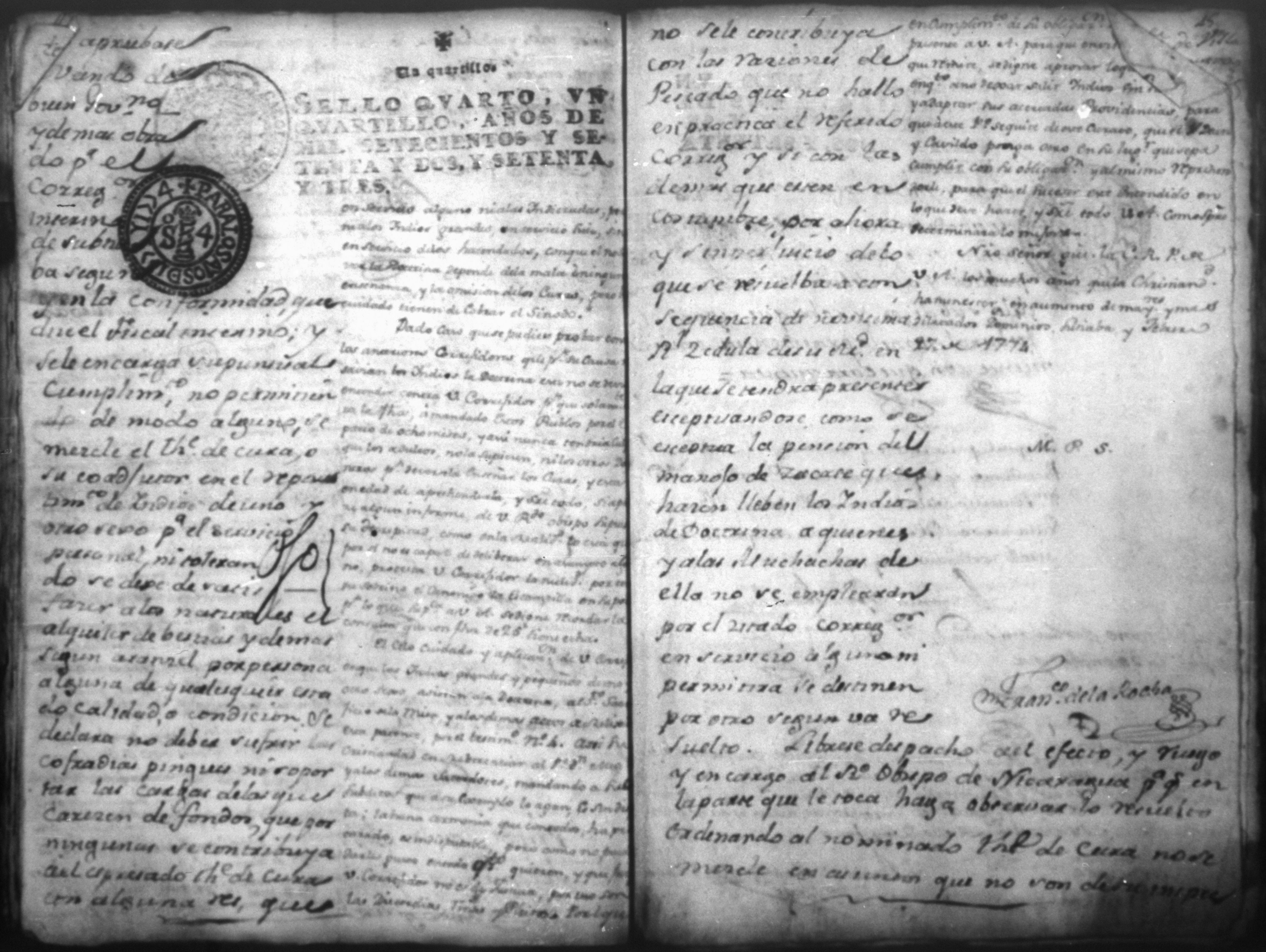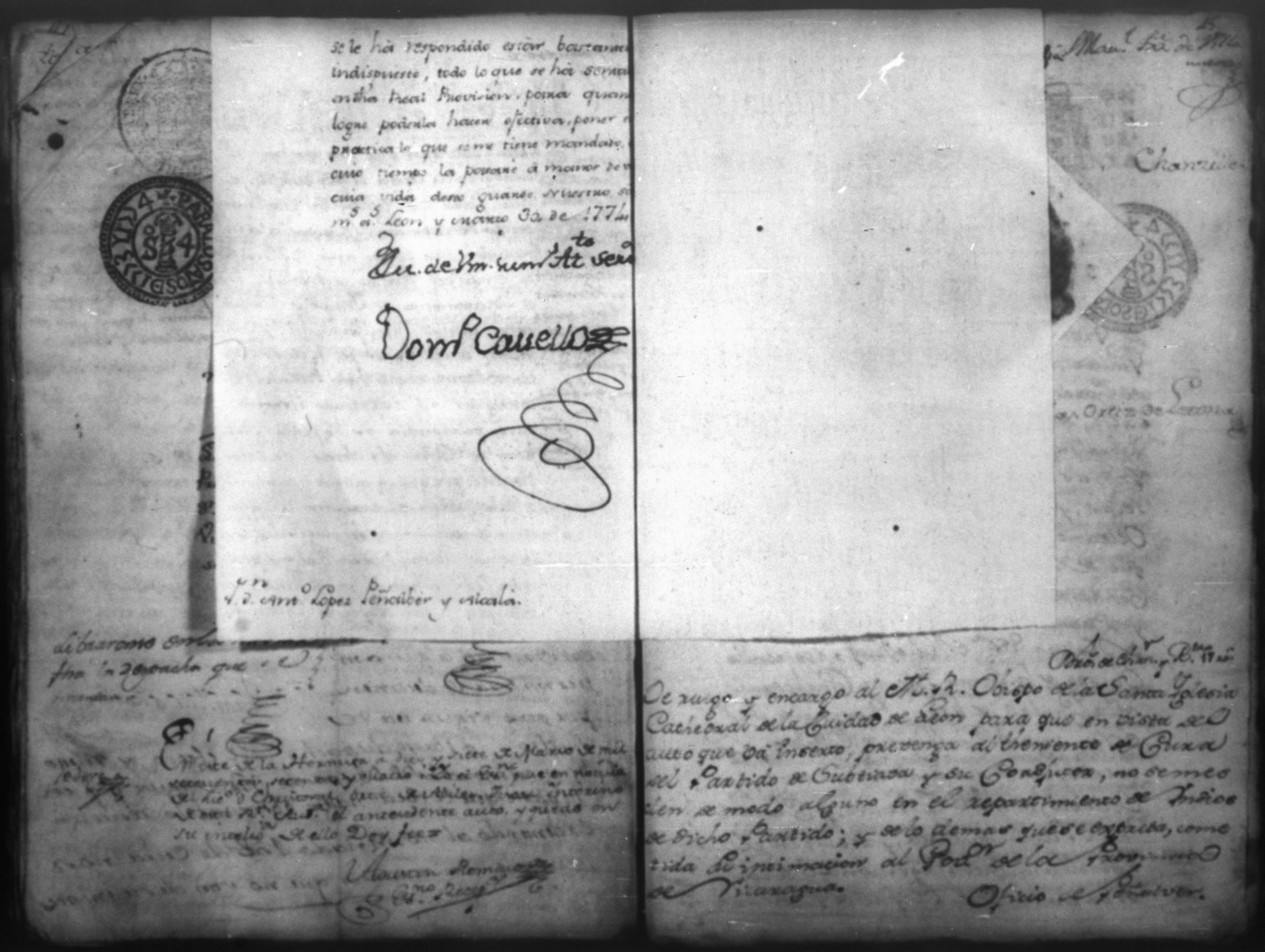 Temática: Audiencia, León, 1774. Testimonio de diligencias que remitió con consulta el Corregidor y Teniente de Capitan General don Francisco de la Rocha y Landeche del Partido o publo de Sutiaba practicadas en razón de las persuaciones que hizó el Presbitero don Miguel Chamorro a los indios de aquel pueblo por que no obedecieron a su corregidor. Oficio de Peñalver.