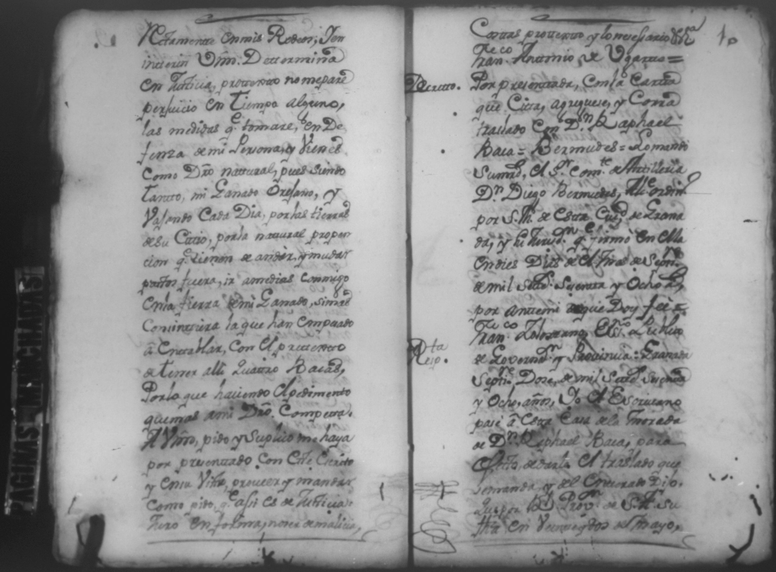 Temática: Año de 1769. Testimonio de Auttos seguidos a pedimiento de Don Francisco Antonio de Ygartte contra Don Raphael Dias Cabeza de Baca ambos vecinos de la Ciudad de Granada.