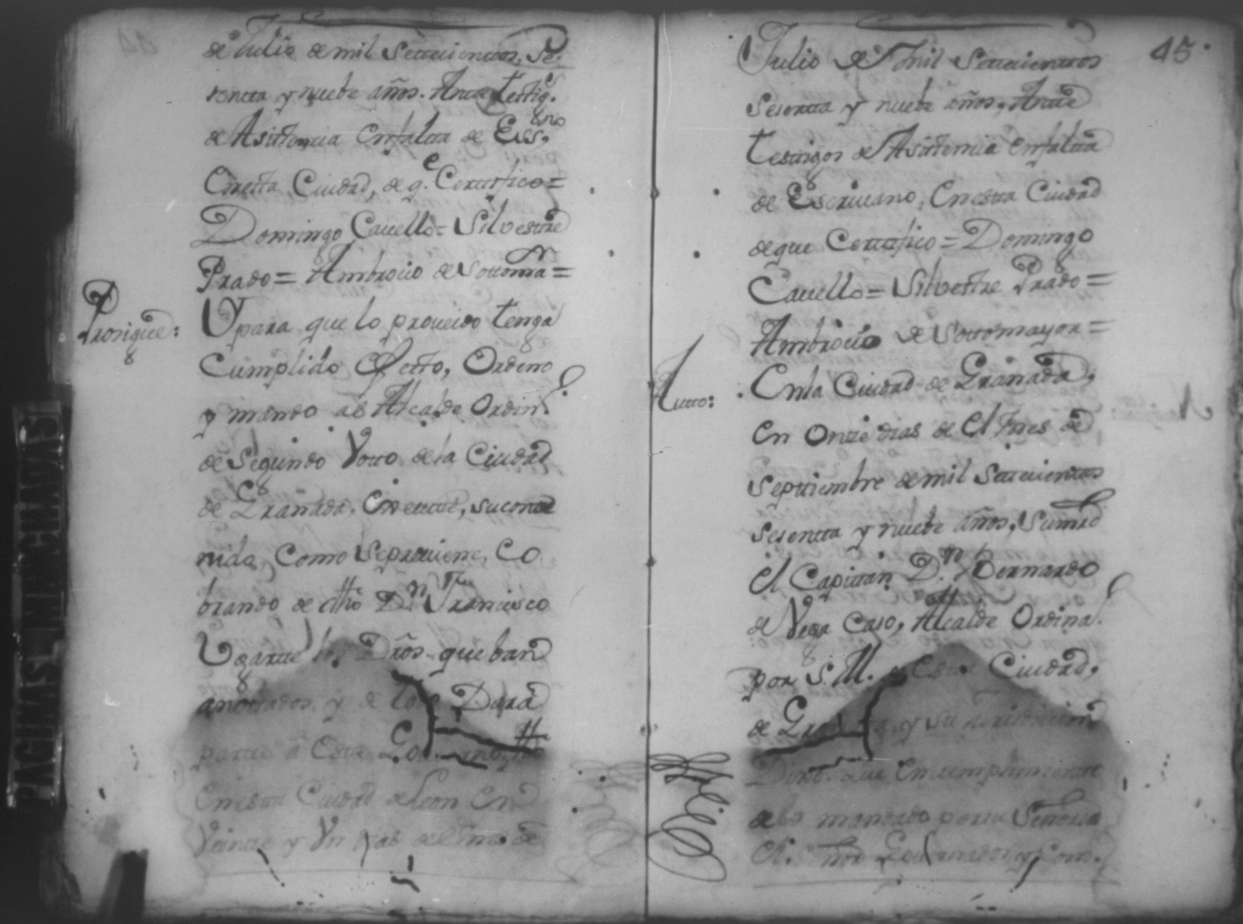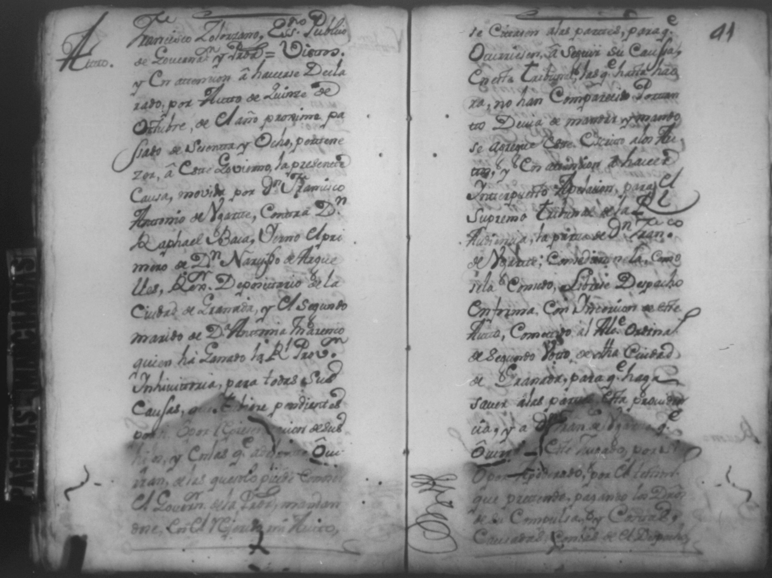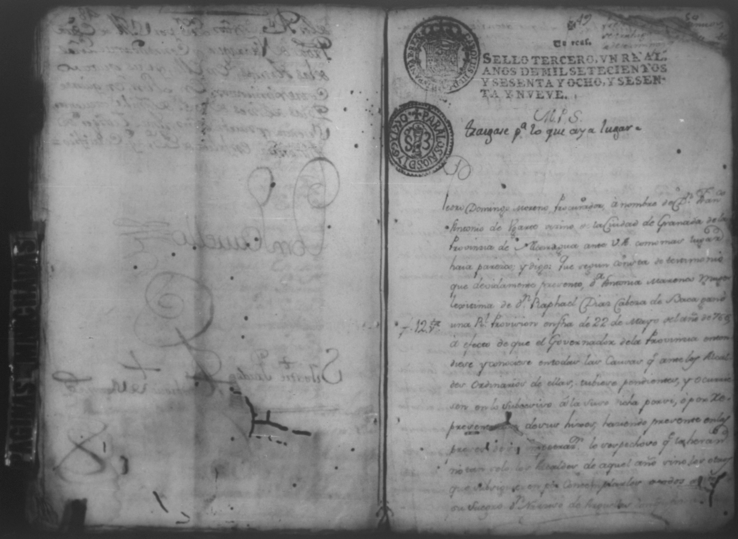 Temática: Año de 1769. Testimonio de Auttos seguidos a pedimiento de Don Francisco Antonio de Ygartte contra Don Raphael Dias Cabeza de Baca ambos vecinos de la Ciudad de Granada.