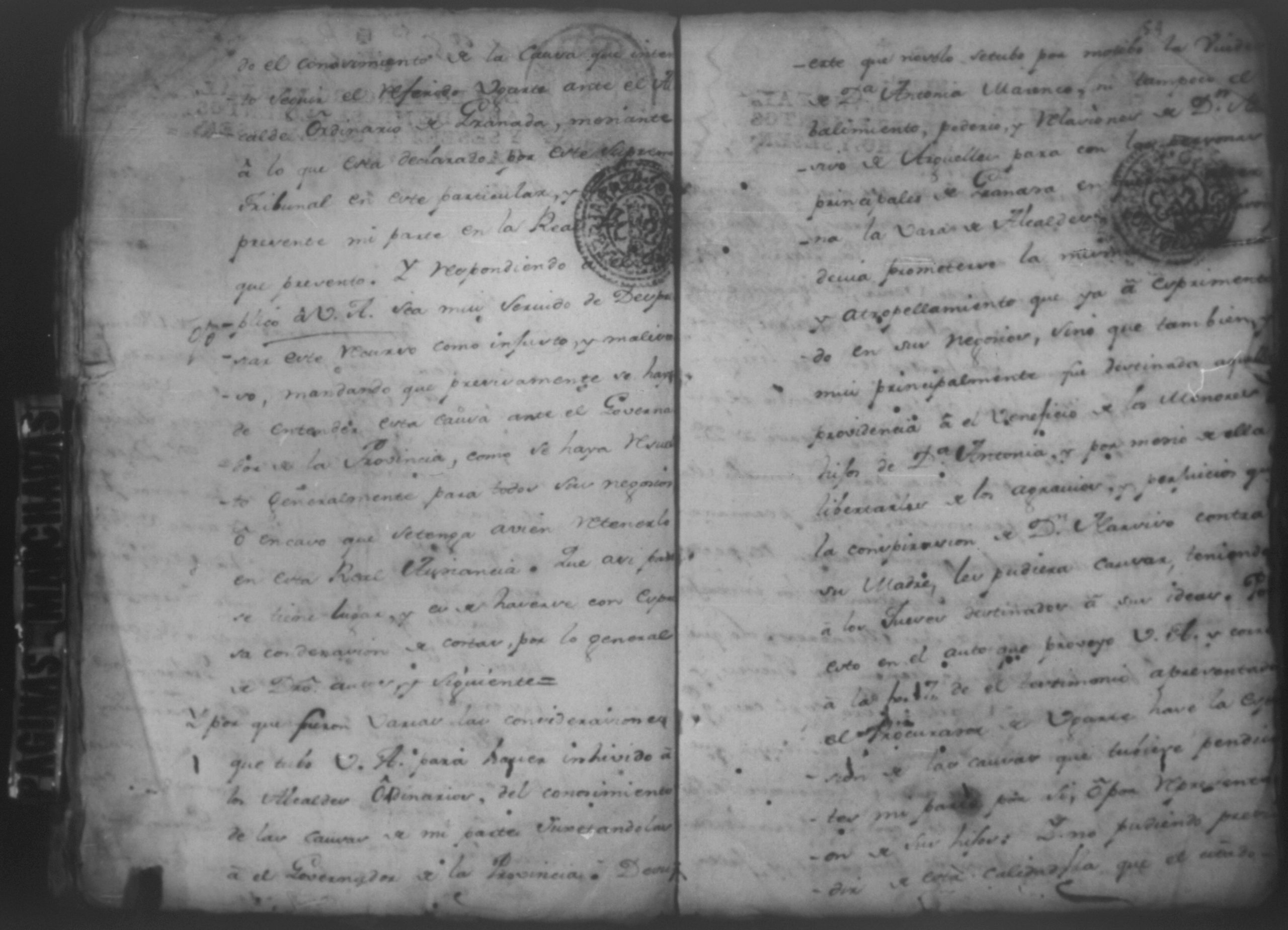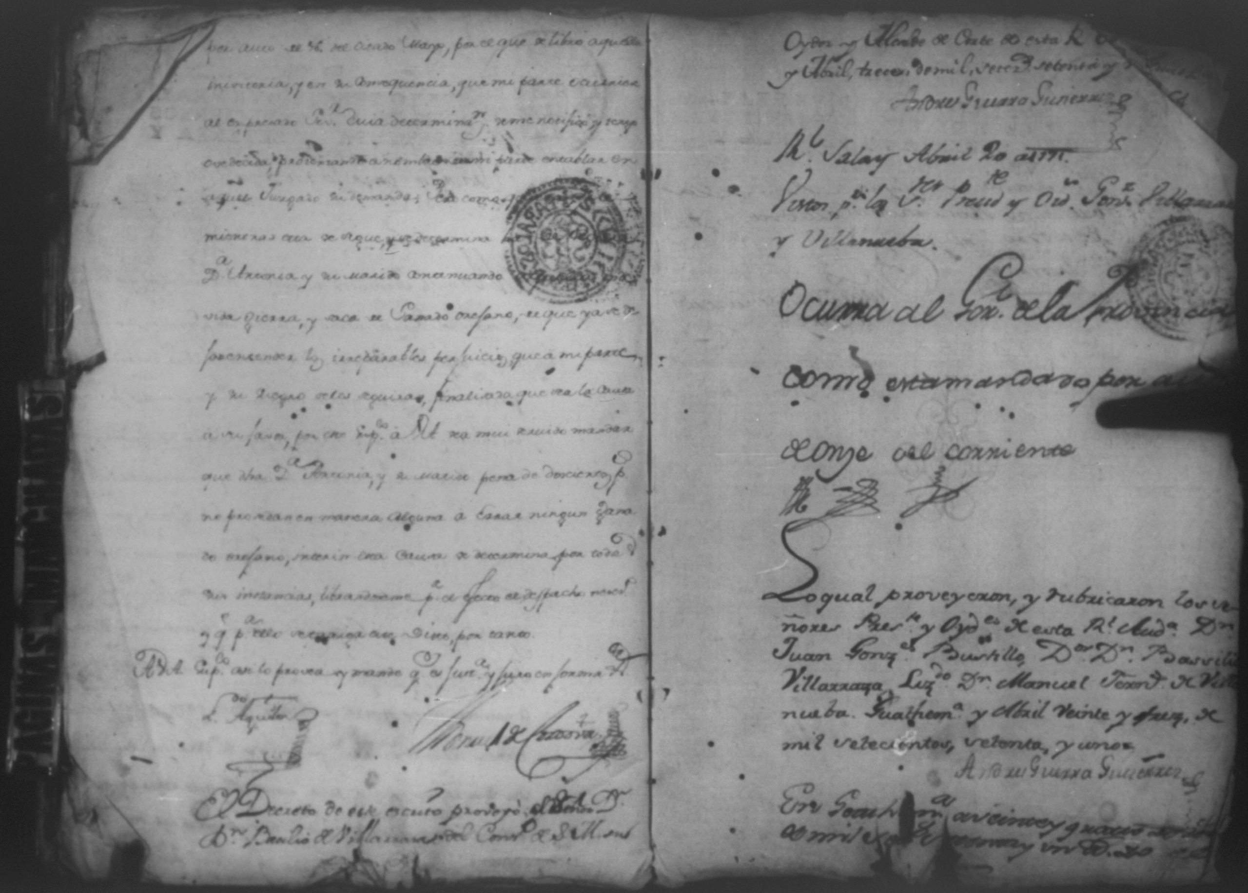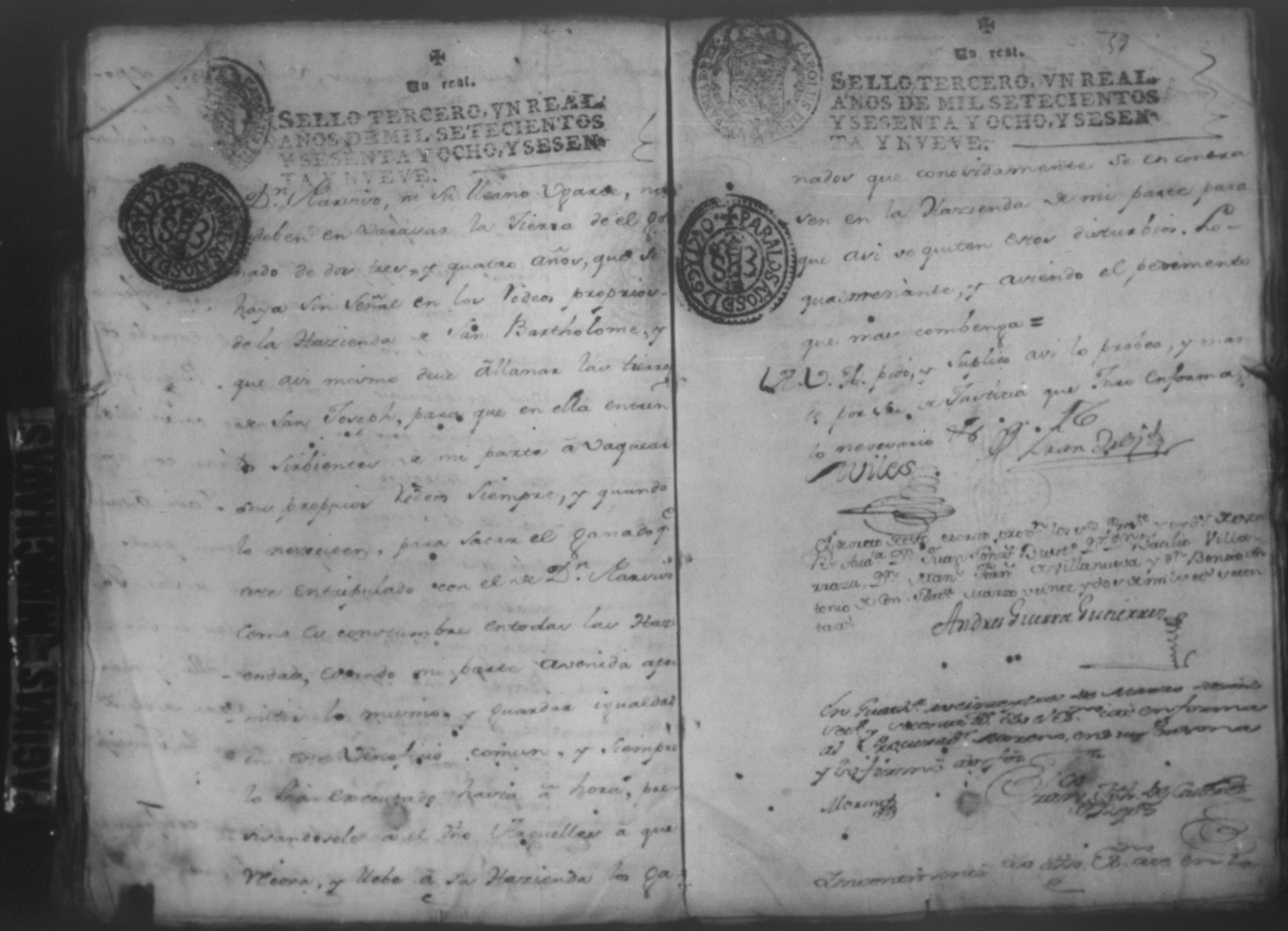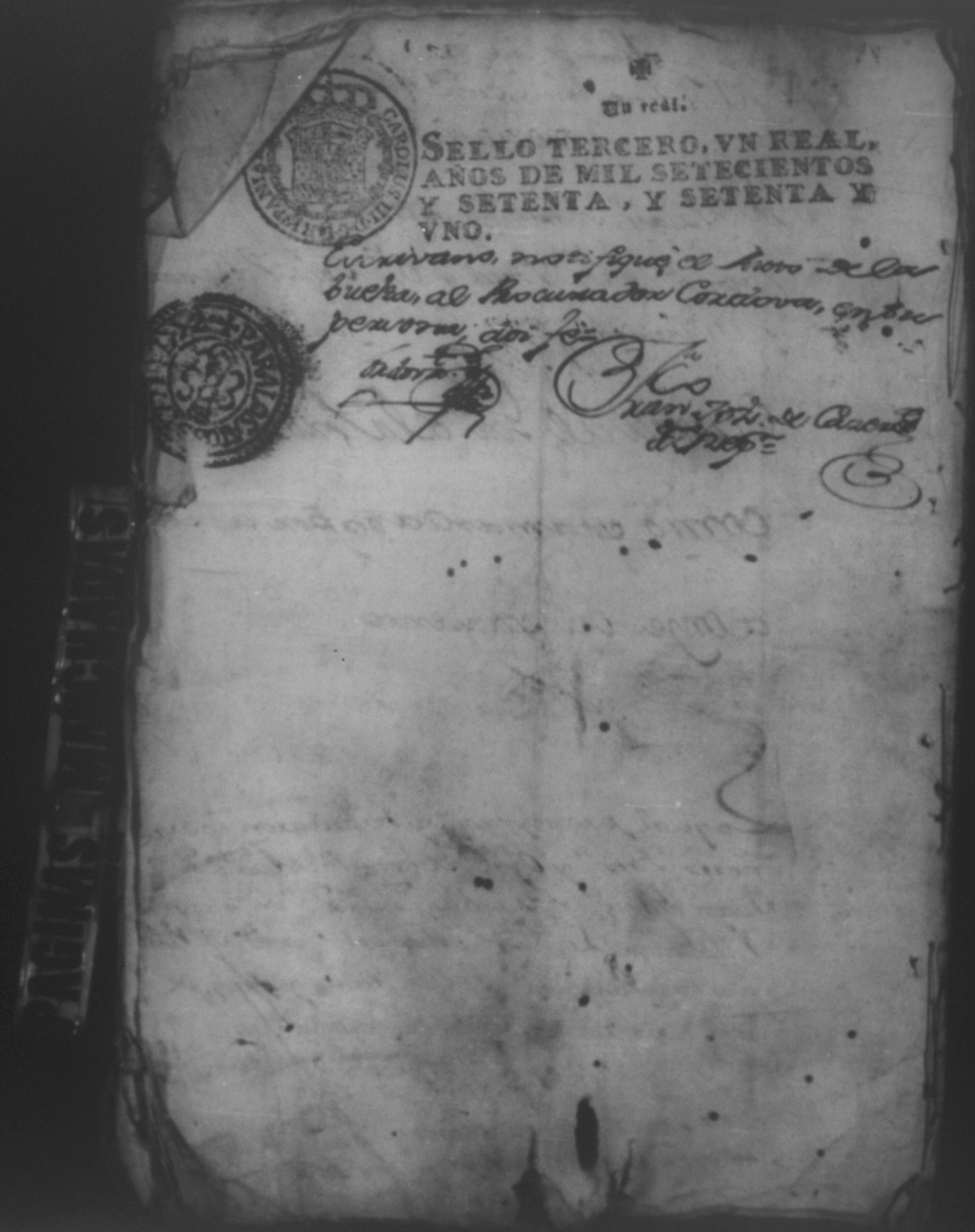 Temática: Año de 1769. Testimonio de Auttos seguidos a pedimiento de Don Francisco Antonio de Ygartte contra Don Raphael Dias Cabeza de Baca ambos vecinos de la Ciudad de Granada.