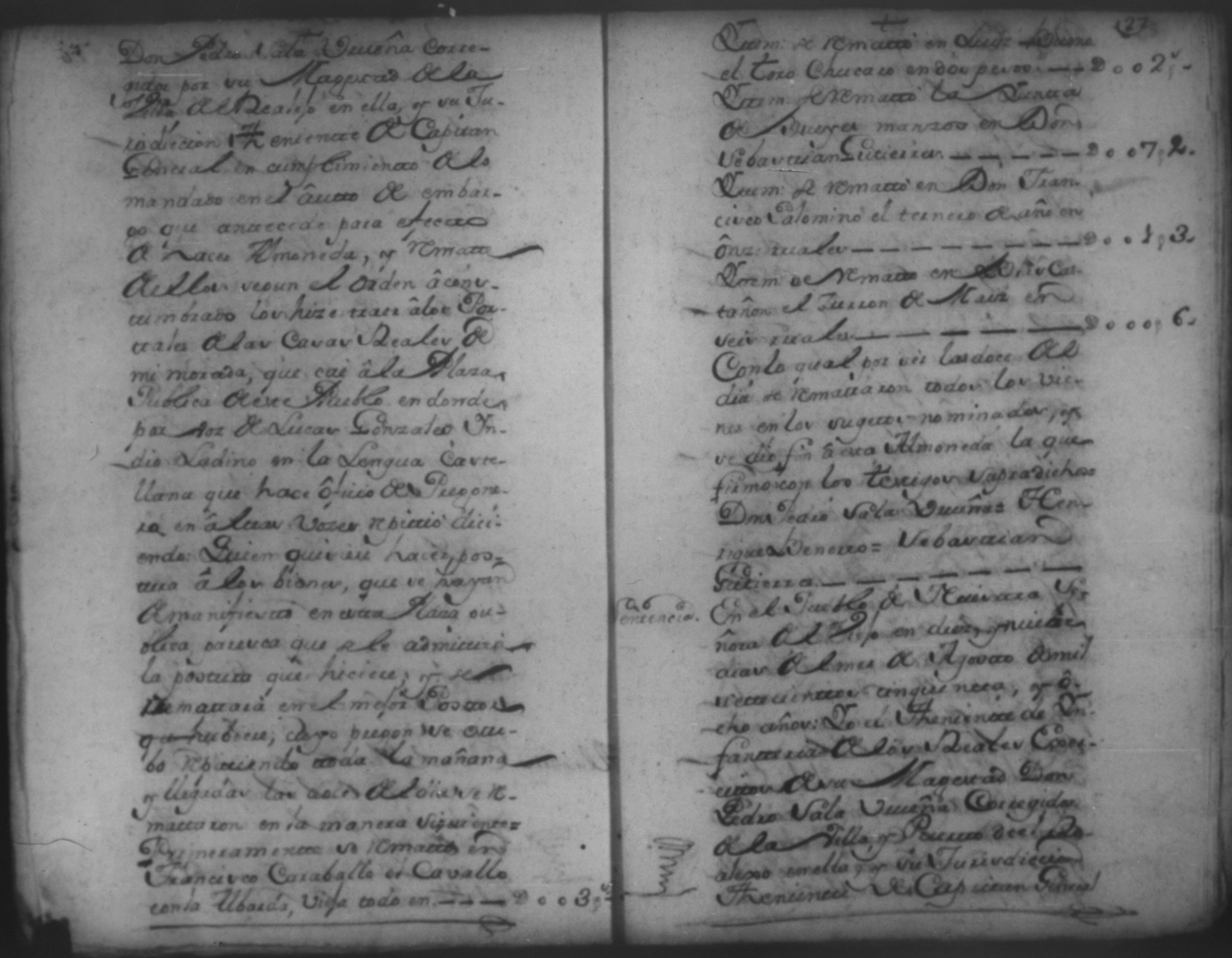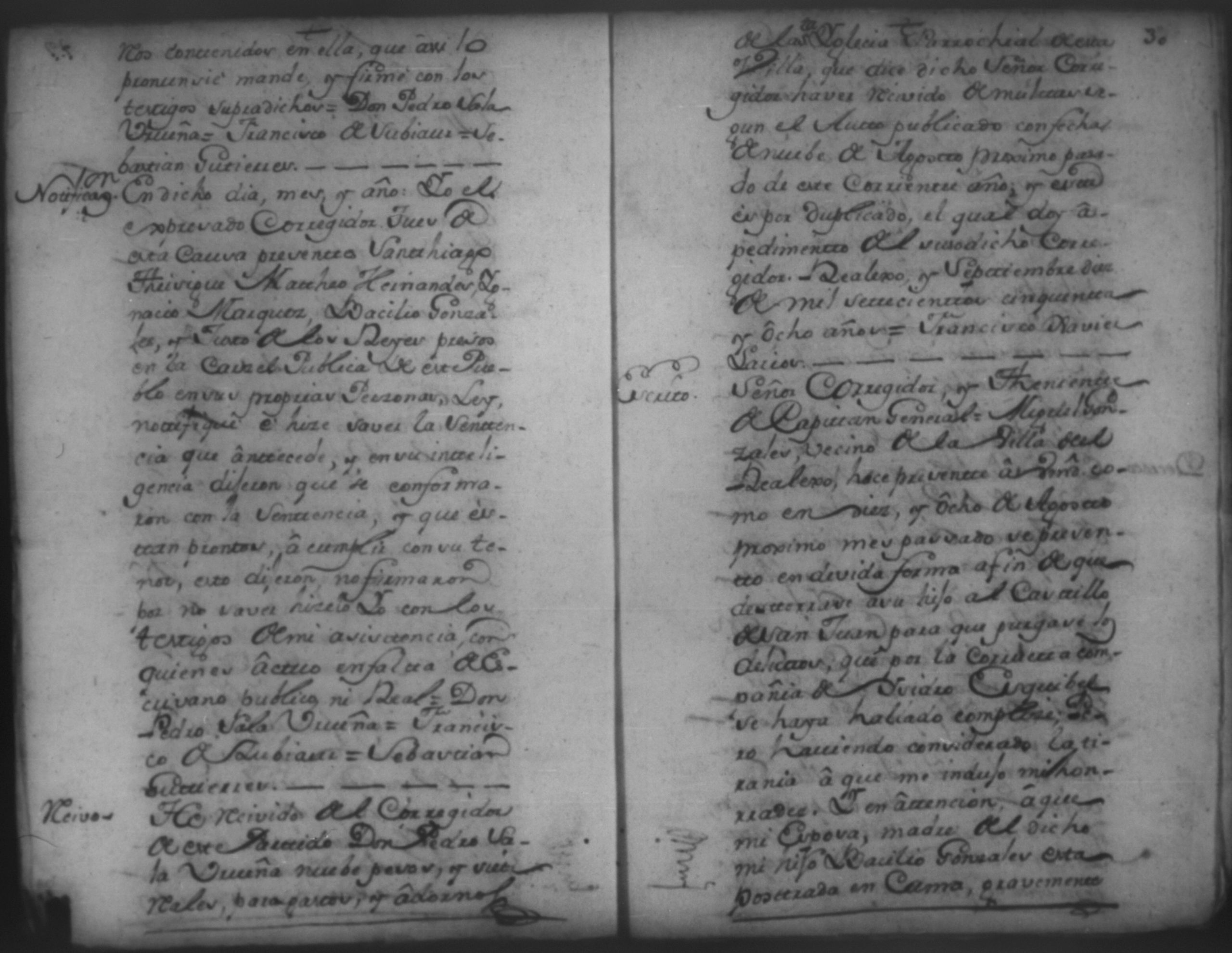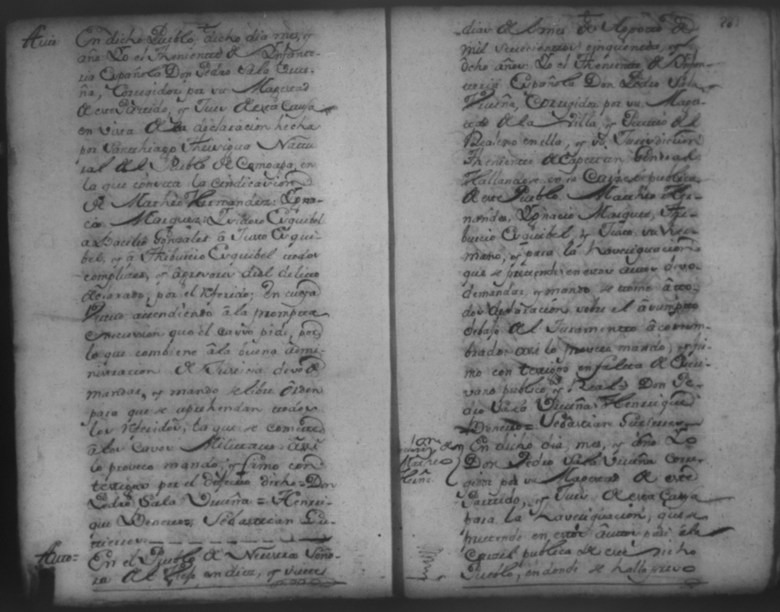 Temática: Año de 1759. Testimonio de Varios papeles y Cartas de la Causa Criminal seguida contra Santhiago [Tesiquia] , Ignacio Marquez y otros, por ladrones quatreros por el corregidor del Realejo Don Pedro Sala Urrueña.