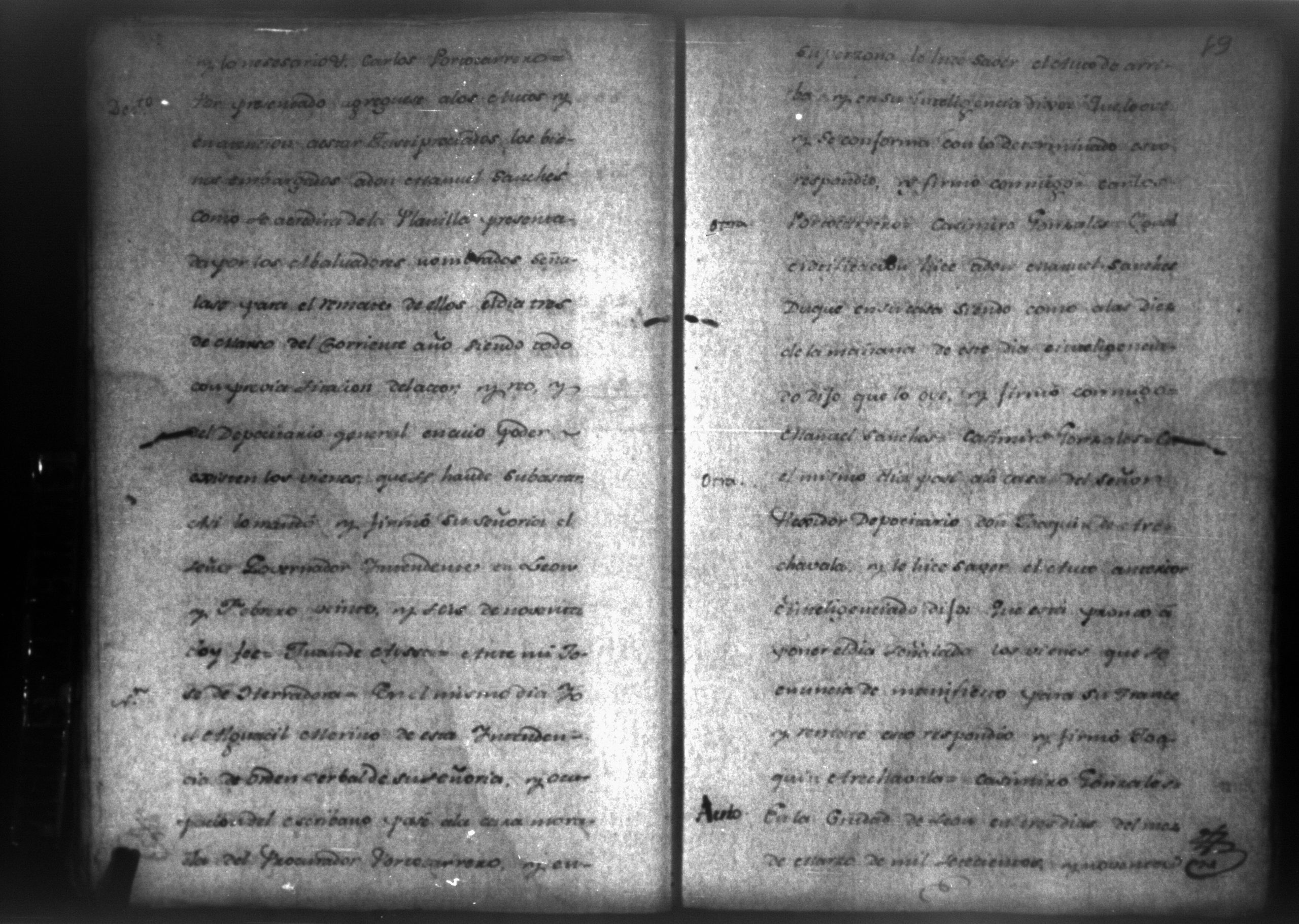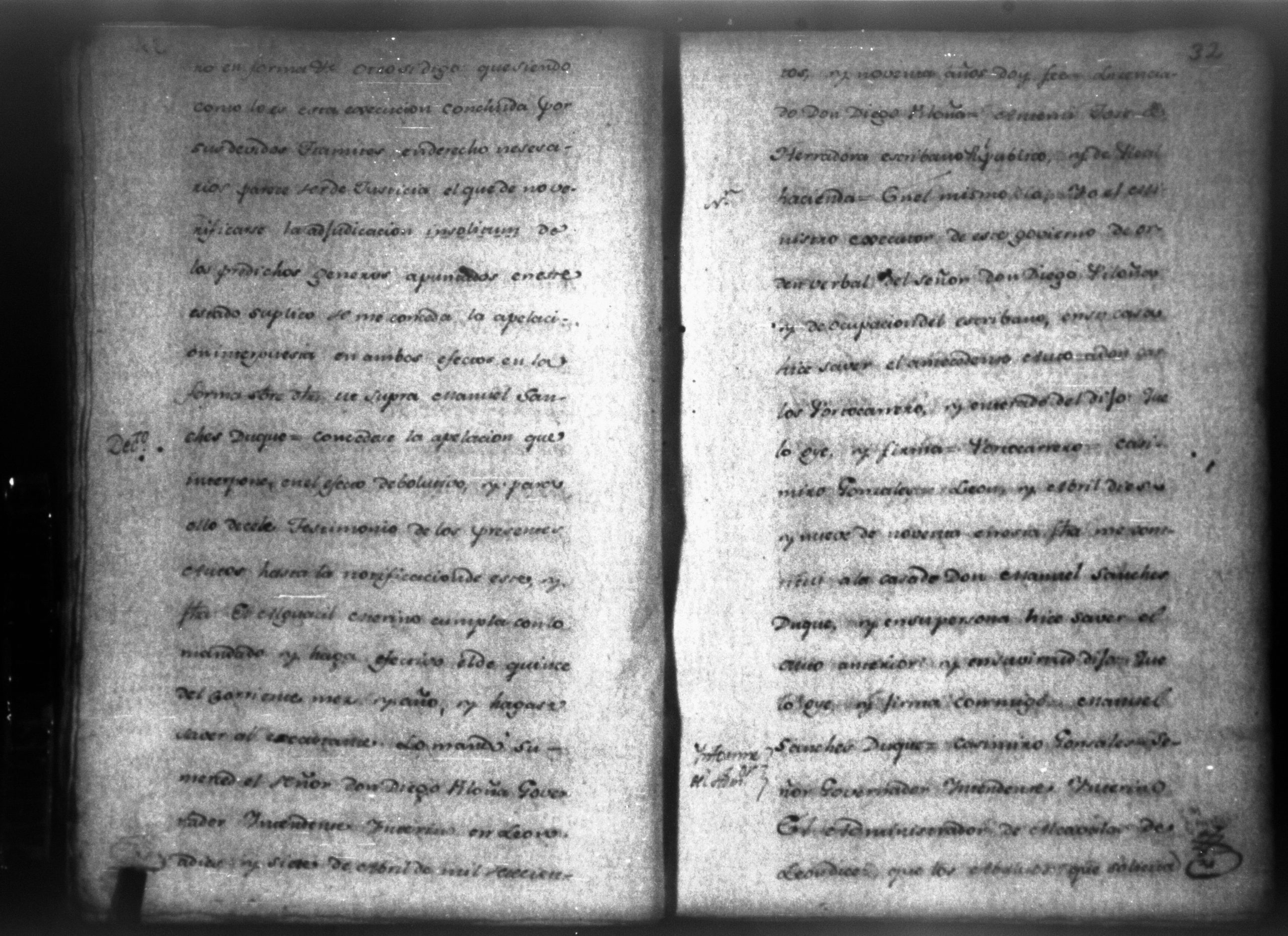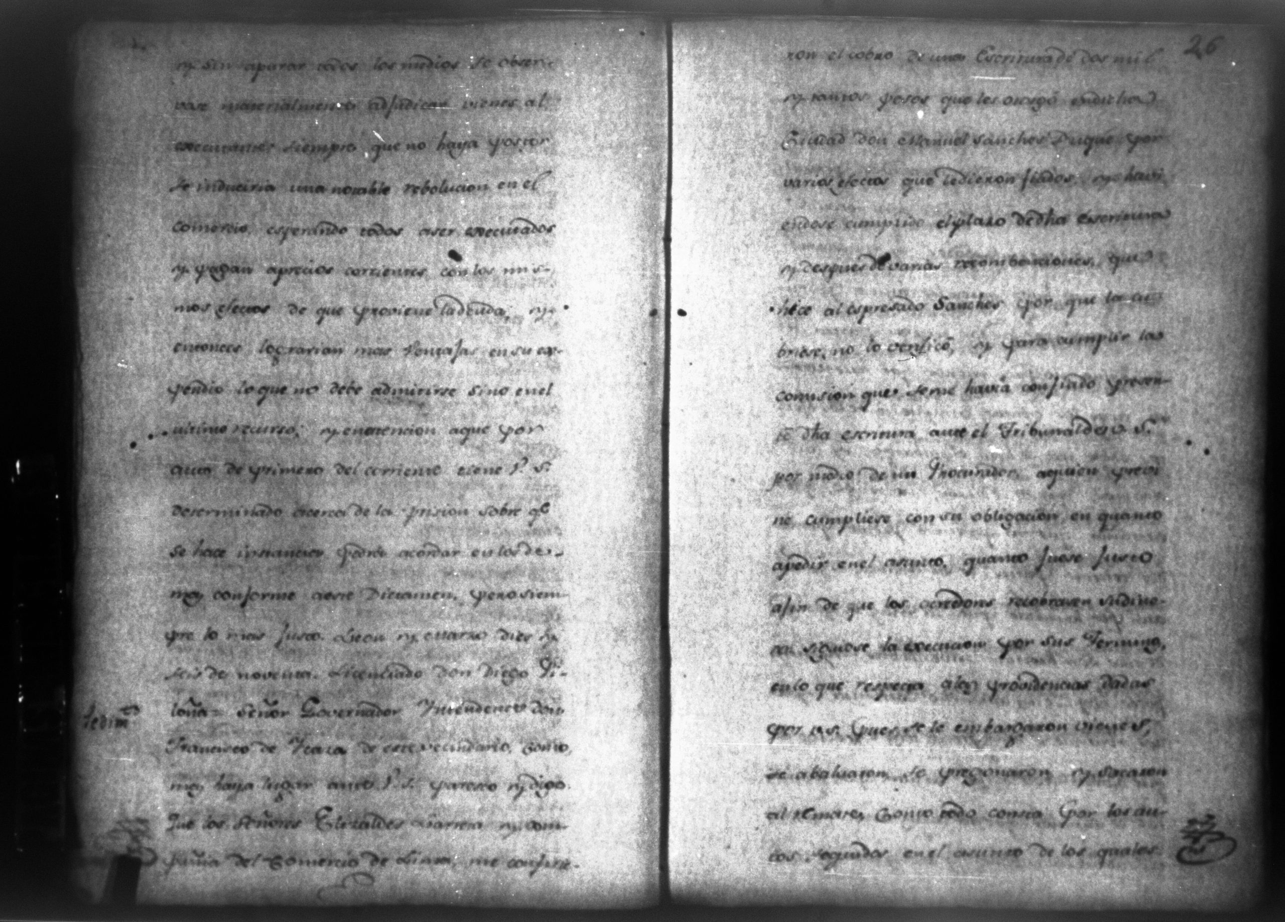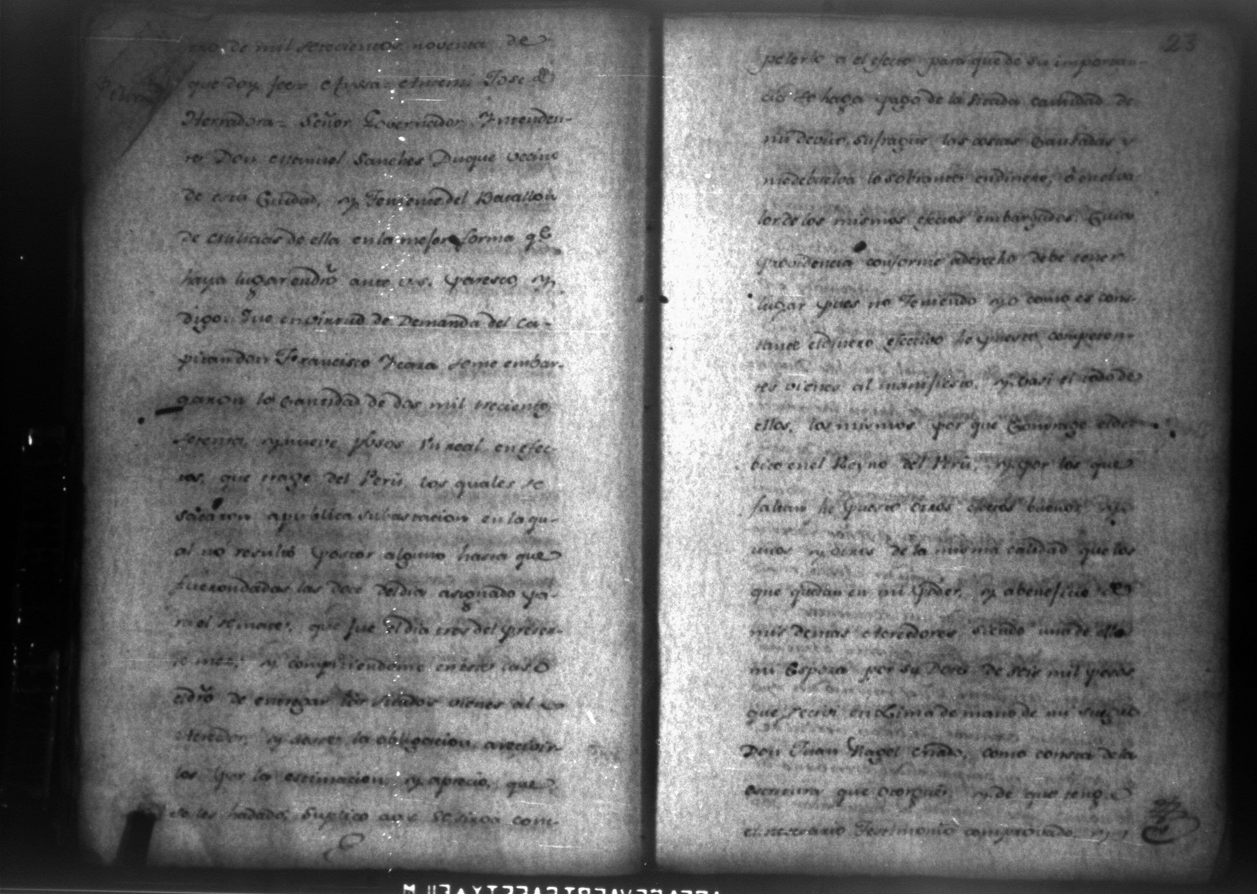 Temática: León, 1790. Testimonio de los autos de execucion seguidas por don Francisco Ycaza contra don Manuel Sanches por cantidad de pesos. " [...] Decreto de lo mandado. Pase de Herradora: Don Manuel Sanches Duque dentro de tercero dia, y pague la cantidad de dos mil pesos que se haya deviendo a don Francisco Ycaza [...]" Firma Carlos Portocarrerro, gobernador intendente de León. (Extracto folio 4, imagen 7).