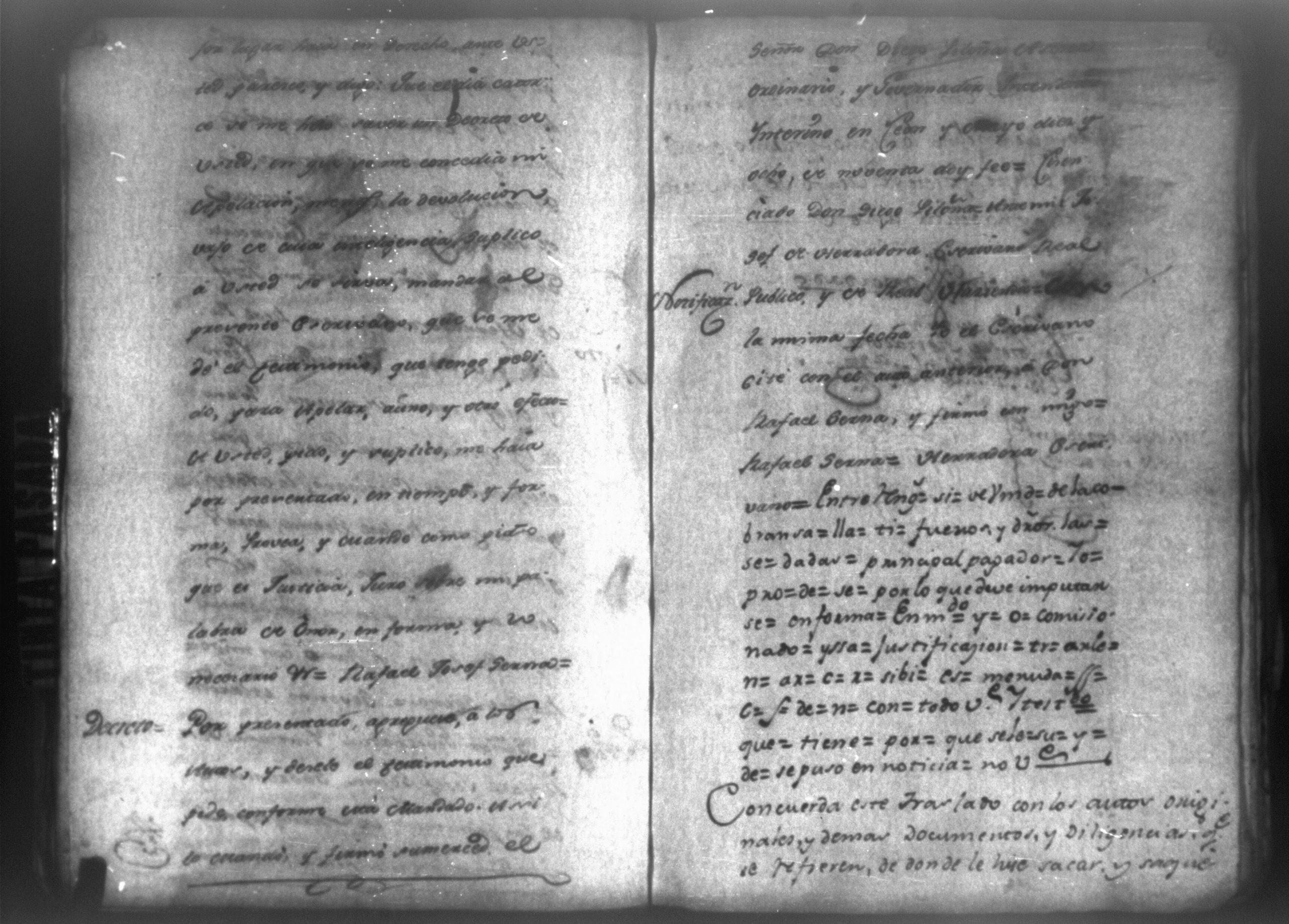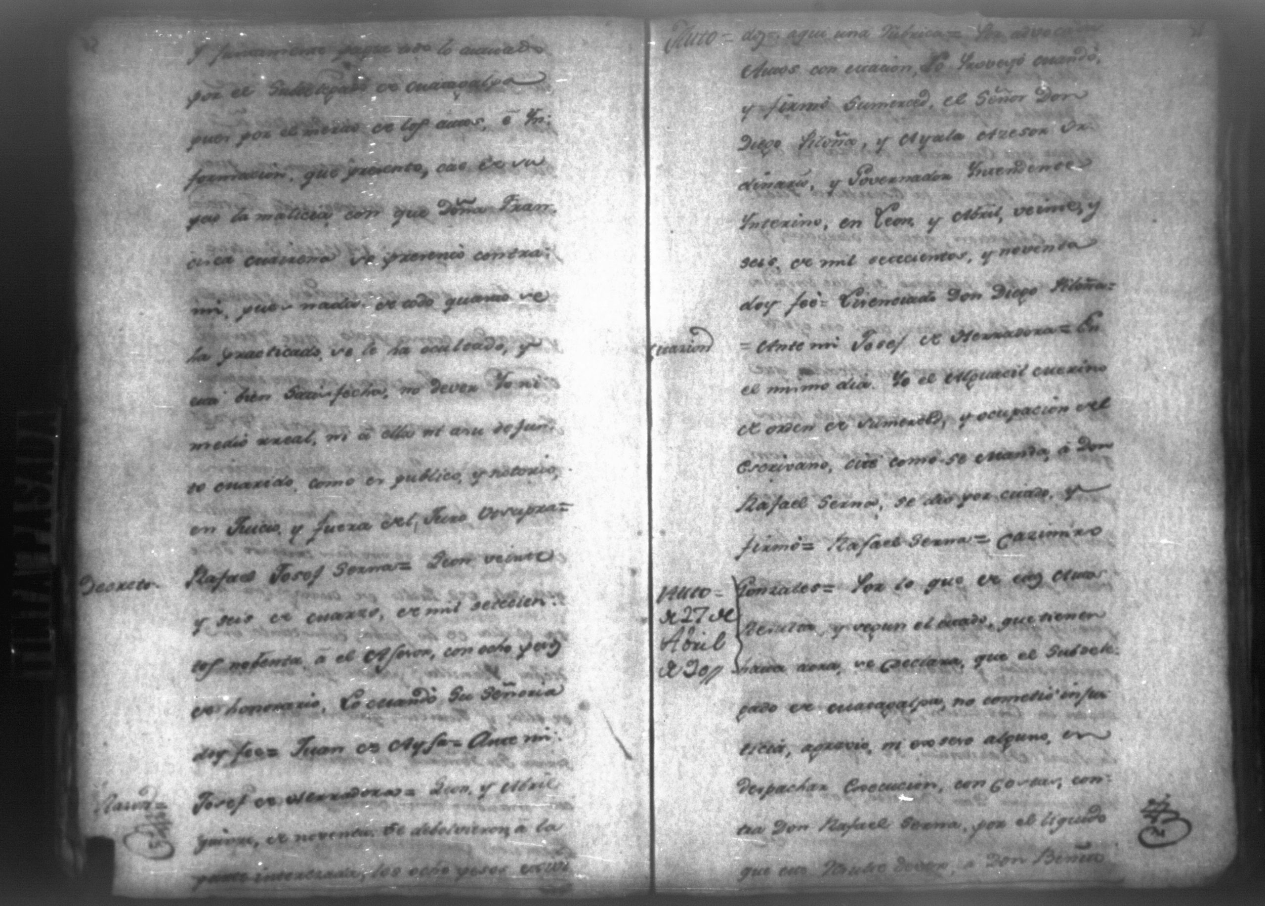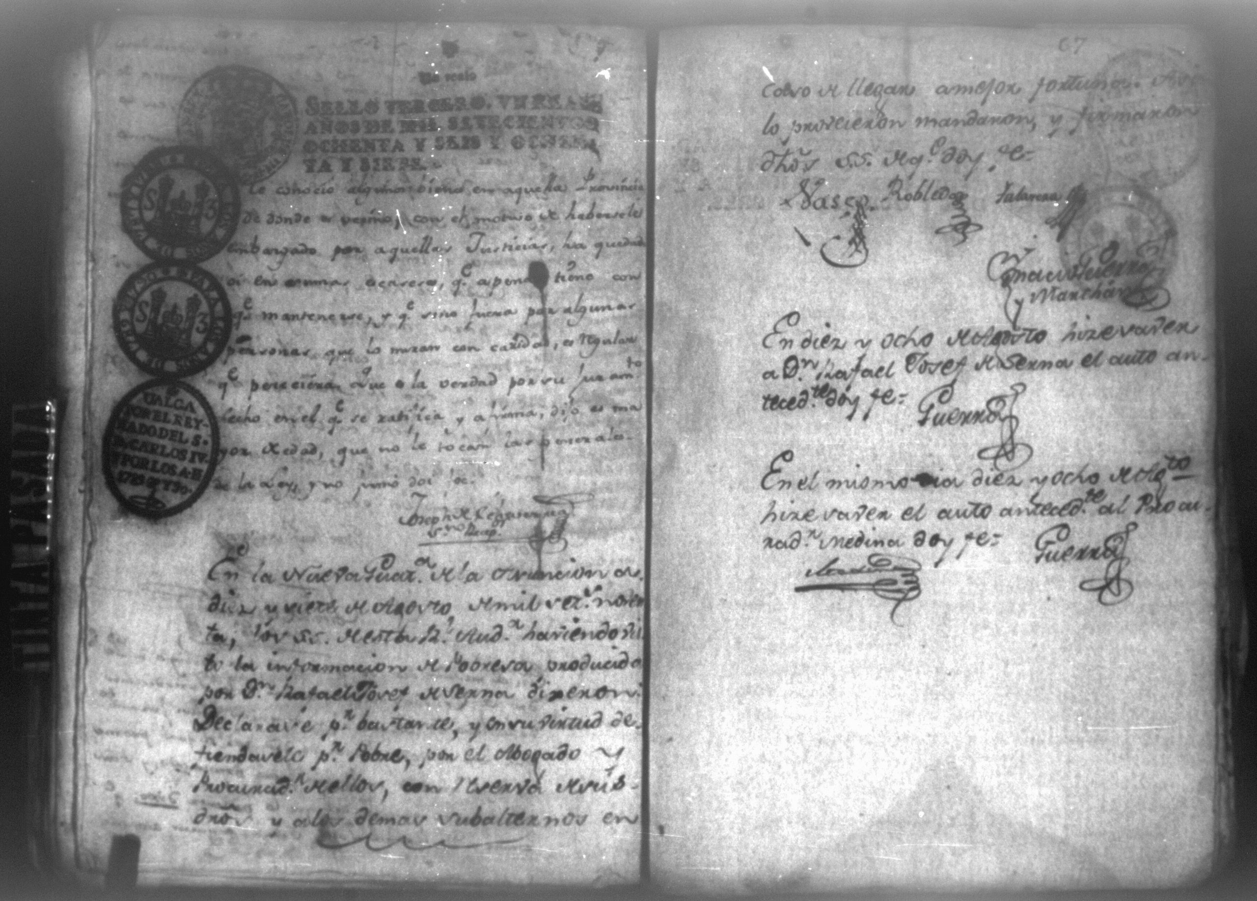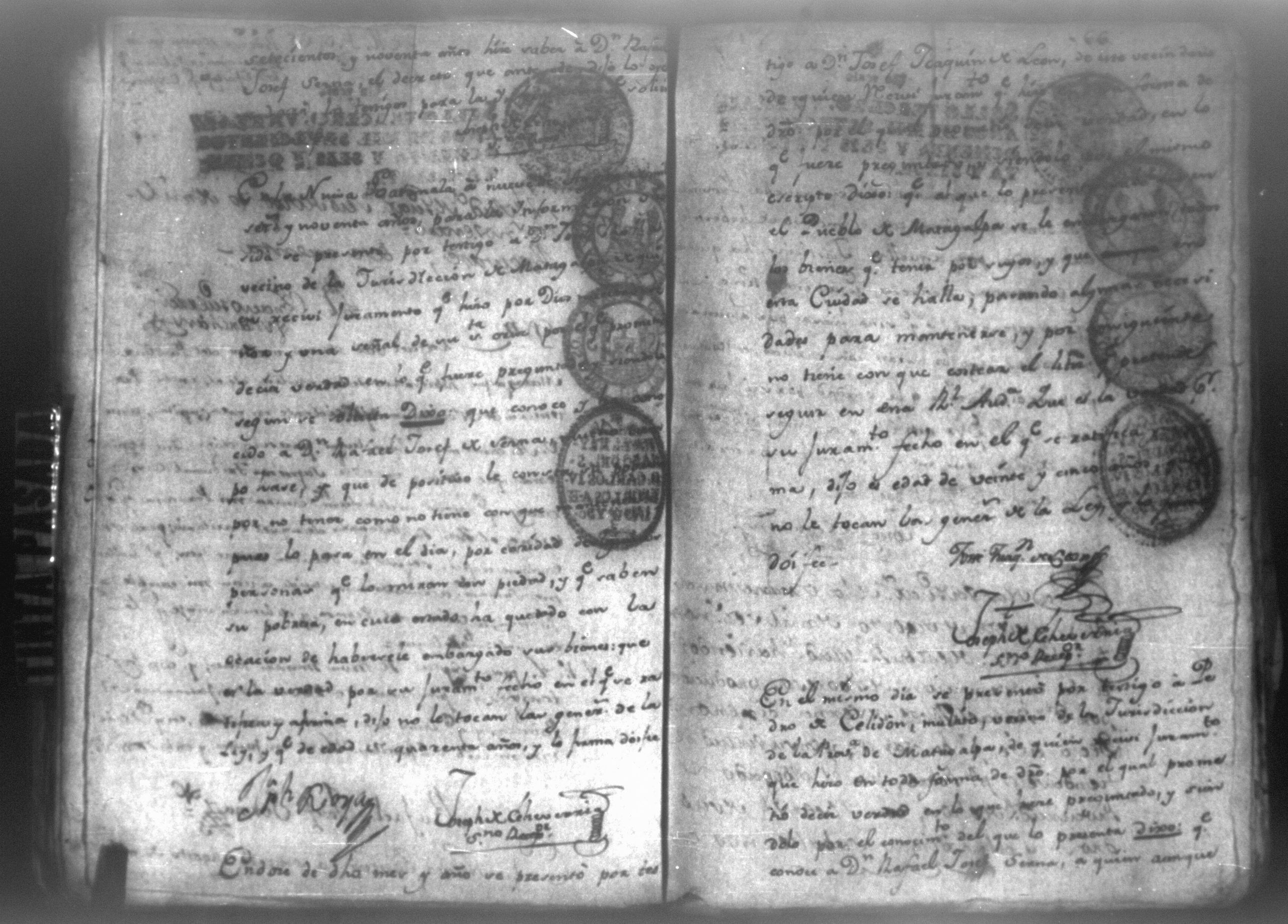 Temática: León, 1790. Testimonio de los autos executivos que contra don Rafael Serna sigue doña Francisca Mairena vecina de Matagualpa por la cantidad de 695 pesos. " [...] Don Rafael Josef Serna, dentro de tercero día, dé y pague los seiscientos noventa y cinco pesos de la cobrante, y las costas hasta el Real, yefectivo pago, vajo apercevimiento de execucion [...]." Firma Juan Fernández, juez subdelegado de intendencia de Masagua.