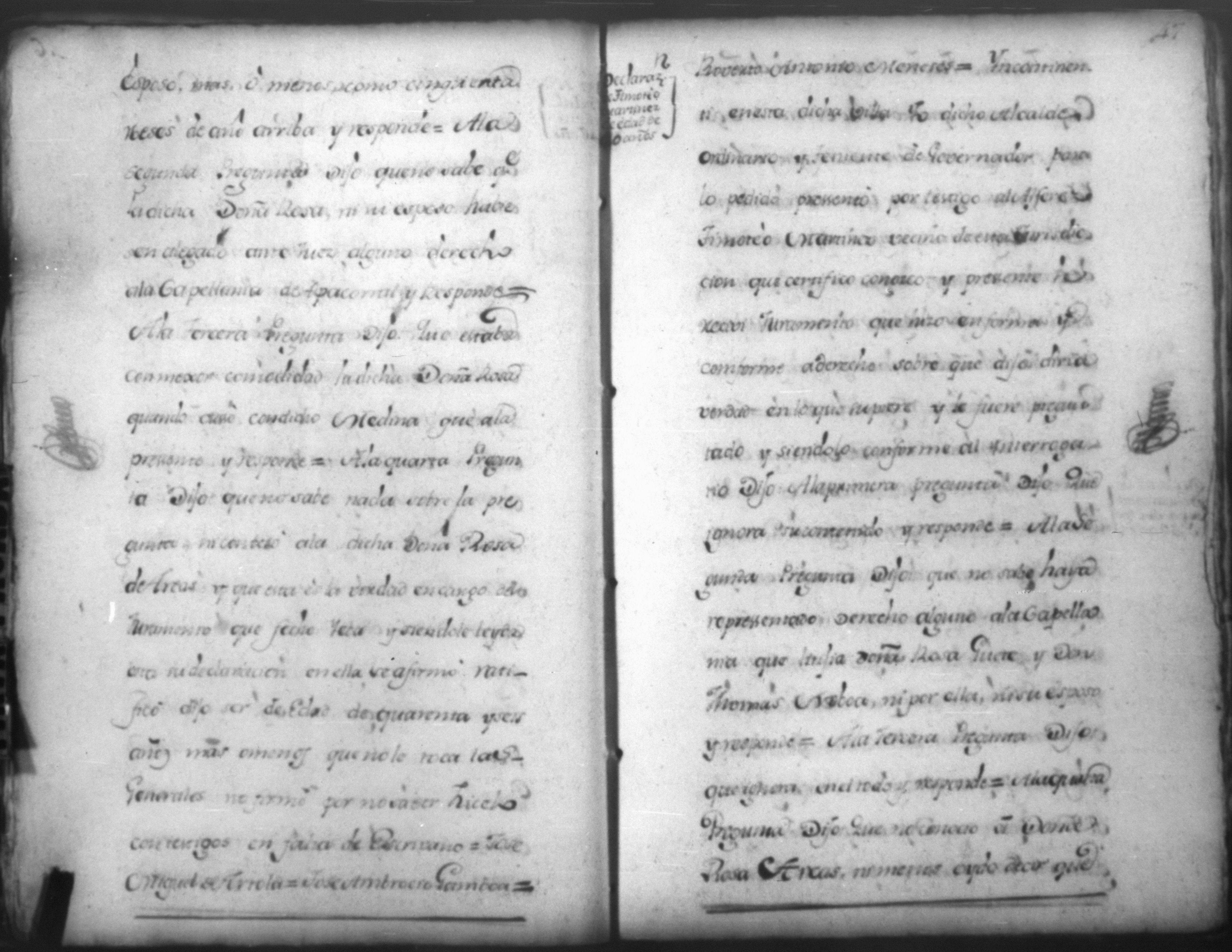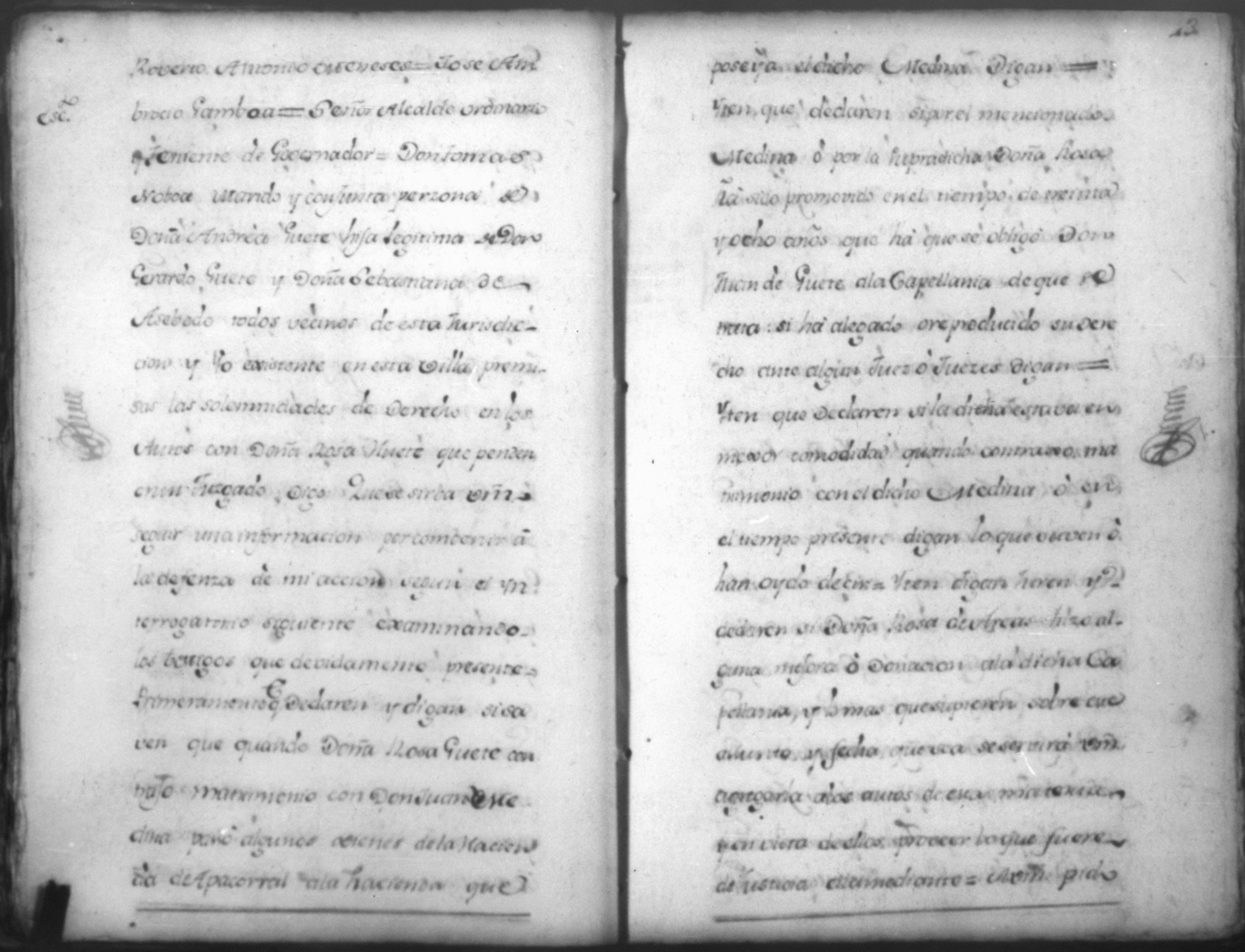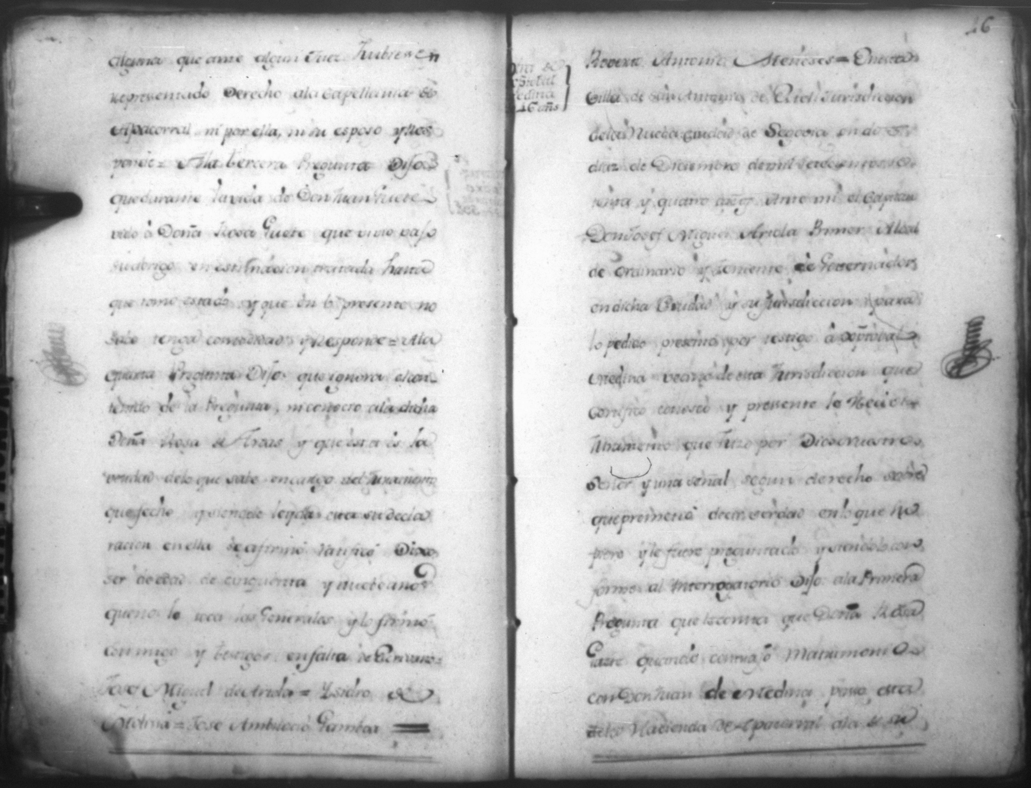 Temática: Año de 1786. Testimonio de los autos sobre el derecho a una capellanía de 600 y mas pesos fincados en la hacienda de Apacorral en la Nueva Segovia se siguieron entre Don Tomas Noboa y Doña Rosa Maria Huete.