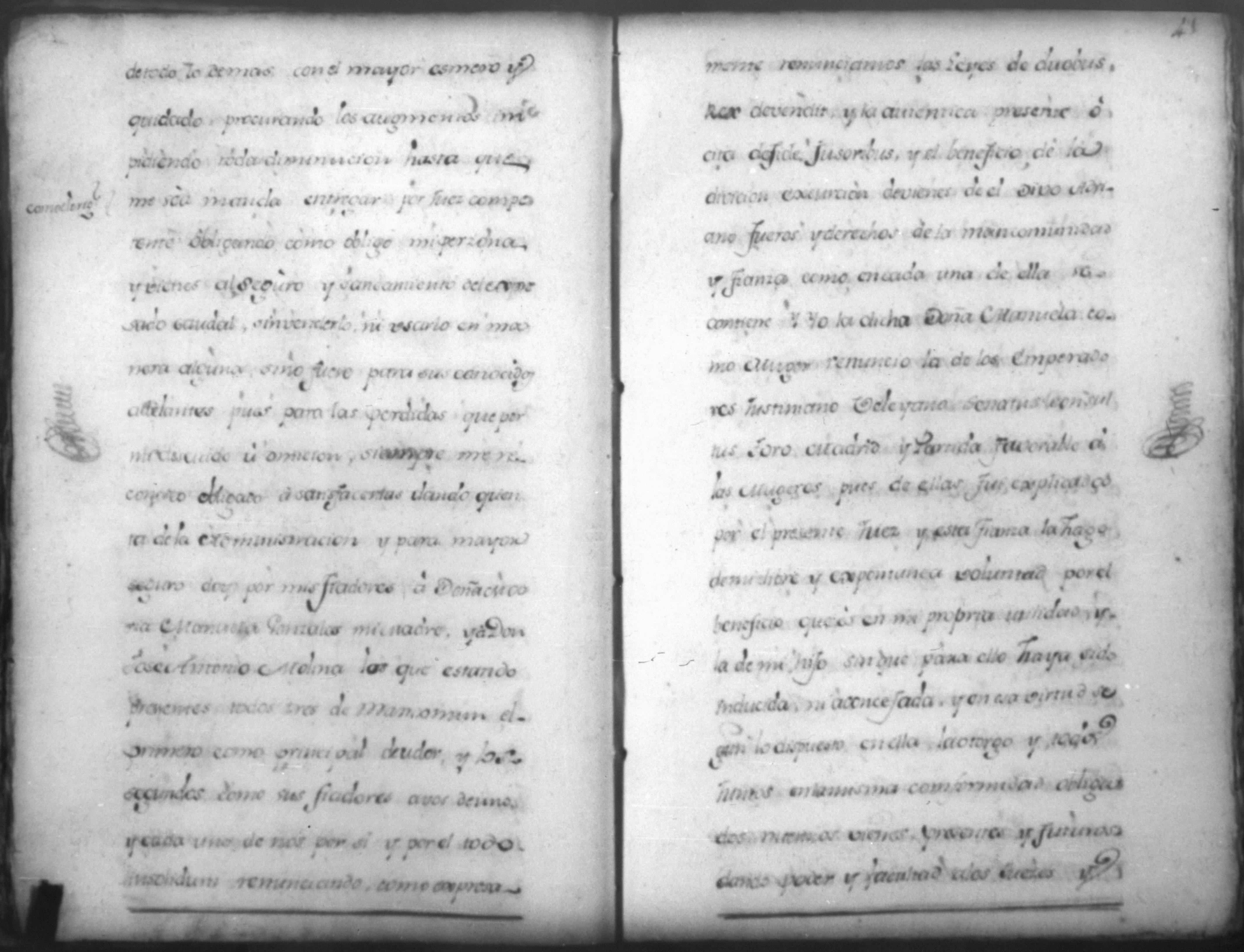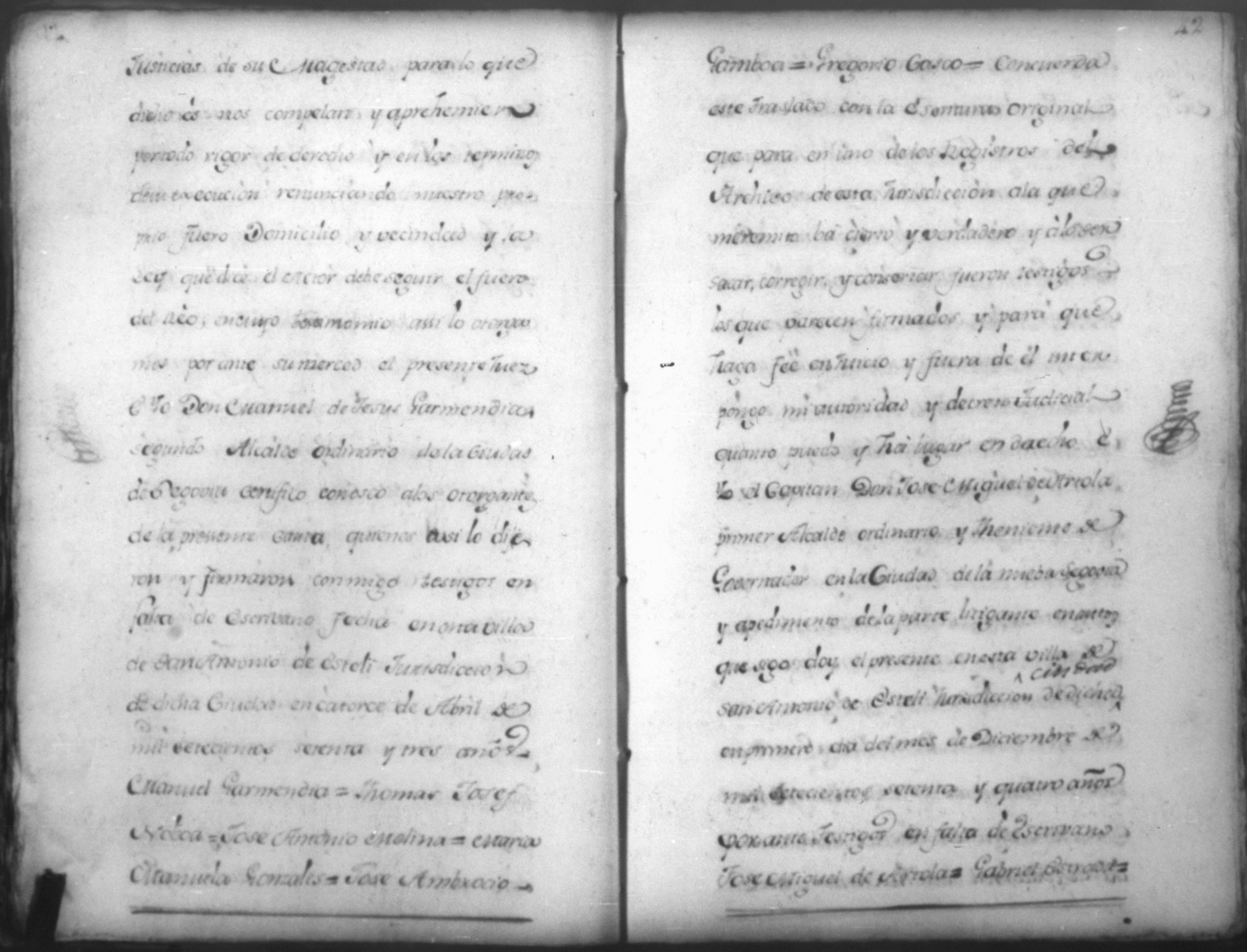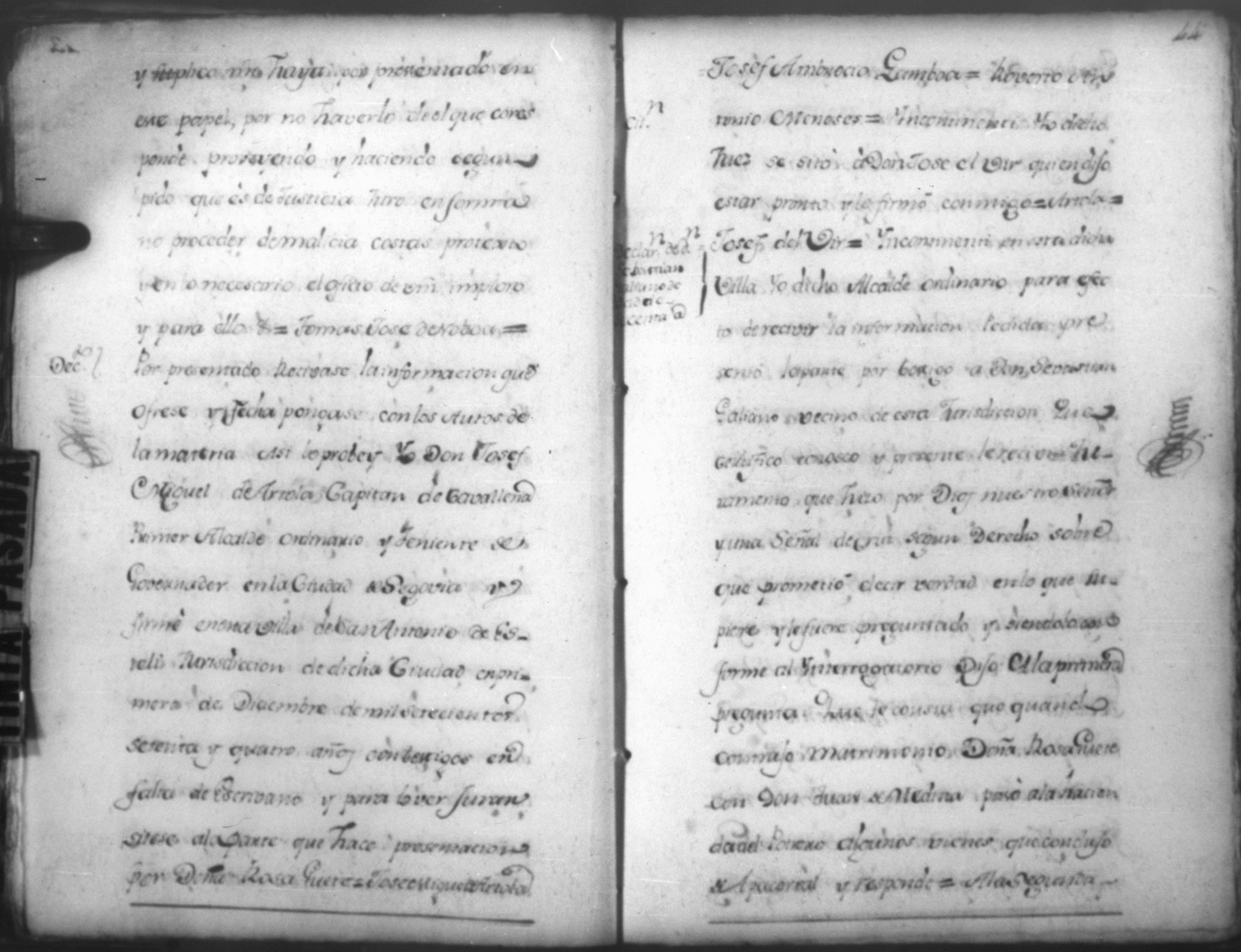 Temática: Año de 1786. Testimonio de los autos sobre el derecho a una capellanía de 600 y mas pesos fincados en la hacienda de Apacorral en la Nueva Segovia se siguieron entre Don Tomas Noboa y Doña Rosa Maria Huete.