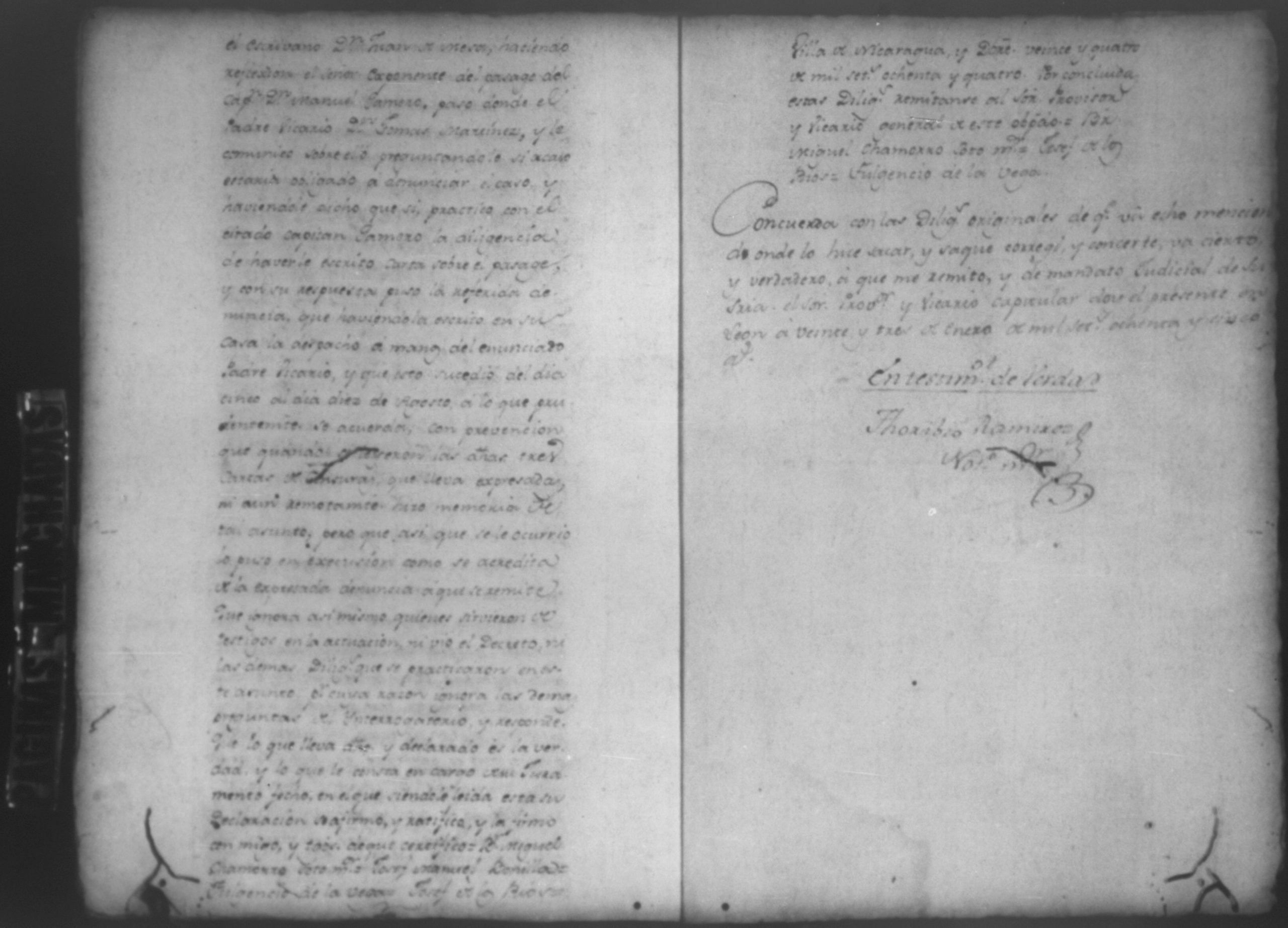 Testimonio de verdad del vicario mayor, Toribio Ramírez, Leon 1785 (009)