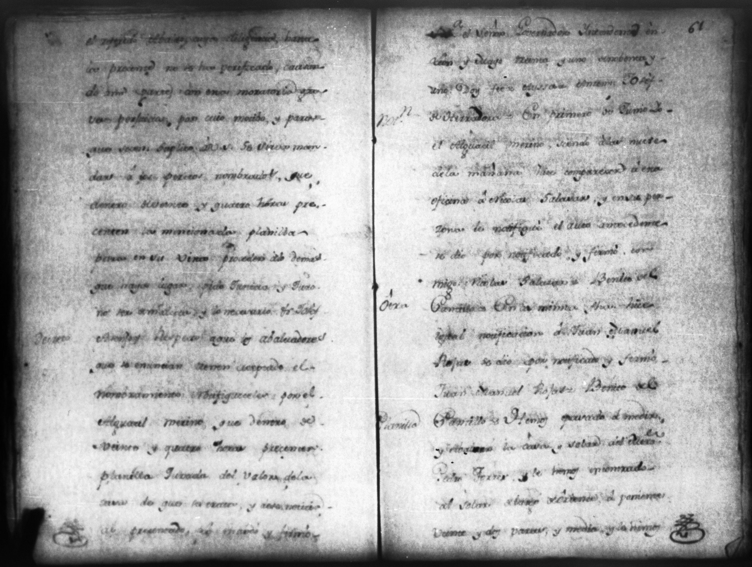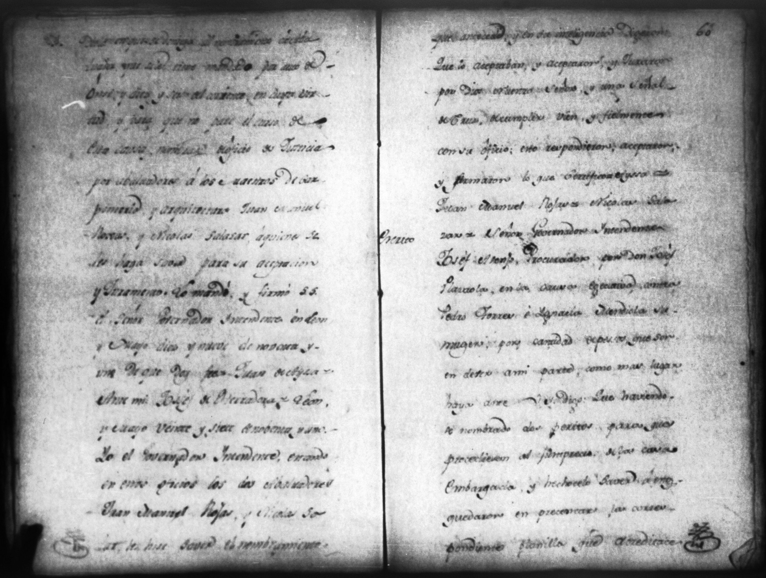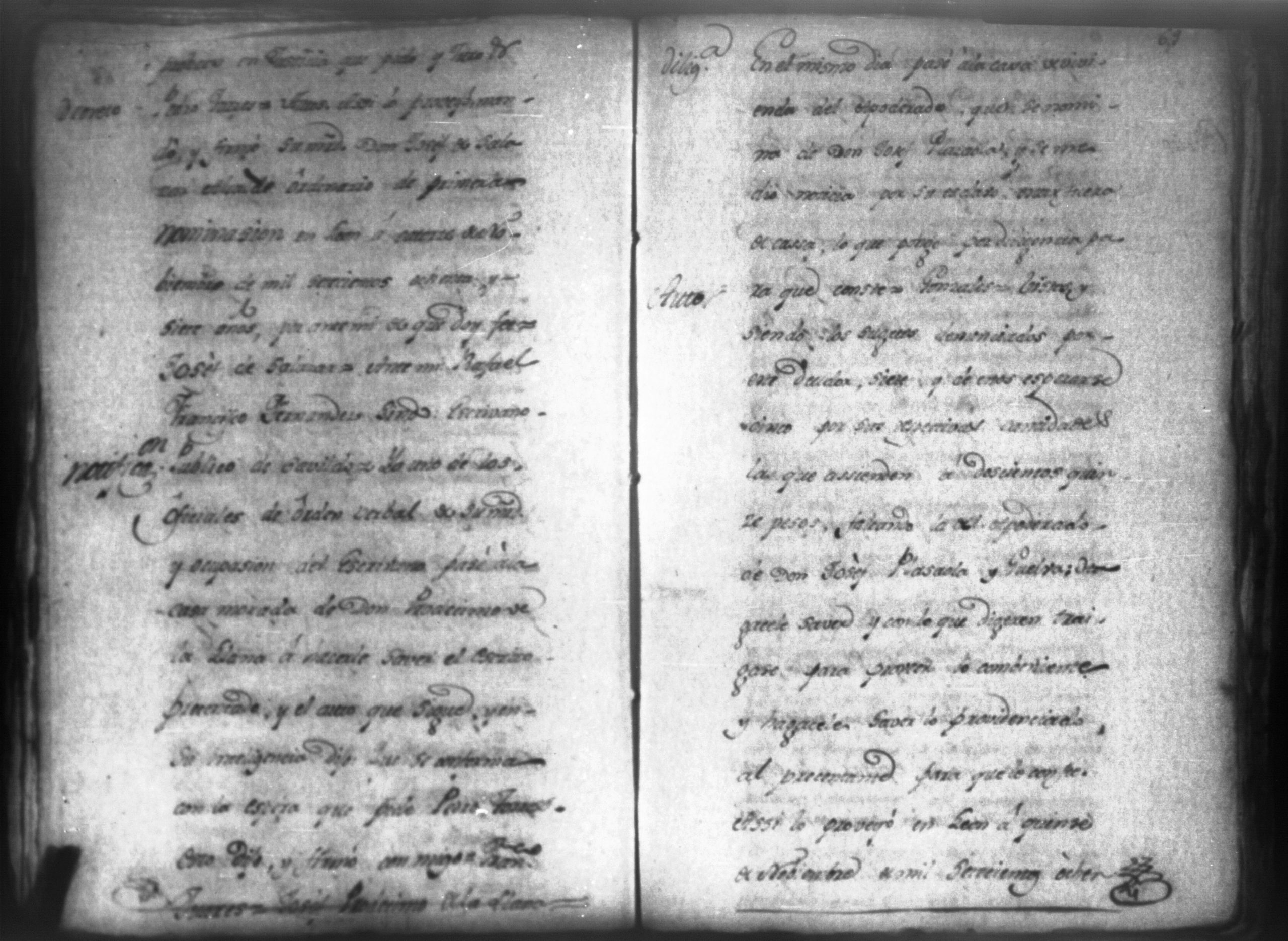 Temática: León, 1792. Testimonio integro de los autos de demanda puesta por parte de don Josef Plazaola contra Pedro Torres e Ygnacia Mendiola, su mujer. Cantidad de 125 pesos. "Real Audiencia primero de Marzo de mil setecientos noventa y dos años. Traslado. Ignacio Guerra Manchán [firma] Juan Jose Medina Procurador de pobres á nombre de Ygnacia Mendiola en los autos con Don Jose Plazaola sobre nulidad del remate de cierta causa sita en la Ciudad de Leon, y perteneciente a la (dote) de mi parte como mas haya lugar ante Vuestra Alteza digo: que en virtud de una escriptura publica en que de mancomun é in solidum se obligaban mi parte y su marido á pagar a un cajero de Plazaola la cantidad de 200 pesos se presento el referido Plazaola con executivamente consta Pedro Torres marido de mi parte [...]" (Extracto del folio 92, imagen 97).