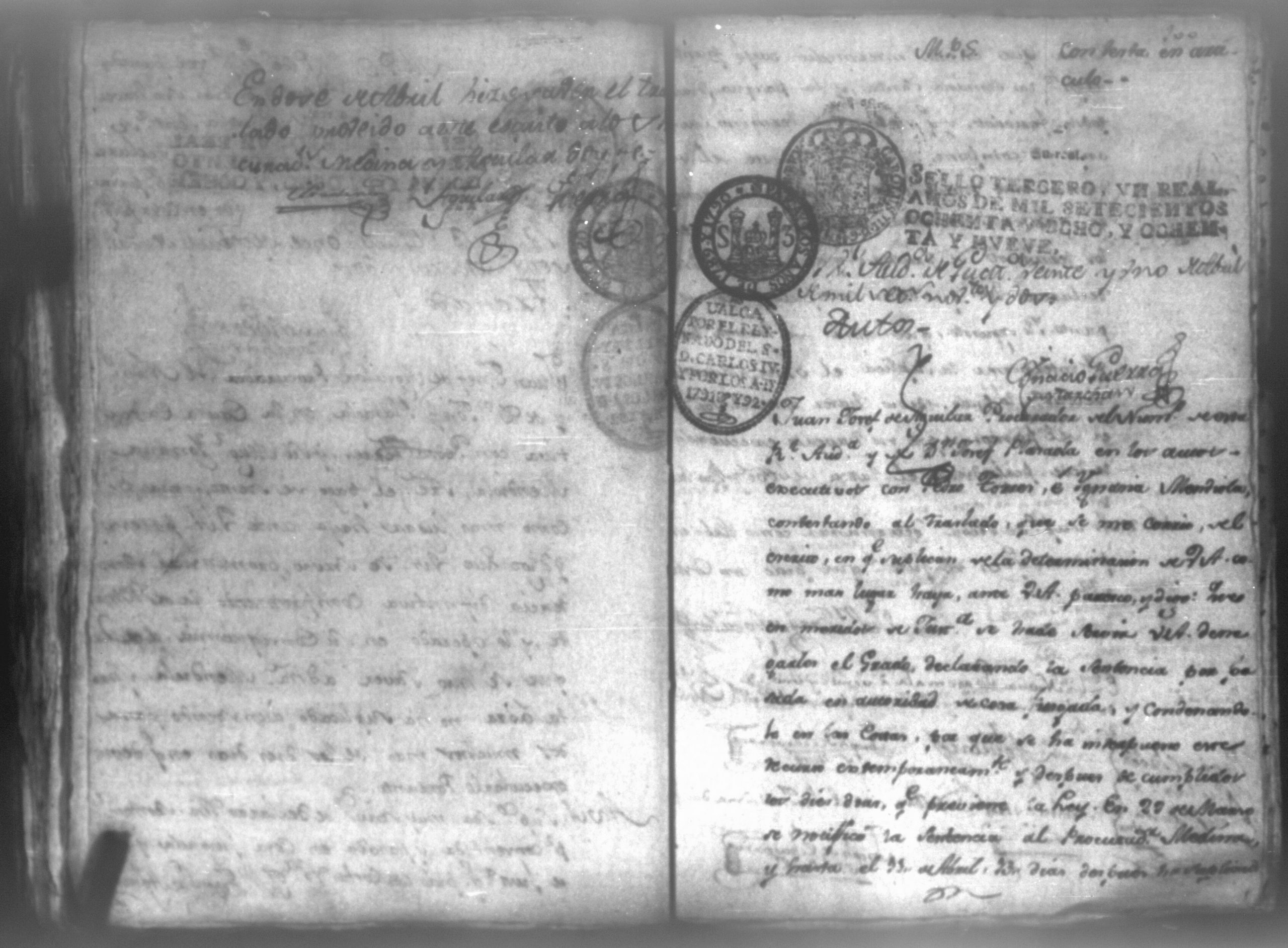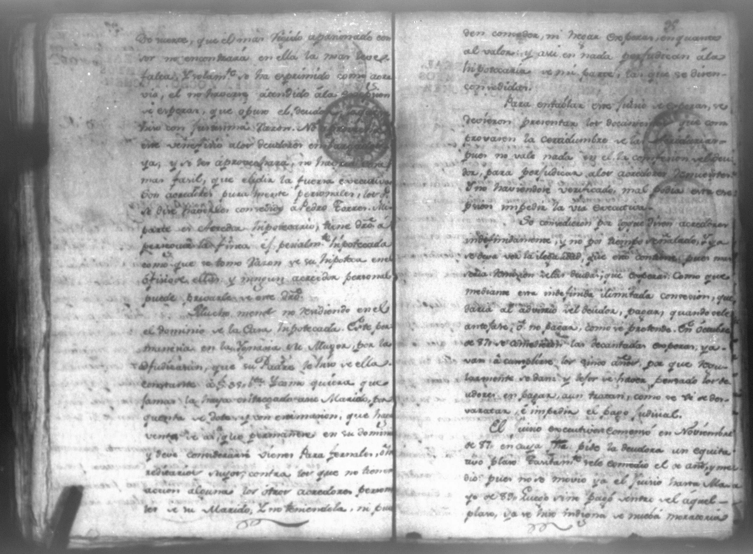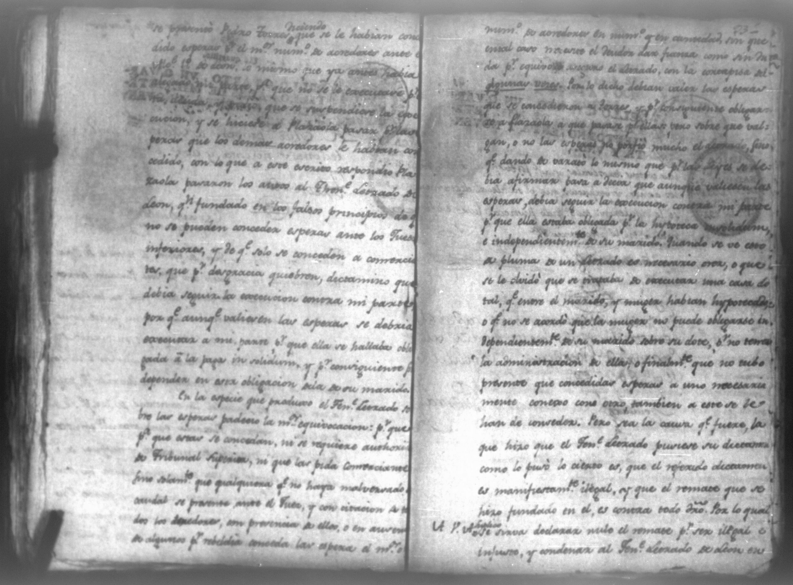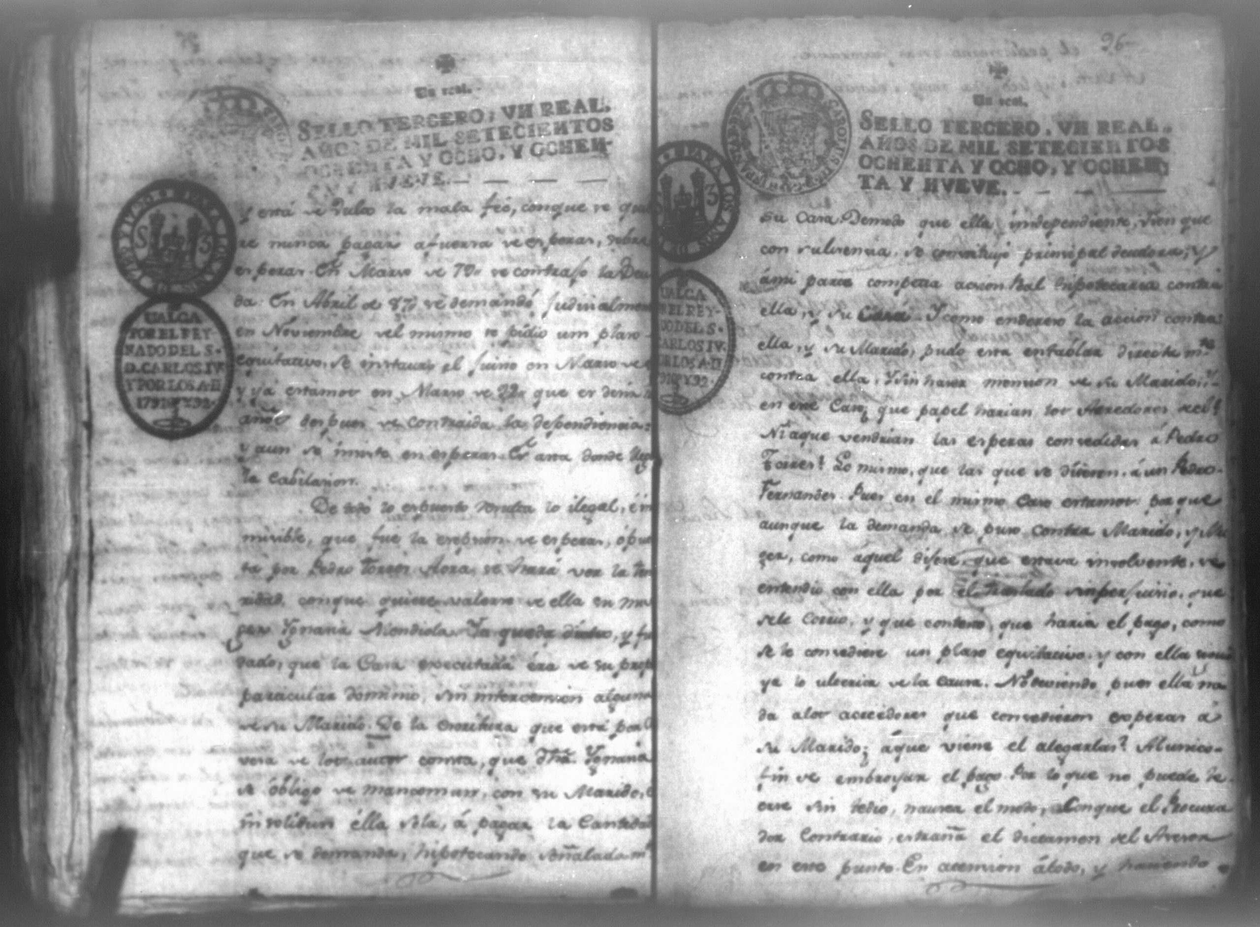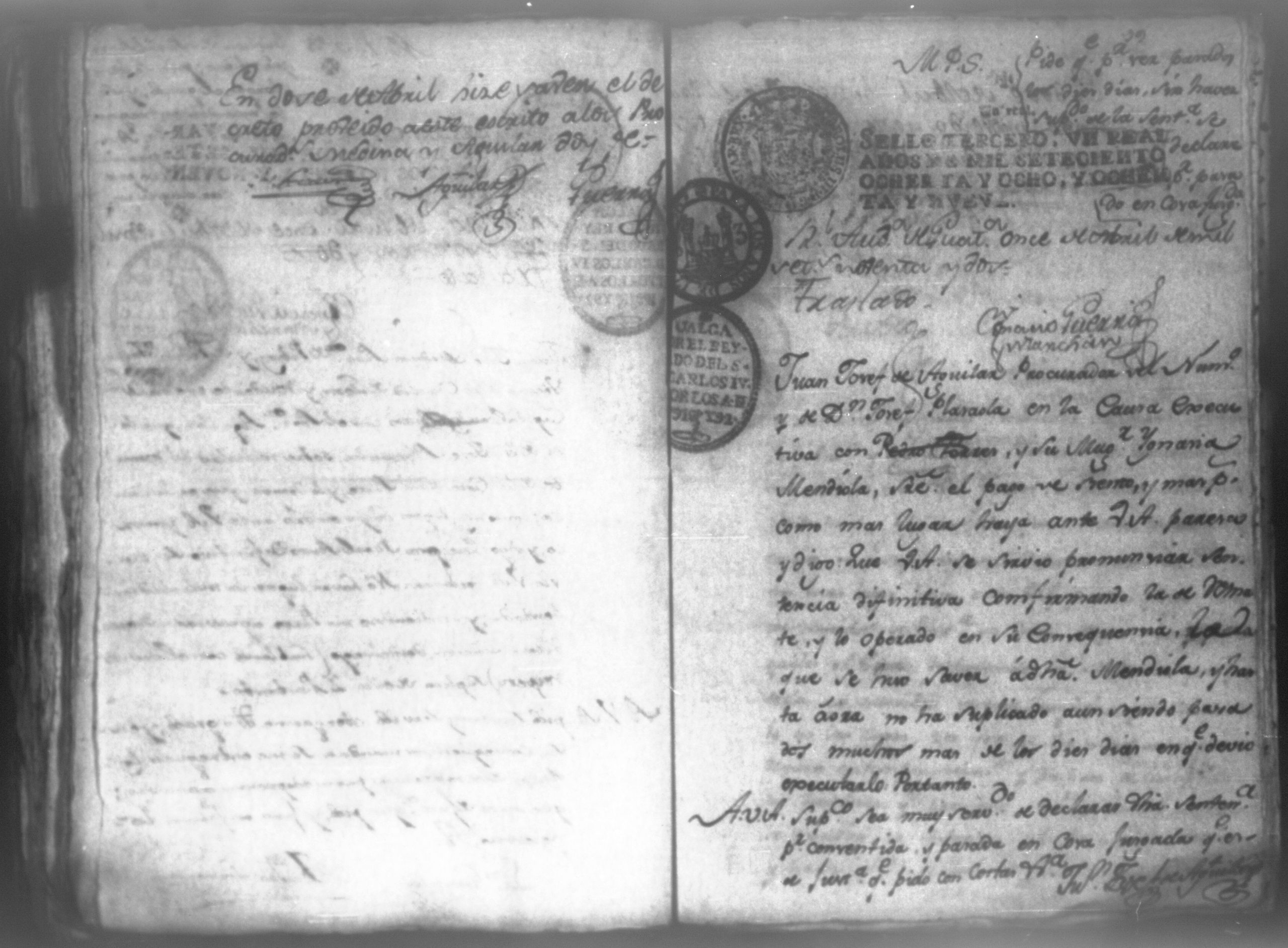 Temática: León, 1792. Testimonio integro de los autos de demanda puesta por parte de don Josef Plazaola contra Pedro Torres e Ygnacia Mendiola, su mujer. Cantidad de 125 pesos. "Real Audiencia primero de Marzo de mil setecientos noventa y dos años. Traslado. Ignacio Guerra Manchán [firma] Juan Jose Medina Procurador de pobres á nombre de Ygnacia Mendiola en los autos con Don Jose Plazaola sobre nulidad del remate de cierta causa sita en la Ciudad de Leon, y perteneciente a la (dote) de mi parte como mas haya lugar ante Vuestra Alteza digo: que en virtud de una escriptura publica en que de mancomun é in solidum se obligaban mi parte y su marido á pagar a un cajero de Plazaola la cantidad de 200 pesos se presento el referido Plazaola con executivamente consta Pedro Torres marido de mi parte [...]" (Extracto del folio 92, imagen 97).