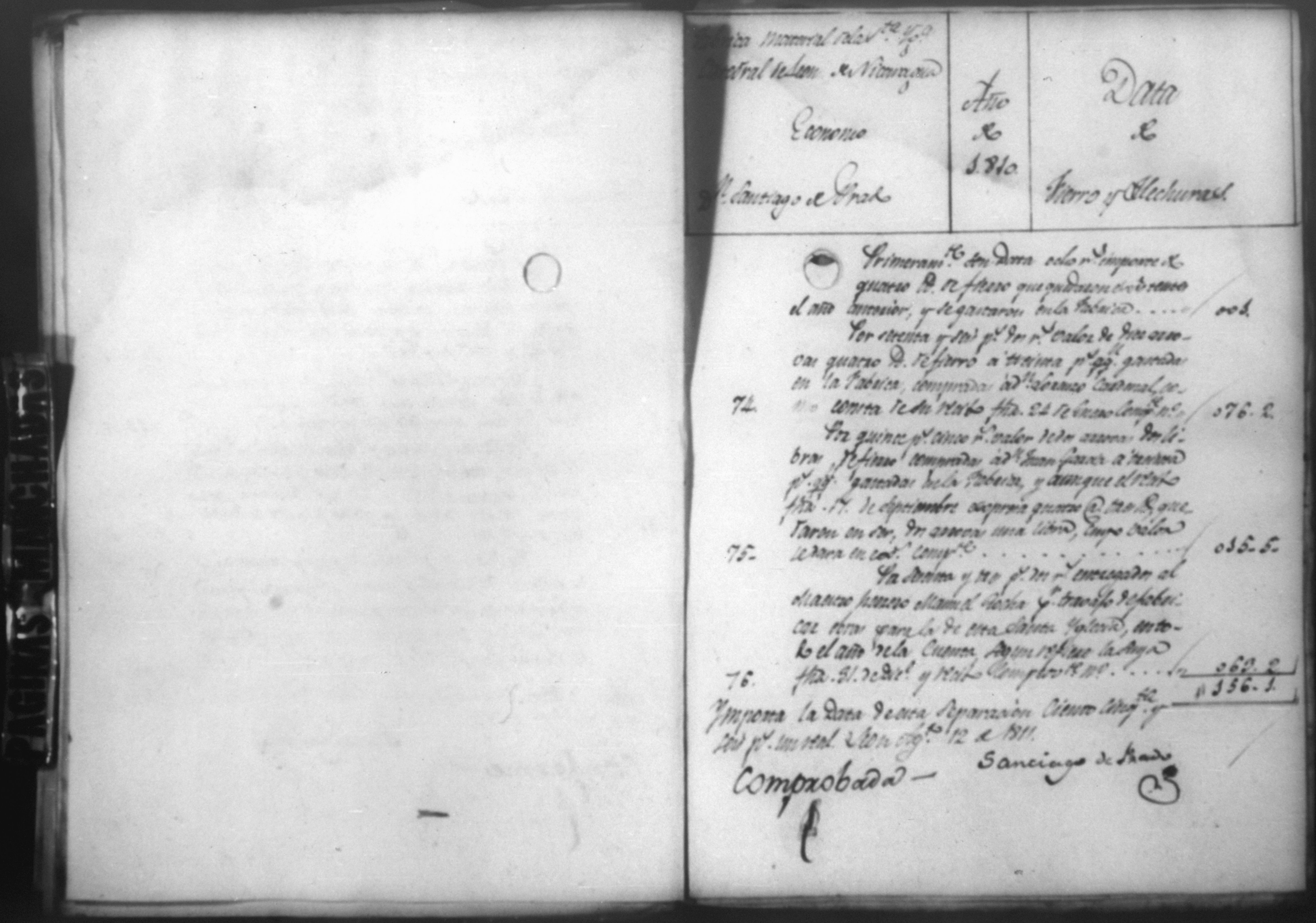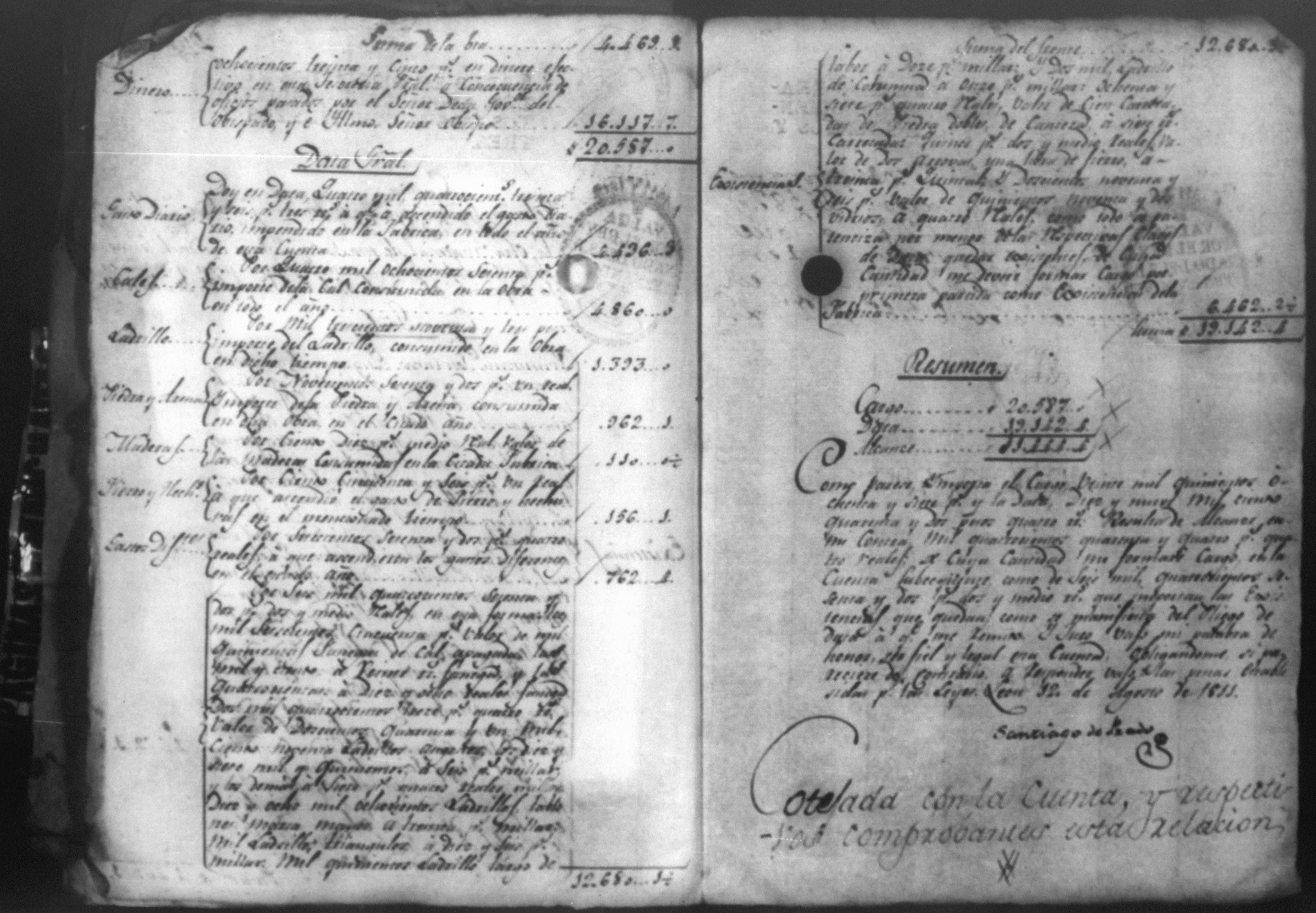 Temática: Cuenta de Cargo y Data de la obra material de esta Santa Iglesia Catedral de León, correspondiente a dicho año. Santiago de Prado